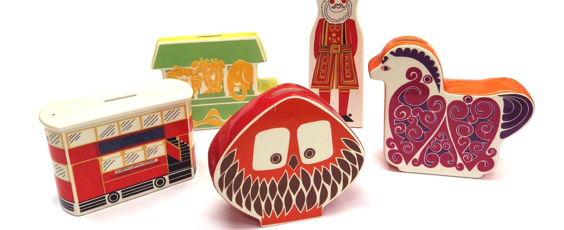 The question is, how can we encourage the next generation to hang on to the physical joys of money and learn to support its use, so it doesn’t disappear? One such way is to hark back to the days when children were given money boxes. The joy of filling these up and saving for future purchases is something that may have been lost in recent years. Twenty first century children struggle with patience and delayed gratification. They have access to whole tv programmes at the drop of a hat and much of what they need and want is easily accessible. Reviving an age-old tradition of using money boxes means they could be the next champions of cash and ensure coins and notes don’t disappear altogether. Thanks to our upcoming Modern Design sale you can not only take a stand against a cashless society, but also encourage budding young collectors into the world of art and antiques in a fun and colourful way.