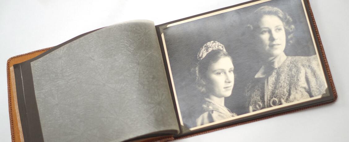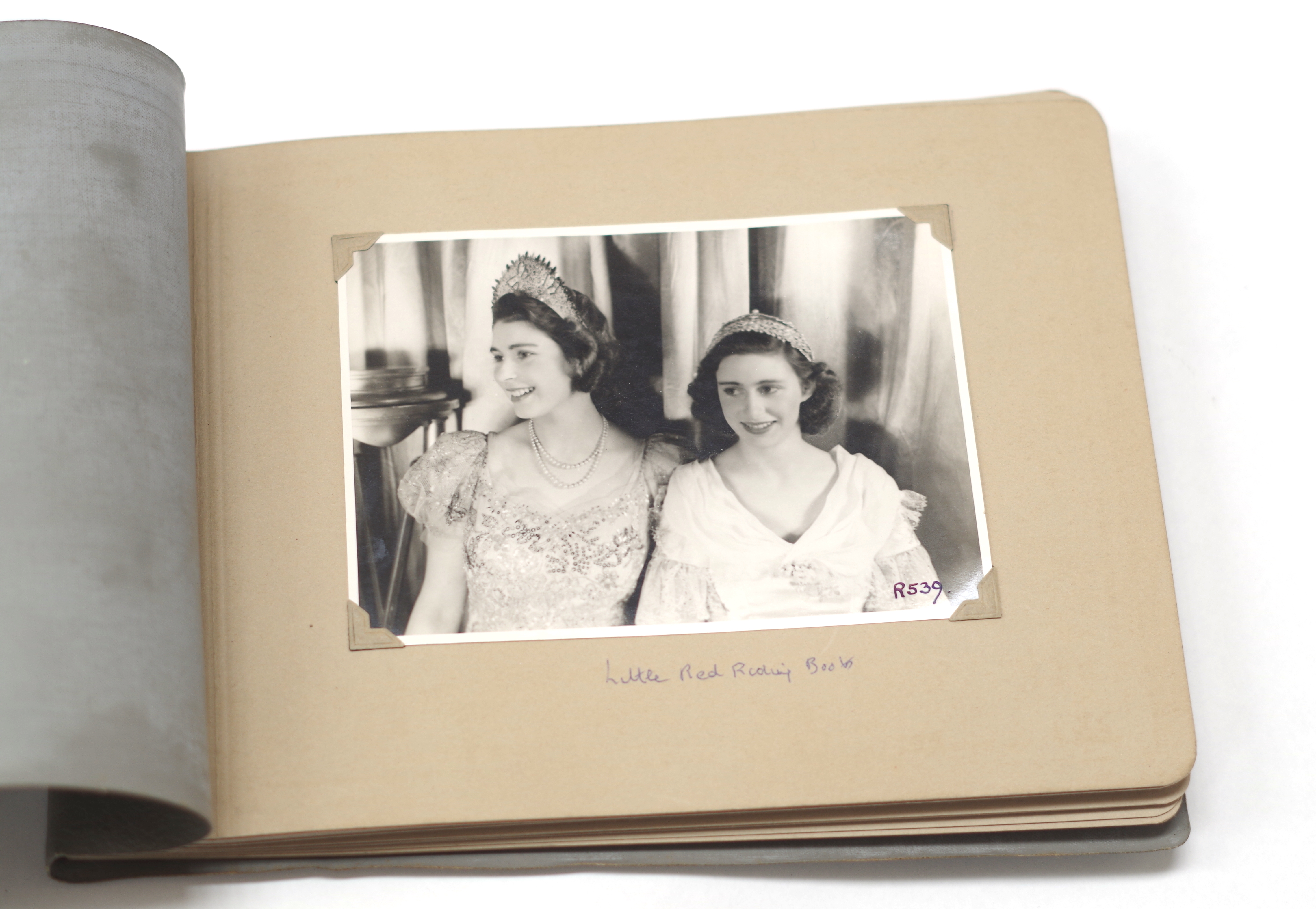 They are two photograph albums, each recording the royal family’s private Christmas pantomimes of 1943 and 1944, in which the princesses starred. Several of the photographs bear reference numbers and ink stamps of Studio Lisa, the husband-and-wife team of Lisa and Jimmy Sheridan, who were granted two Royal Warrants, and took some of the most informal and intimate photographs of the Royal Family for over 30 years from the 1930s to the 1960s.