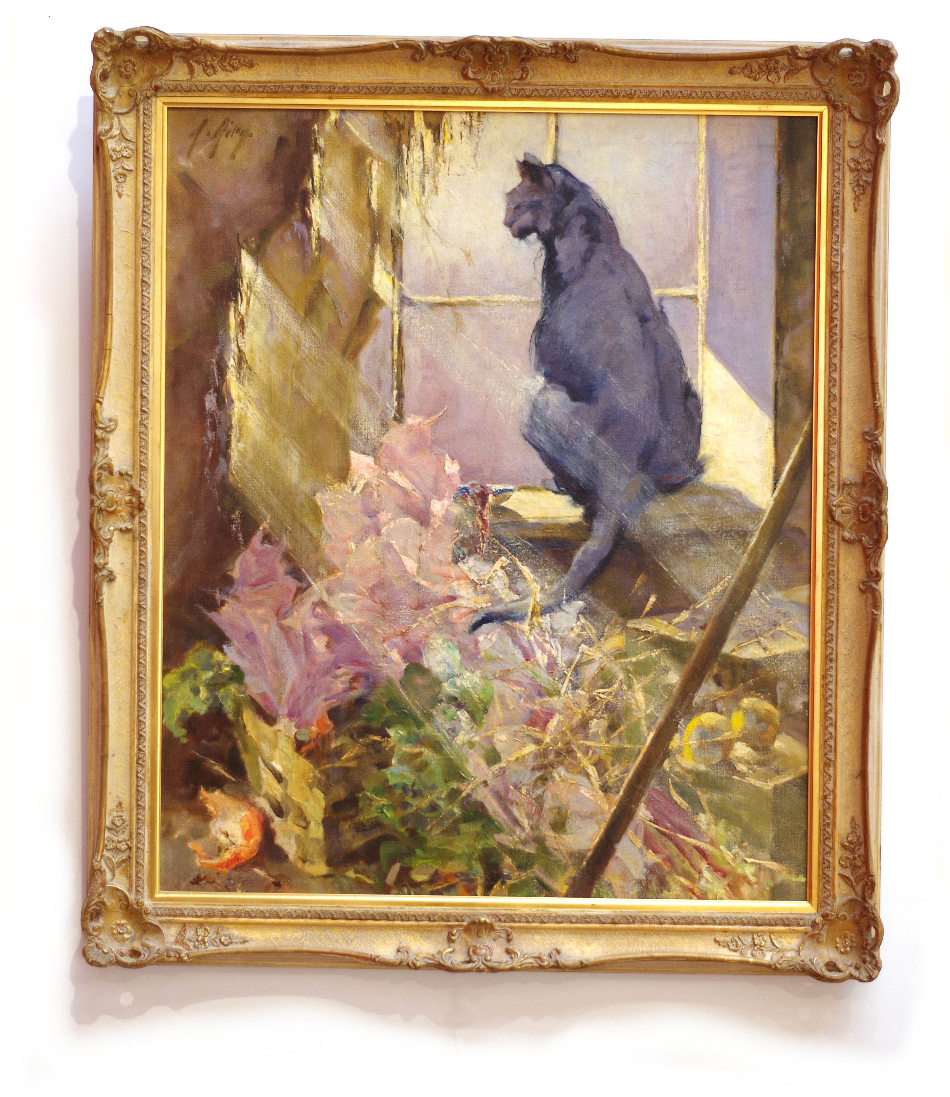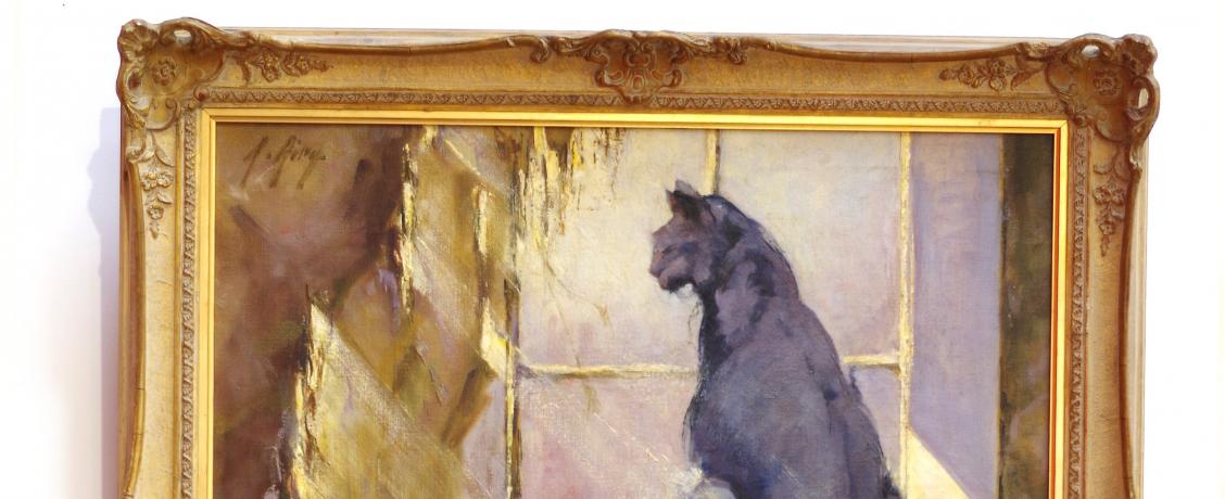 Some weeks before lockdown a painting was consigned for auction in our next Gallery Sale. It was a most distinctive picture, both captivating and calming and a favourite of the many cat-lovers at TW Gaze. When we all had to abandon the premises in haste in March and after all the doors had been secured, the painting remained hanging on the wall, a symbol of peaceful patience; and there it remained ready to greet those of us who returned in May to re-engage with auctions again.