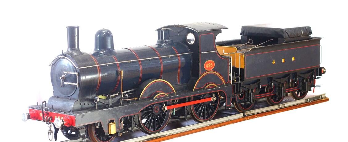 Meanwhile, at Diss Auction Rooms, one of the entries into the Bygones & Railwayana auction on Thursday 14 November, is a tribute to this greatly respected family of iron horses: a 7¼” gauge 2-4-0 GER T26 (later E4) class steam locomotive and tender No. 495, finished in fully lined GER blue/black. 7¼” (or 184mm) refers to the distance between the rails. This is the most common of the larger scales used for building model engines and is the worldwide standard for 1:8 scale models, except for in most of the USA where it tends to be 7½" (or 190.5mm). The international 7¼" Gauge Society unites 7¼" and 7½" gauge miniature railway enthusiasts and because this size is perfect for use by clubs, amusement parks or in private gardens, such models cause a lot of interest when they are offered for sale.