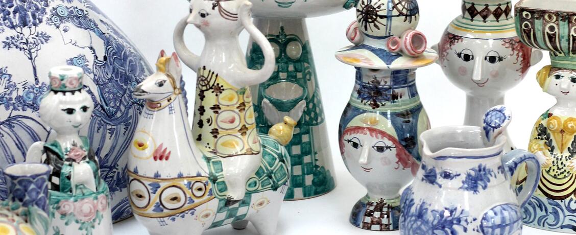 Wiinblad was so prolific that his ceramics are regularly found on the resale market, and pieces from the Nymølle and Rosenthal factories can be bought at very accessible prices. However, what is less common is to find a significant collection being offered to the market. TW Gaze is delighted to have been instructed to sell an extensive private collection which has been honed over many years and which contains some wonderful early rarities. These include a pair of green centaurs (as illustrated in " Bjørn Wiinblad - An Ouvre of Joy and Delight" from the Museum of International Ceramic Art), white opera figures, and red and blue Susanne figures with birds.