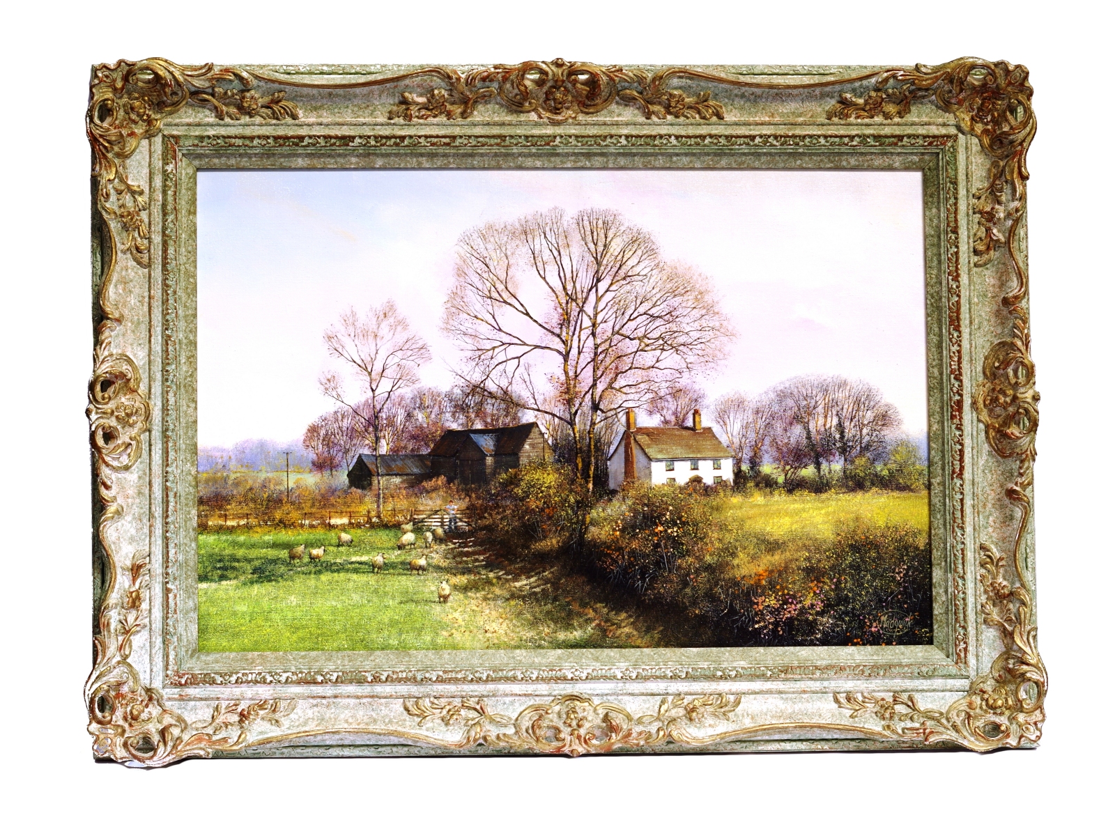 Meanwhile, mainstream art continues to benefit from the discipline of perspective. A fitting example of linear perspective can be seen in an oil painting by Clive Madgwick, to be sold in The Gallery Sale at TW Gaze on Thursday 6 May. The dominant aspect of the hedge and the configuration of the farmhouse and barn lead the eye through the composition with a true view of perspective, giving a gauge of both distance and scale which adds to the convincing realism of the art. Madgwick (1934 – 2005) was born in Surrey, studied at Guy’s Hospital in London and joined the RAF as a dentist. In 1965 he left the RAF to work at a dental practice in Sudbury, Suffolk. Whilst in Suffolk he suffered a serious bout of glandular fever and began sketching and painting local houses during his time of recouperation. His wide-ranging work became very popular; he exhibited in numerous galleries in and around East Anglia and he became a member of several important art societies. Clive Madgwick’s paintings remain collectable: this example of his work, entitled “Winter Shadows”, carries a pre-auction estimate of £500 – 800.