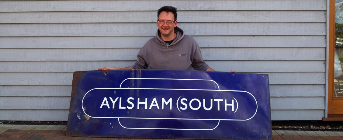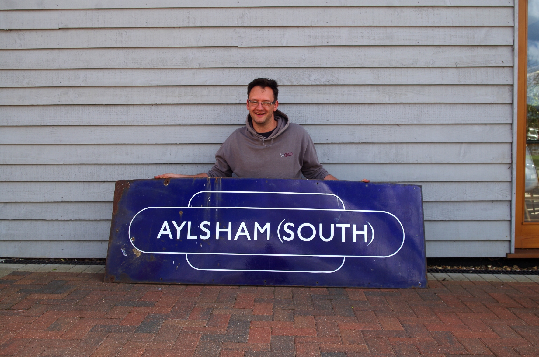 TW Gaze has been instructed by a private collector to sell an original blue and white enamelled running-in board from Aylsham South station and it is to be entered into their next Railwayana Sale to be held on 27 May at their Auction Rooms in another famous Norfolk market town, Diss. The firm’s own qualified steam train driver, auctioneer and Railwayana specialist, Dan Woods, is very excited to be overseeing the marketing of this lot.