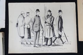 When the archive was first consigned to T W Gaze it was essentially as the artist herself had left it when she died in 1970, and most of the cartoons it contained had been divided up by subject area. This was fascinating in itself – who knew that forgers attempting to turn out dodgy banknotes would feature quite so heavily? But while such a logical, regimented system works well for the archivist, it is not ideal for the auctioneer looking to turn a large collection into buyable lots.