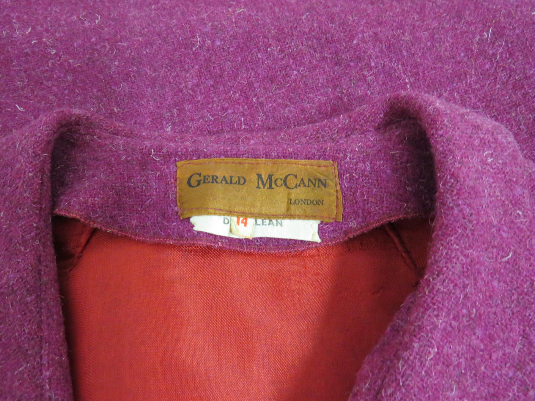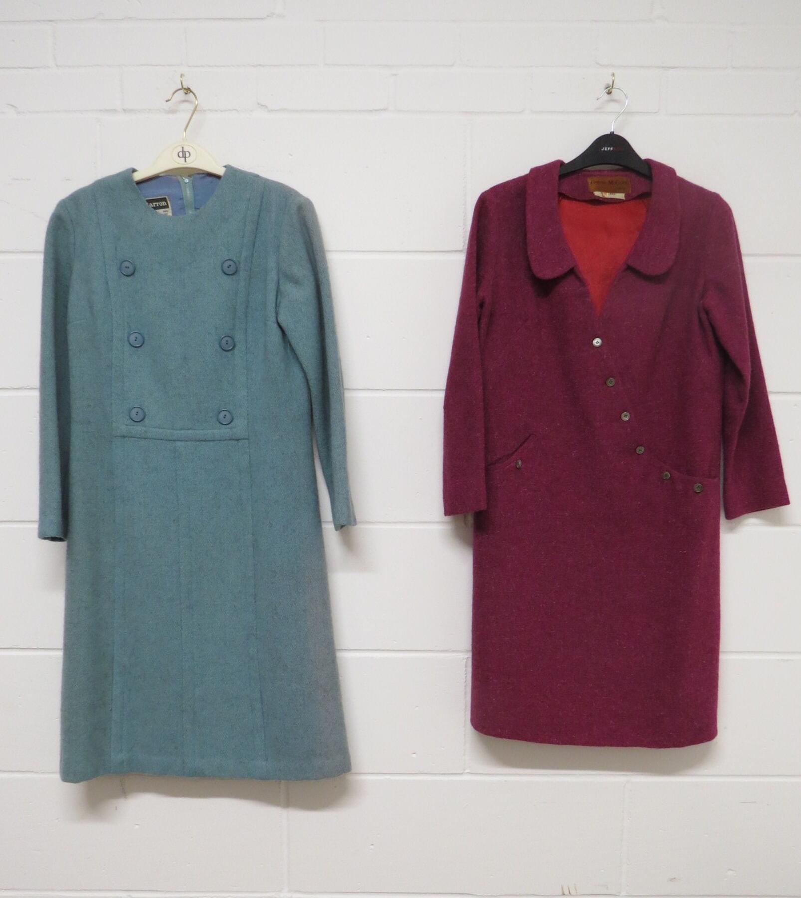 Two 1960's garments, a blue wool herringbone dress and a pink wool Gerald McCaan dress