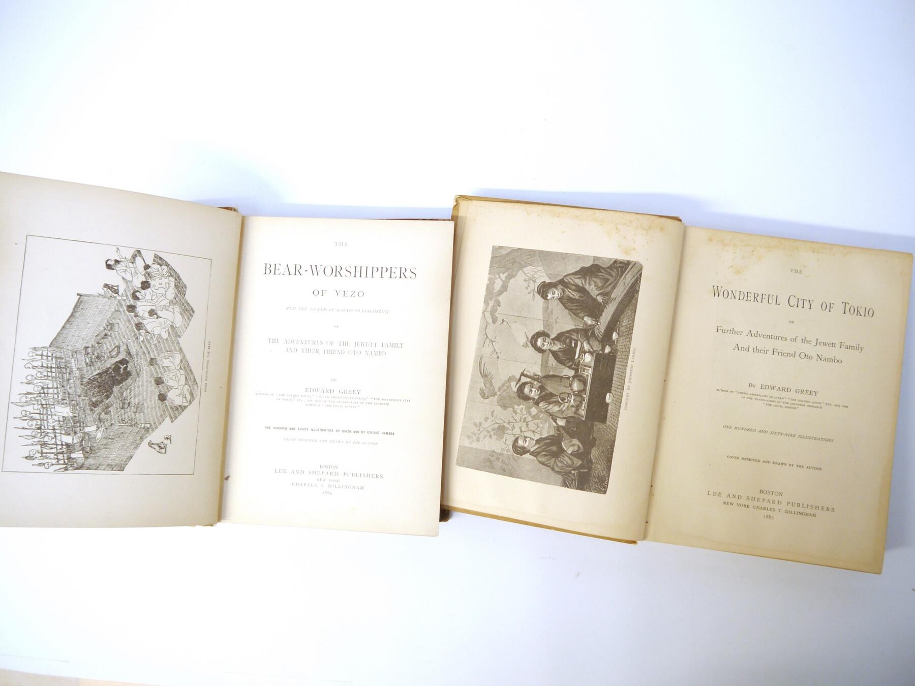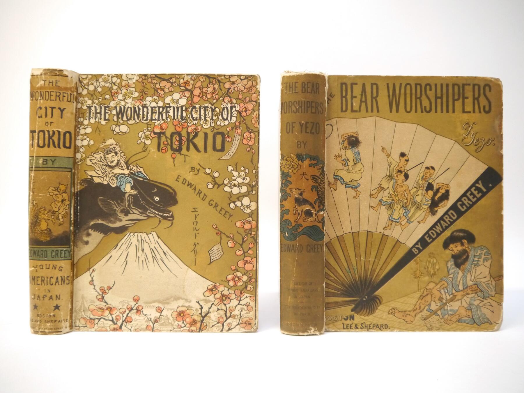 Edward Greey, 2 titles: 'The Wonderful City of Tokio', Boston, Lee & Shepard, 1883; 'The Bear-Worshippers of Yezo, and the island of Karafuto (Saghalin)', Boston, Lee & Shepard, 1884, each with numerous illustrations throughout, each original pictorial paper covered boards (slghtly worn) (2)