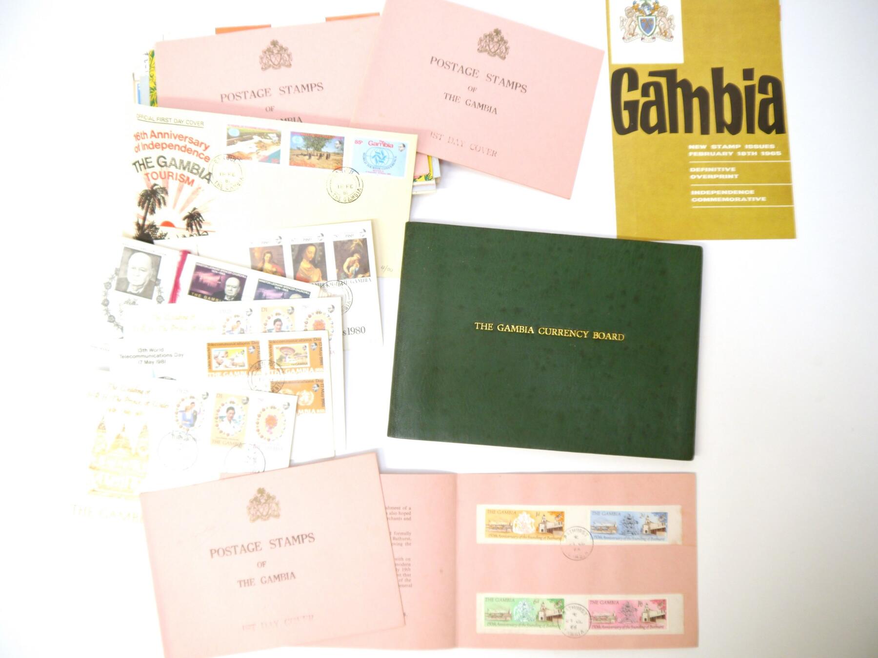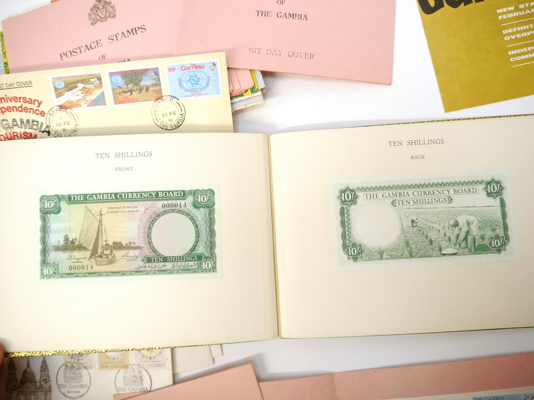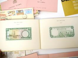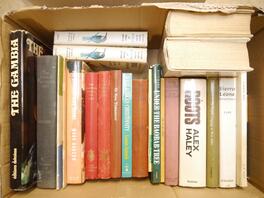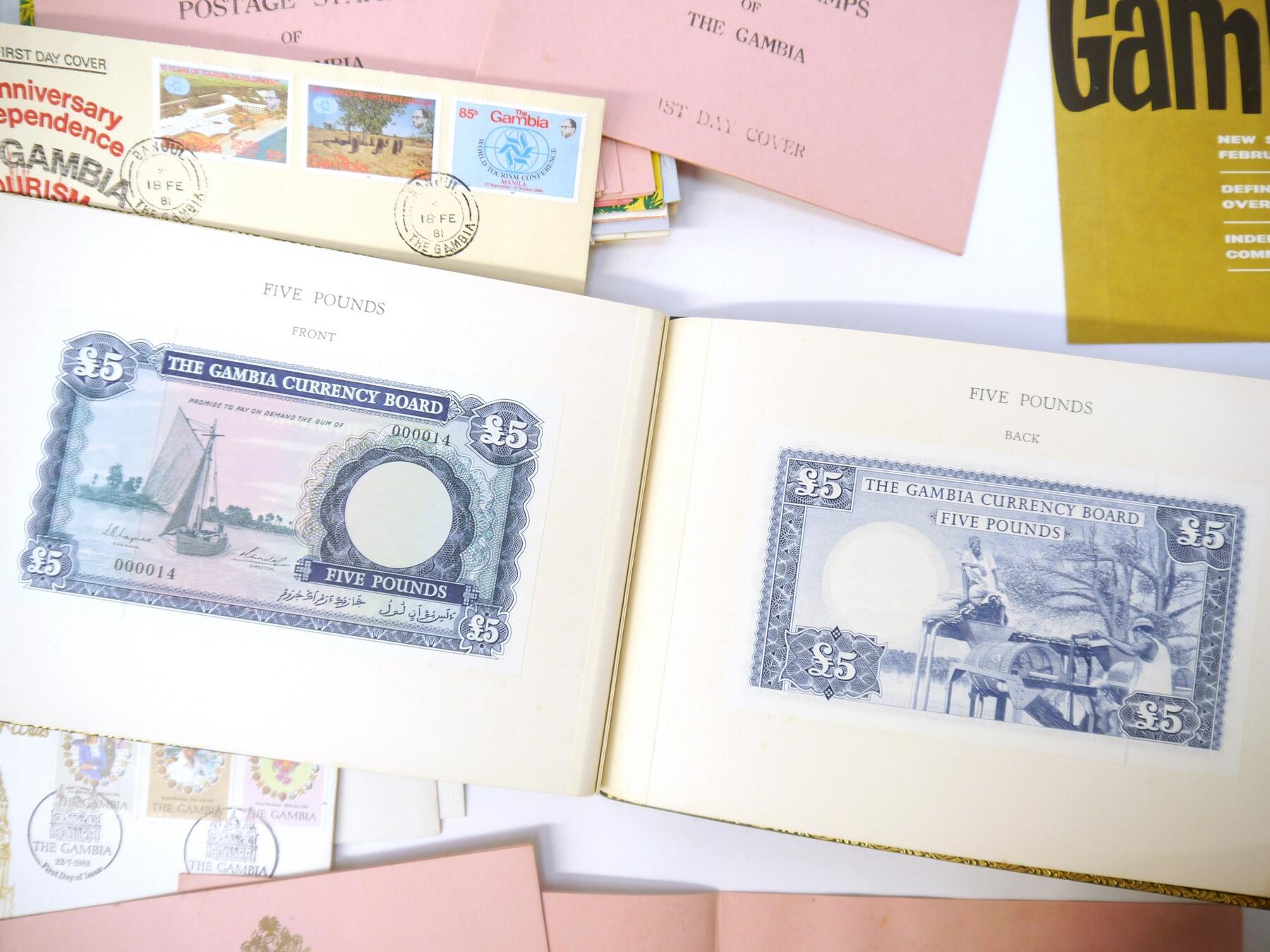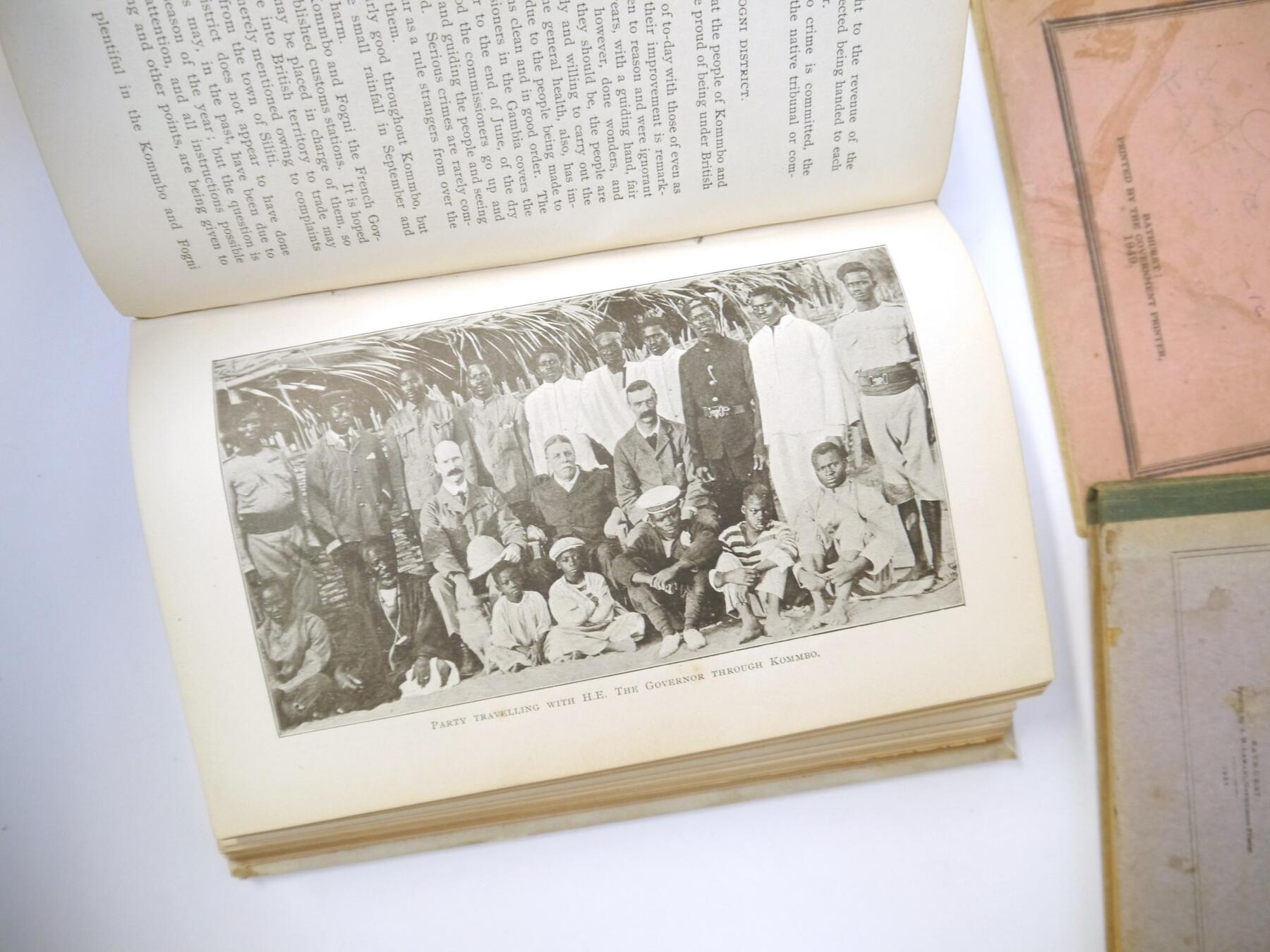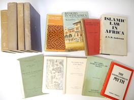 A collection of 70+ books and booklets on The Gambia and West Africa, ex libris Sir Phillip Rodney Bridges (1922-2007) Chief Justice of the Gambia from 1968-1983, many with his ownership signatures and inscriptions/ book plates/ ink stamps to top page edges, plus nine volumes of typed selected judgements from the Supreme Court of the Gambia 1968-1982, each with Bridges' signature and manuscript title on top wrap and his manuscript indexes at front, three folders typed notes similar, books include Francis Bisset Archer: 'The Gambia Colony and Protectorate: An Official Handbook', London, St Bride's Press, [1905], 1st edition, port frontis and two folding maps and numerous illustrations throughout as called for, 364pp, original cloth gilt, all edges gilt; 1967 new impression of the same work, two folding maps, folding table and illustrations as called for, original cloth gilt, dust wrapper, Bridge's ownership ink stamp to dust wrapper, ownership signature and inscription to FFEP and book plate to front paste down; 'The Gambia Currency Board', bound volume containing First Issue of Currency Notes, 5th October, 1964, six bank notes mounted on printed card leaves, oblong, crushed green morocco gilt by Sangorski & Sutcliffe, in original printed envelope marked for Bridges; Gamble: 'Notes on Mandinka', Bathurst, 1949, original printed wraps; H.R. Palmer: 'The Carthaginian Voyage to West Africa in 500 B.C.', Bathurst, 1931, xiii, 51pp, original cloth backed boards; plus numerous others folktales, Mandingo Kingdoms of the Senegambia, Wolof language, Krio-English dictionary, Ornithology, West African Law, Atlas of Gold Coast, Acora, 1945, plus W. African folding map, 1966, Gambian History, religion etc, plus a packet containing a quantity of Gambian stamp covers, Sir Phillip Bridges served in the Royal Artillery circa 1940-46, was attached to the RWAFF and served with them in Burma, and fought in the Arakan campaign involving a five month journey crossing ten rivers. After military service he was posted to the Gambia as a lands officer, becoming Attorney General in 1964, he helped draft the Gambian constitution prior to independence in 1965, remaining in his post until 1968 being the only European in the Gambian cabinet after independence. He was appointed Chief Justice of the Gambia in 1968 and earned a reputation for fairness, tolerance and kindness. He retired to England in 1983 and died in December 2007 in Suffolk