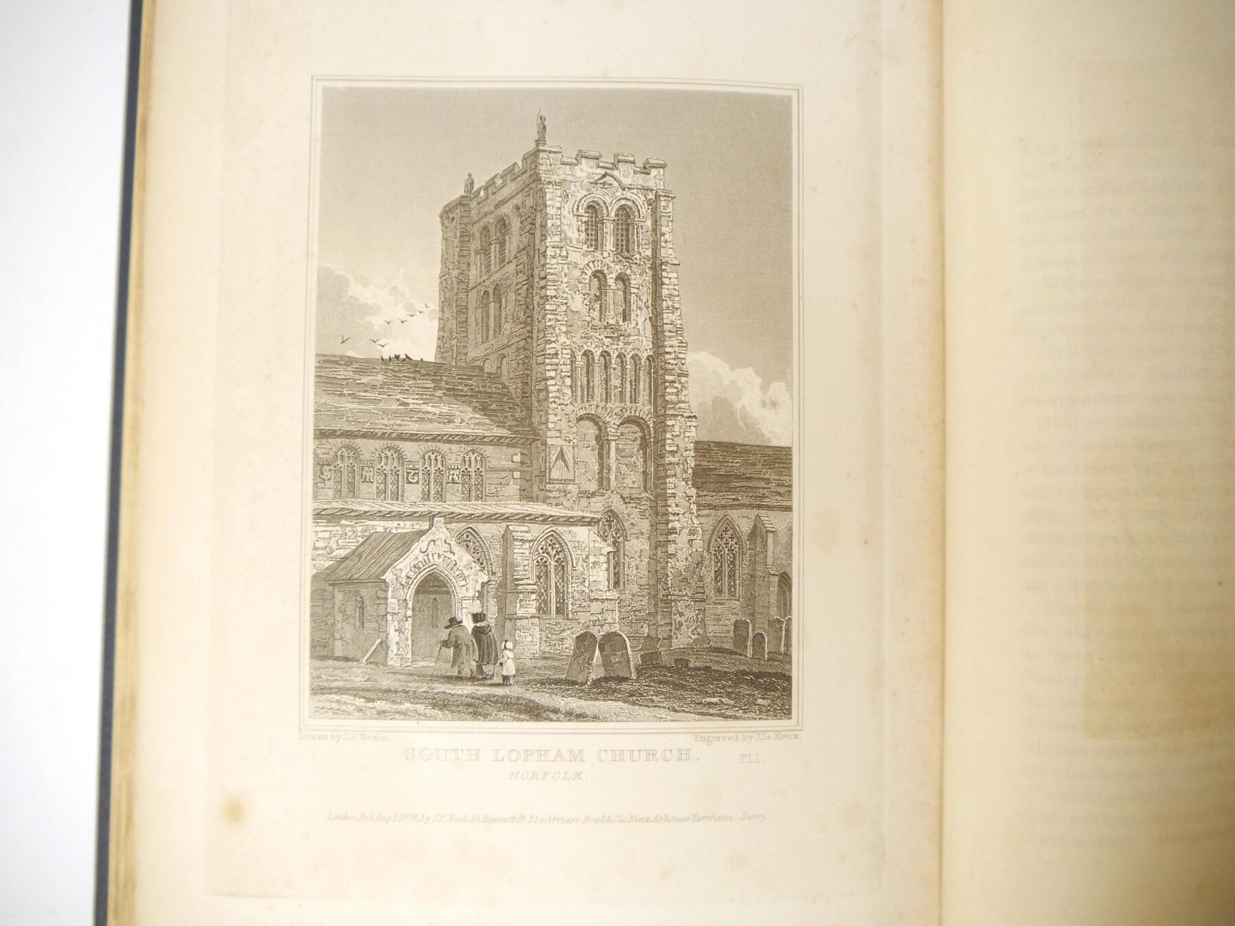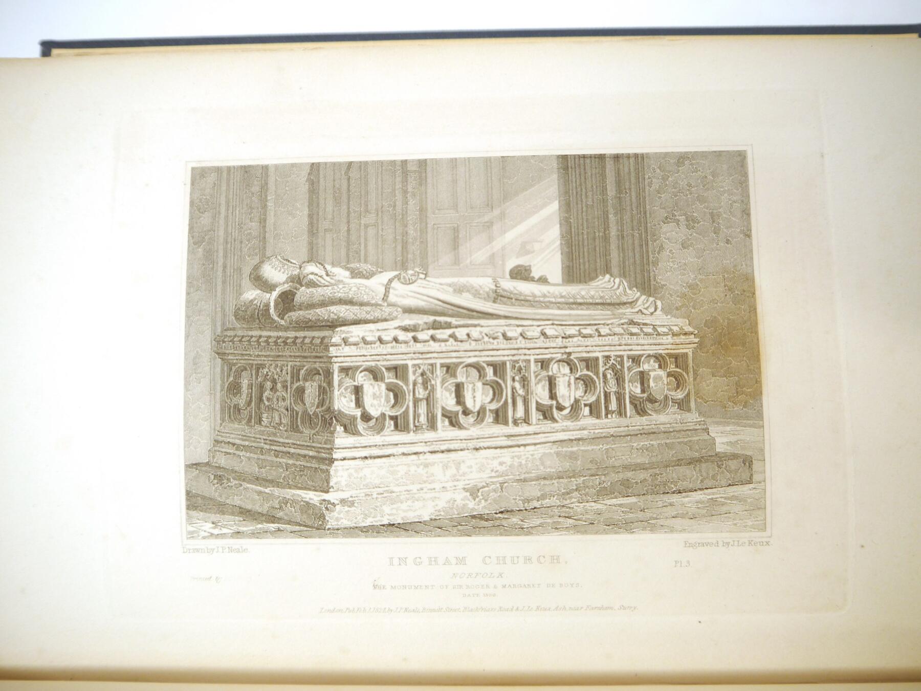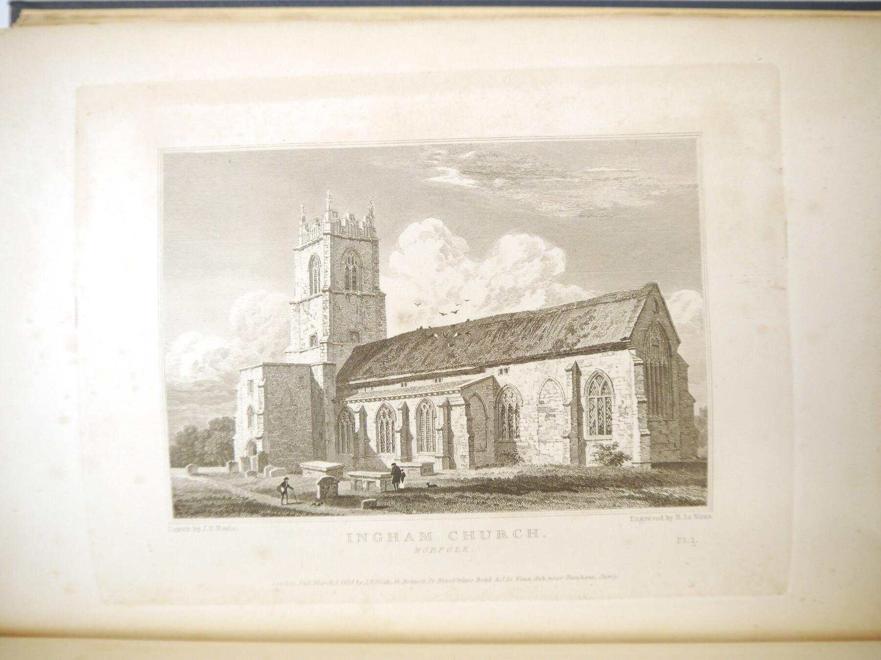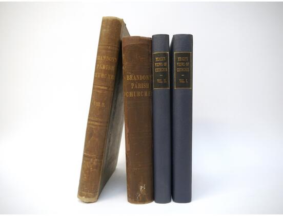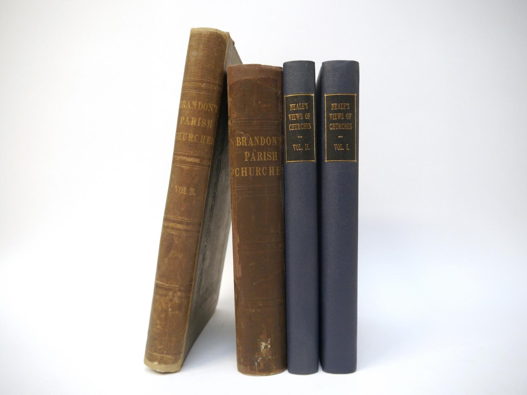 John Preston Neale & John Le Keux: 'Views of the Most Interesting Collegiate and Provincial Churches of Great Britain', London, 1824, 1st edition, 2 volumes, 96 plates and two vignettes as called for (incl. 25 plates Norfolk & Suffolk Churches), rebound cloth gilt; R & J Arthur Brandon: 'Parish Churches Being Perspective Views of English Ecclesiastical Structures', London, 1848-1851, 2 volumes, vast number of plates including Norfolk & Suffolk content, each original cloth gilt, rebacked with original backstrips retained (4)