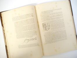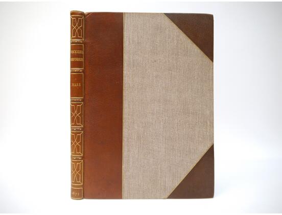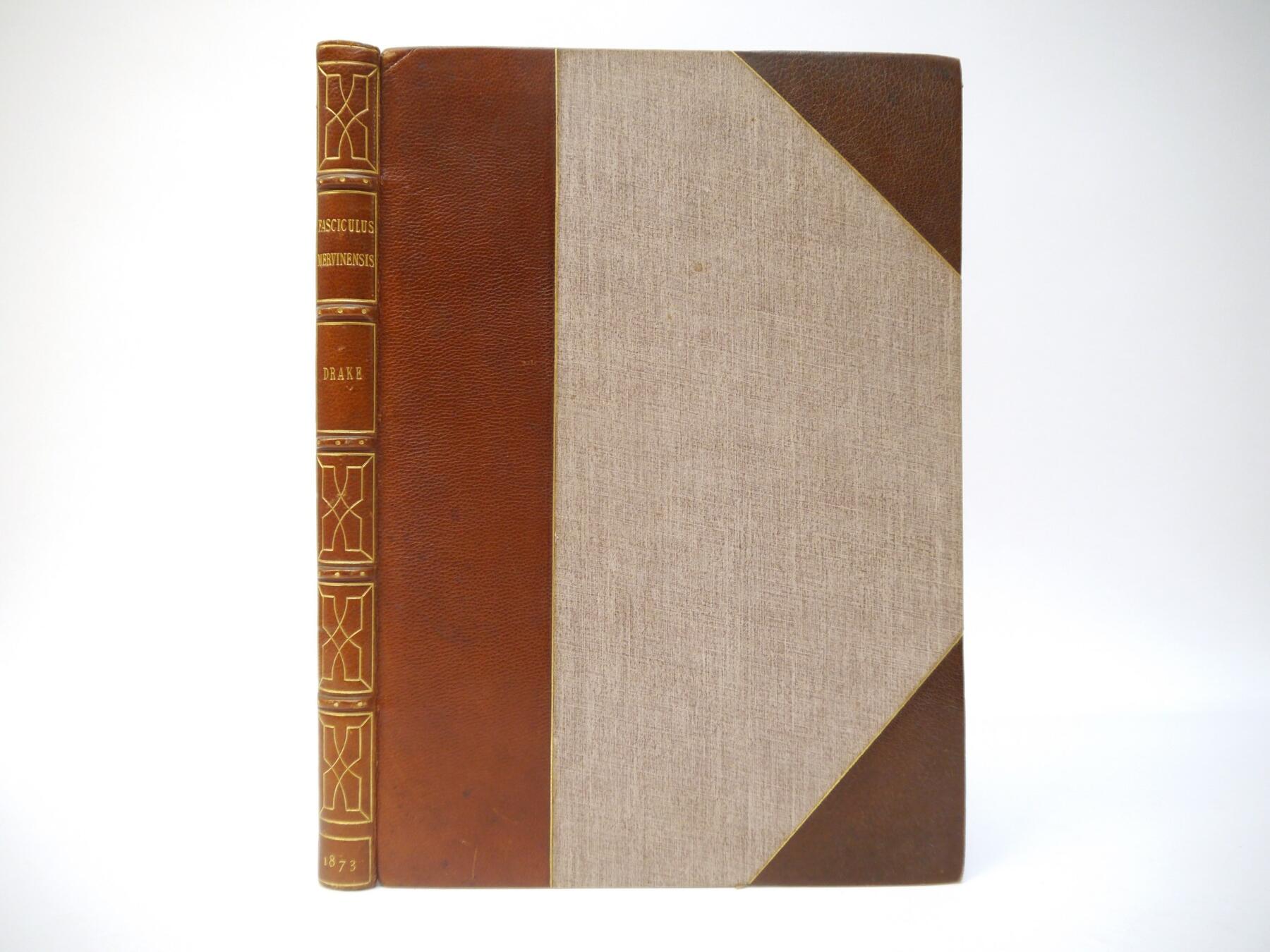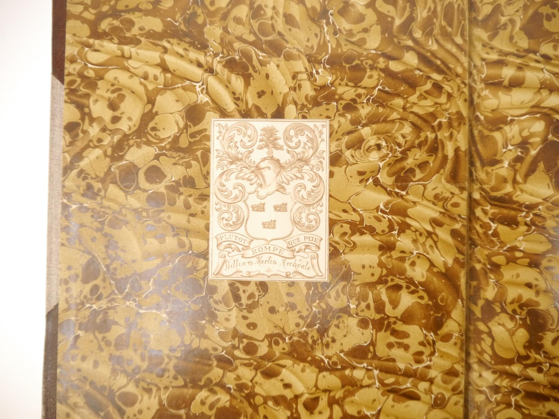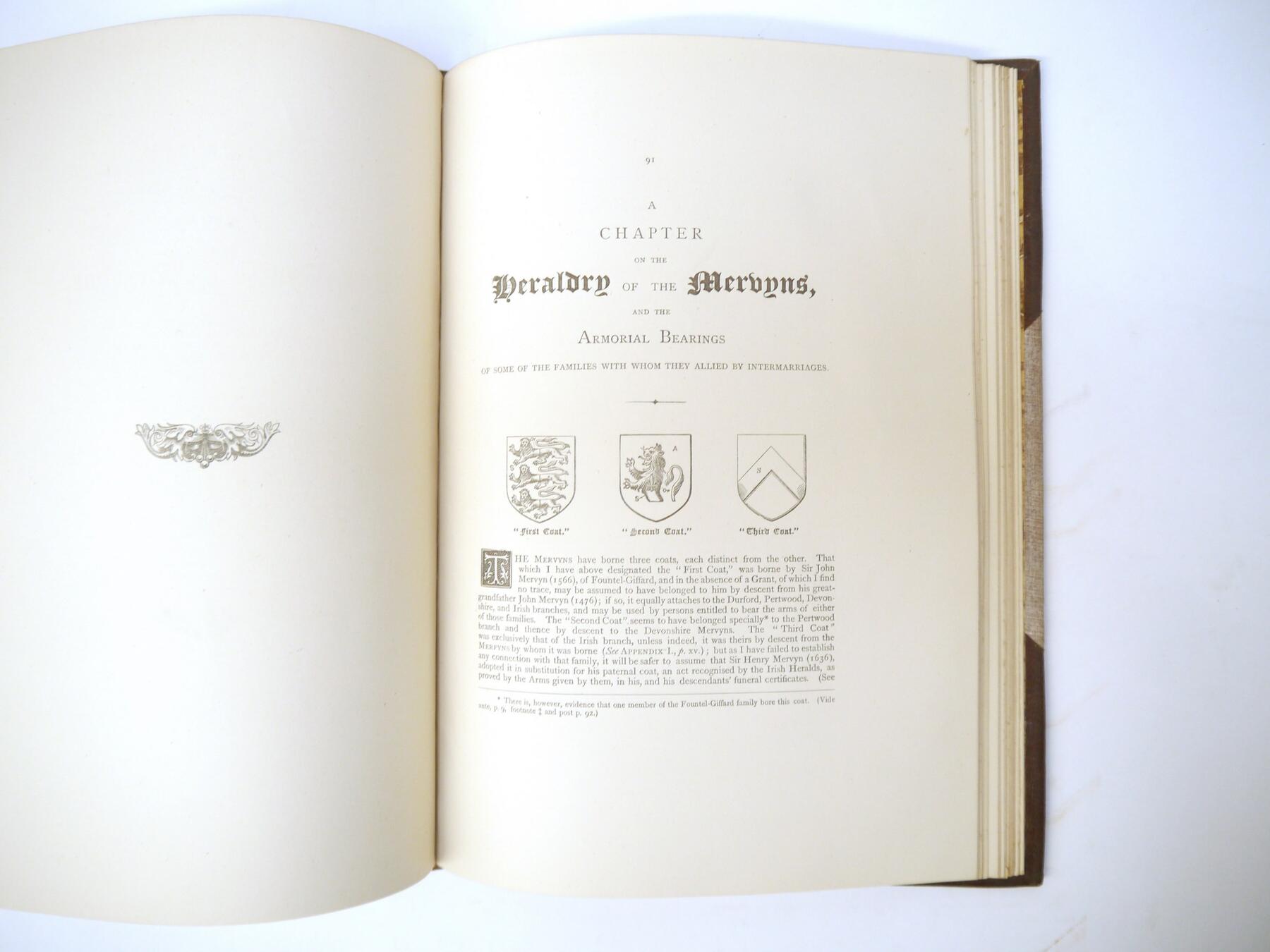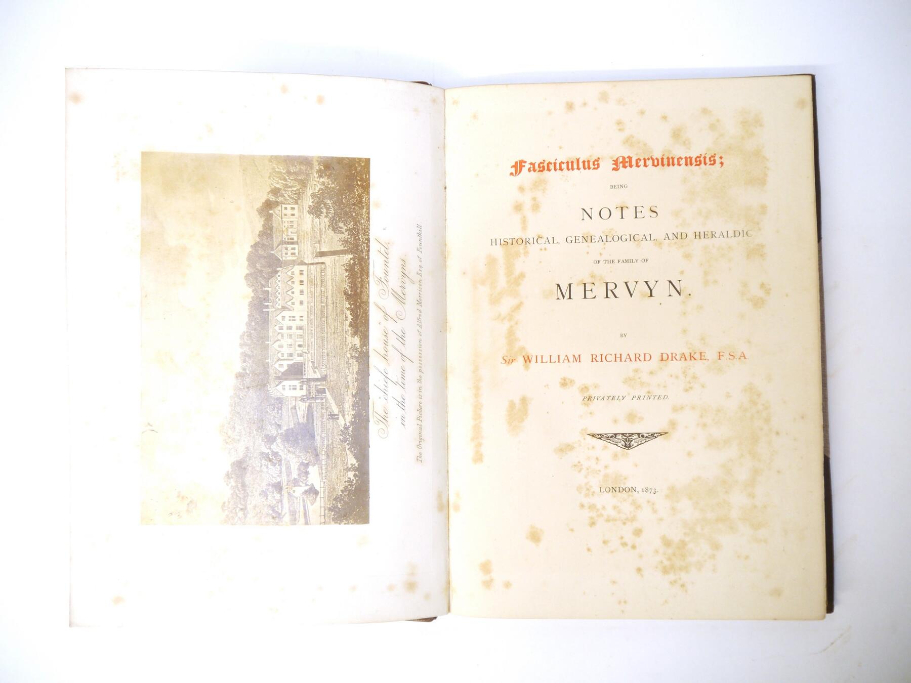 Sir William Richard Drake: 'Fascicules Mervinensis; Being Notes Historical, Genealogical, and Heraldic of the Family Mervin.', London, 1873, privately printed, mounted frontis + folding pedigrees as called for, folio, three quarter crushed morocco gilt, spine gilt in compartments, top edge gilt, bookplate of William Martin Archdale (1912-2003) to front pastedown