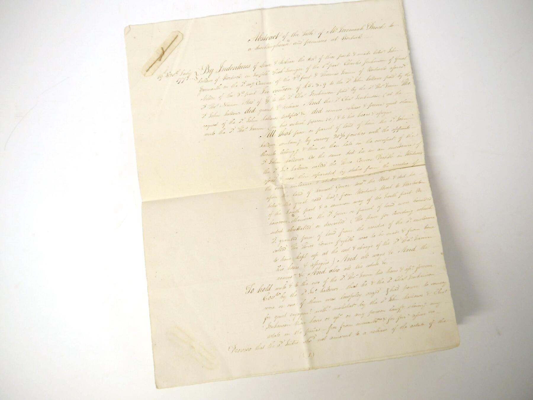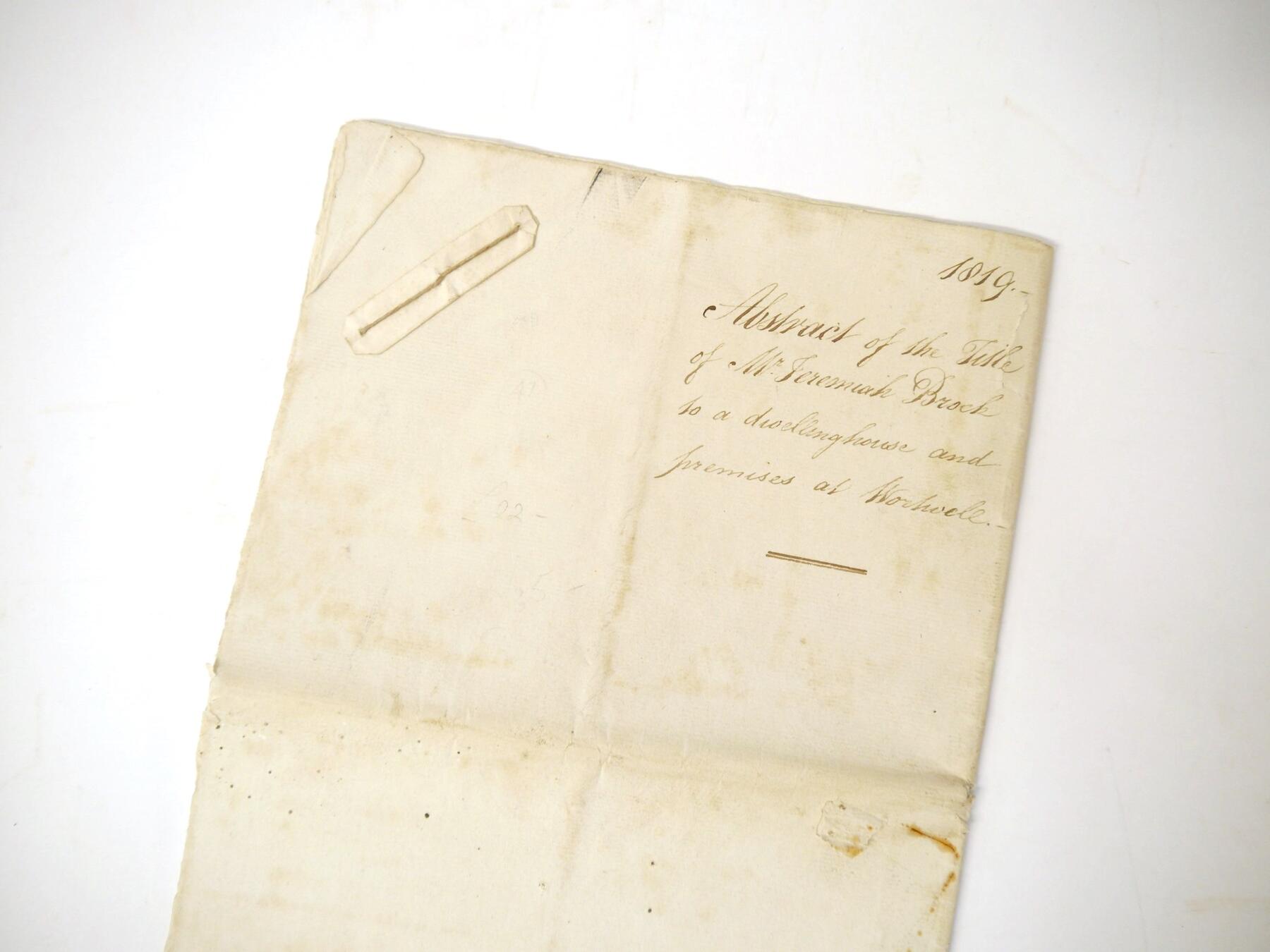 Abstract of title of a Jeremiah Brock of Wortwell, 1819, seven large folding sheets, string tied
