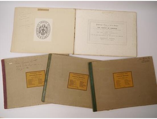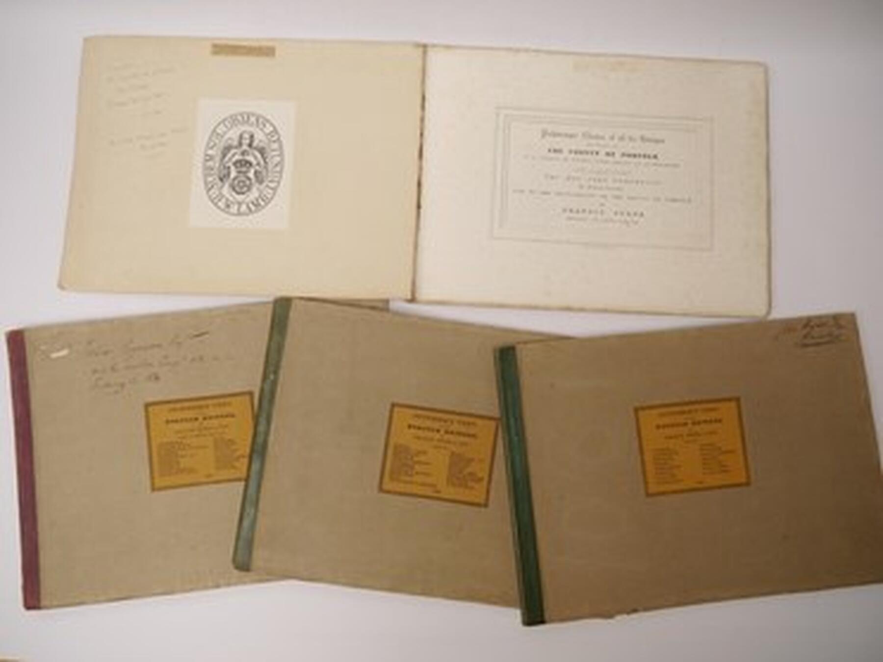 Francis Stone: 'Picturesque Views of the Norfolk Bridges', 1830-1831, in four original parts as issued, engraved title page + 84 lithograph plates as called for, author's inscribed presentation copy to John Rogerson Esq on upper cover of part 4, oblong 4to, original roan backed card covers, printed labels to upper covers, bookplates of R.W. Lamb of Lowestoft. Scarce in the original parts (4)