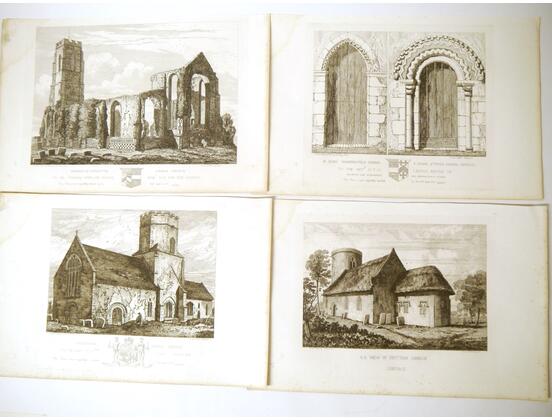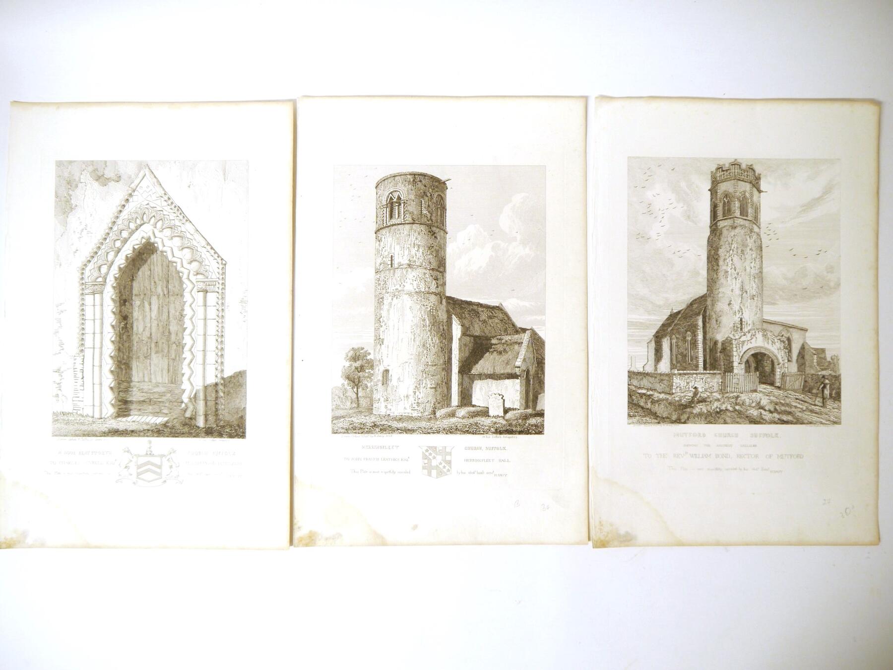 Henry Davy (1793-1865), seven etchings circa 1820's including Fritton Church, Covehithe, Mutford, Pakenham, Herringfleet etc, each plate impression approx 25x30cm, housed loose in packet