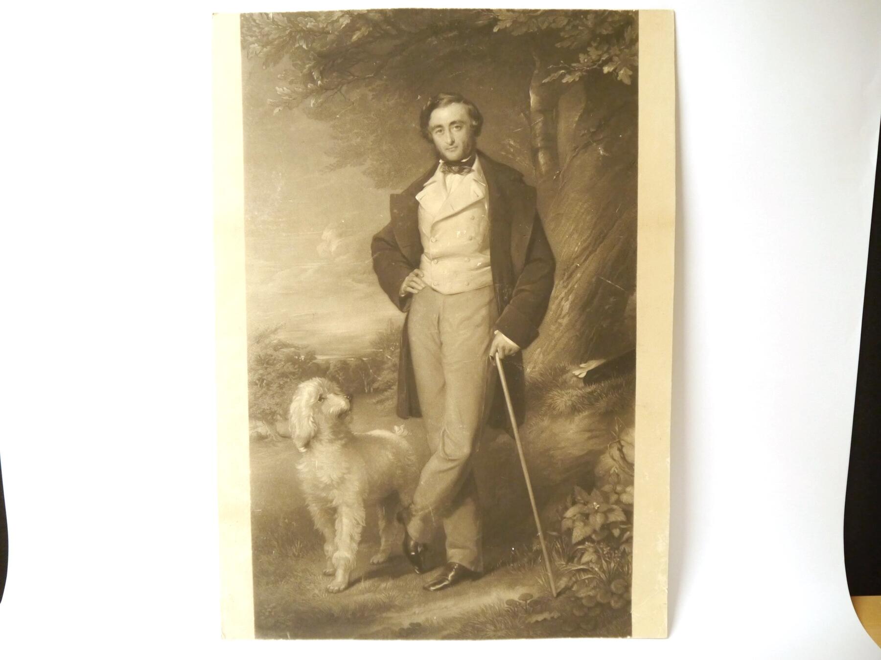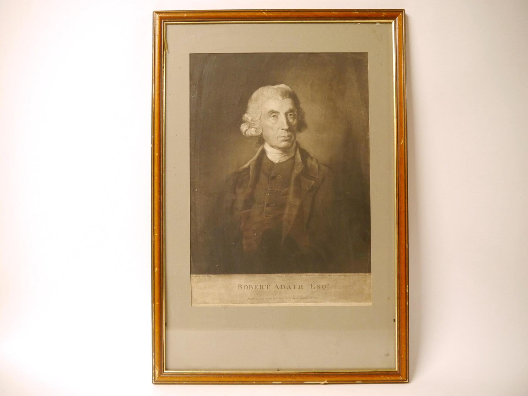 A large circa Mid 19th Century mezzotint portrait of Sir Edward Kerrison (1821-1886), 2nd Baronet of Oakley Park, Hoxne and Brome Hall, Suffolk, after George Richmond, approx 63cm x 45cm; plus a mezzotint portrait of Robert Adair of Flixton Hall, Suffolk, 1791, framed and glazed (2)