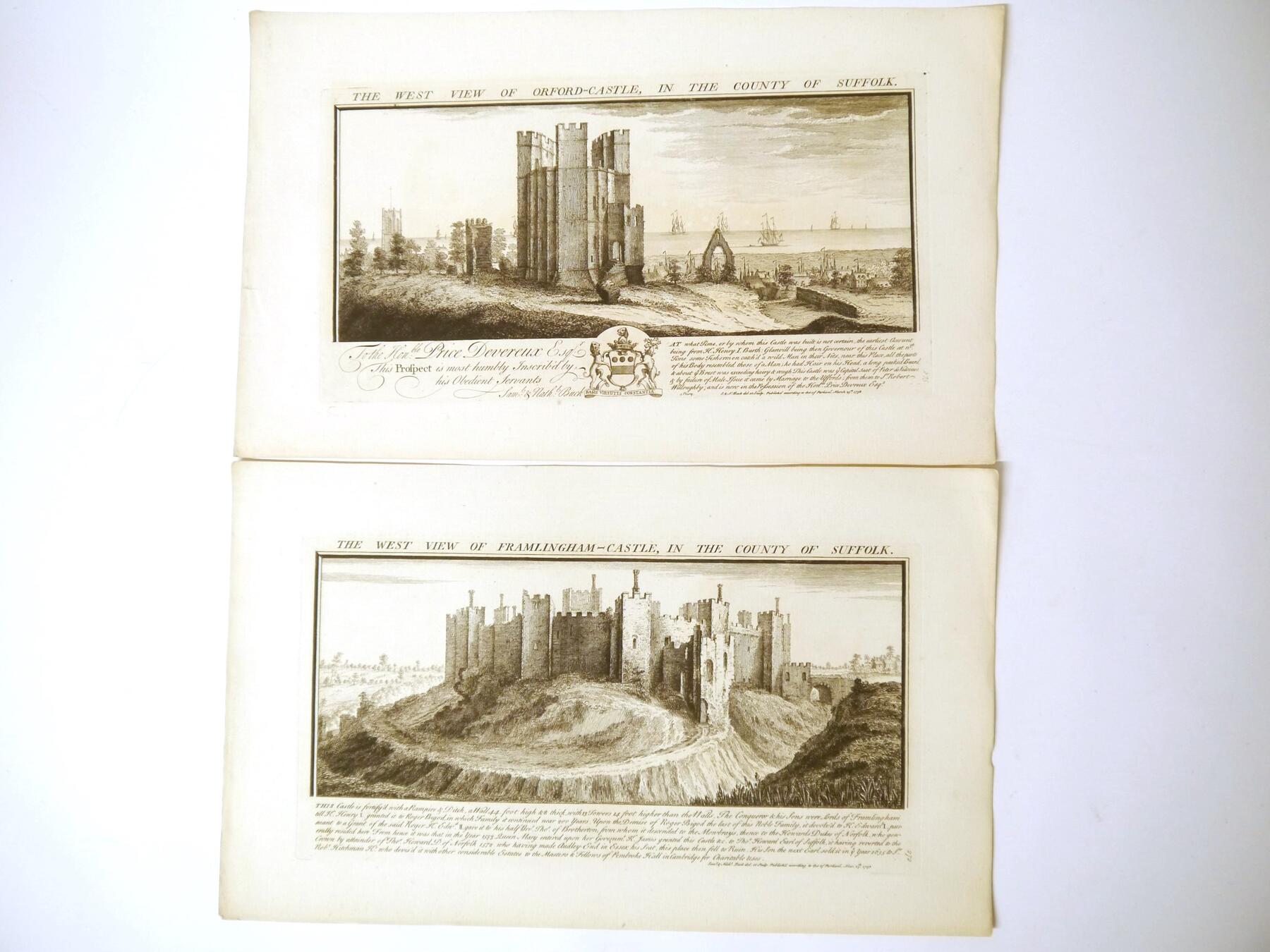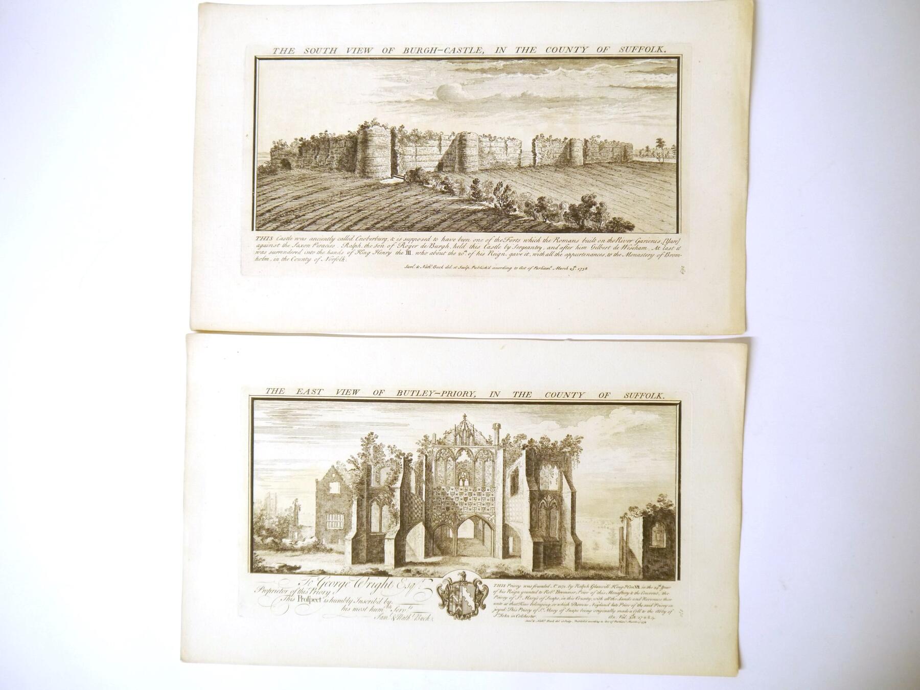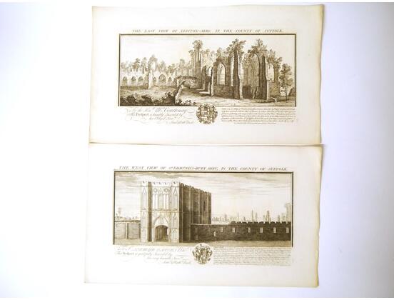 Samuel & Nathaniel Buck, six 18th Century engraved views of Suffolk, comprising Leiston Abbey; Bury St Edmund's Abbey; Burgh Castle; Butley Priory; Framlingham Castle; Orford Castle (6)