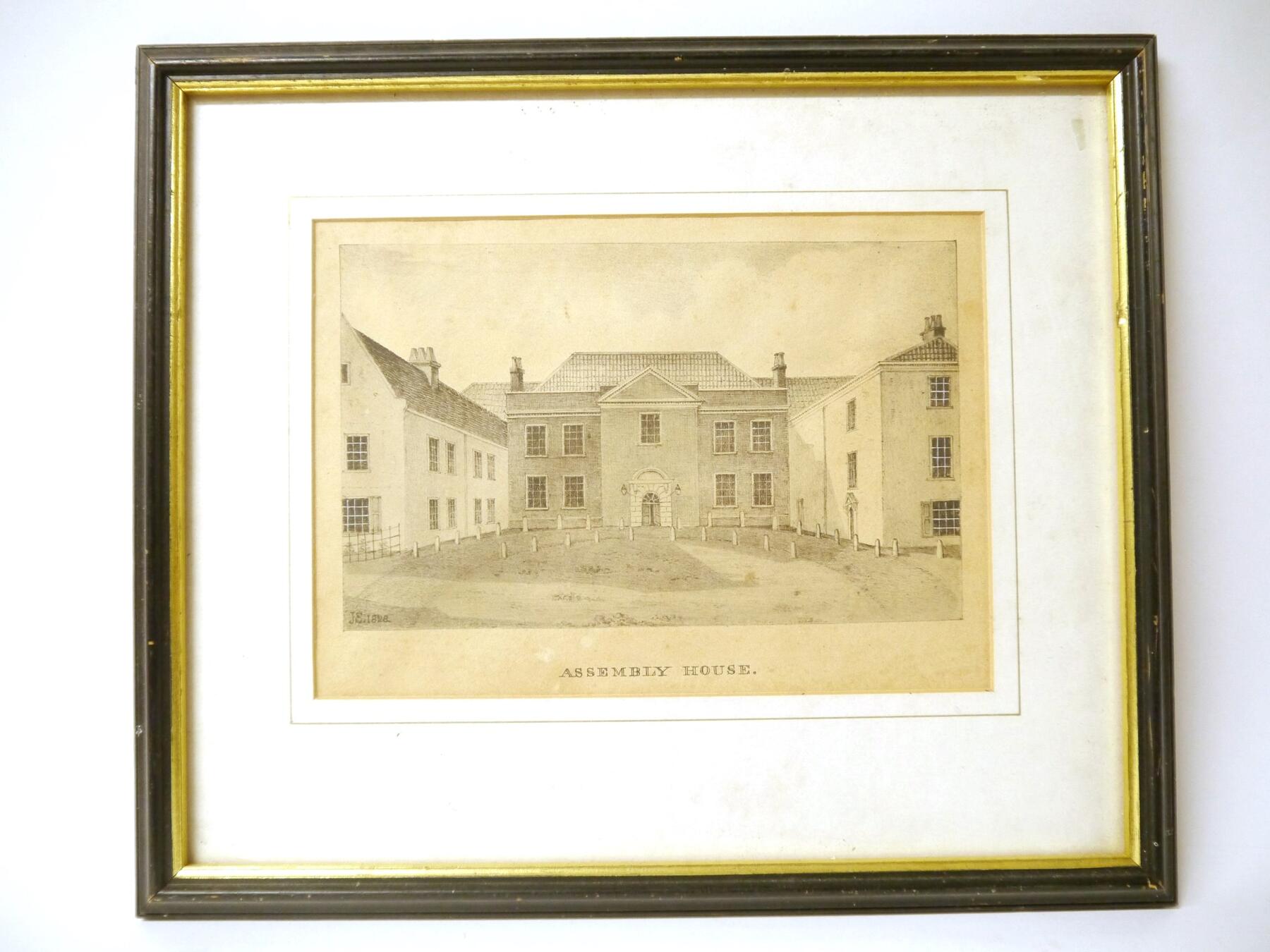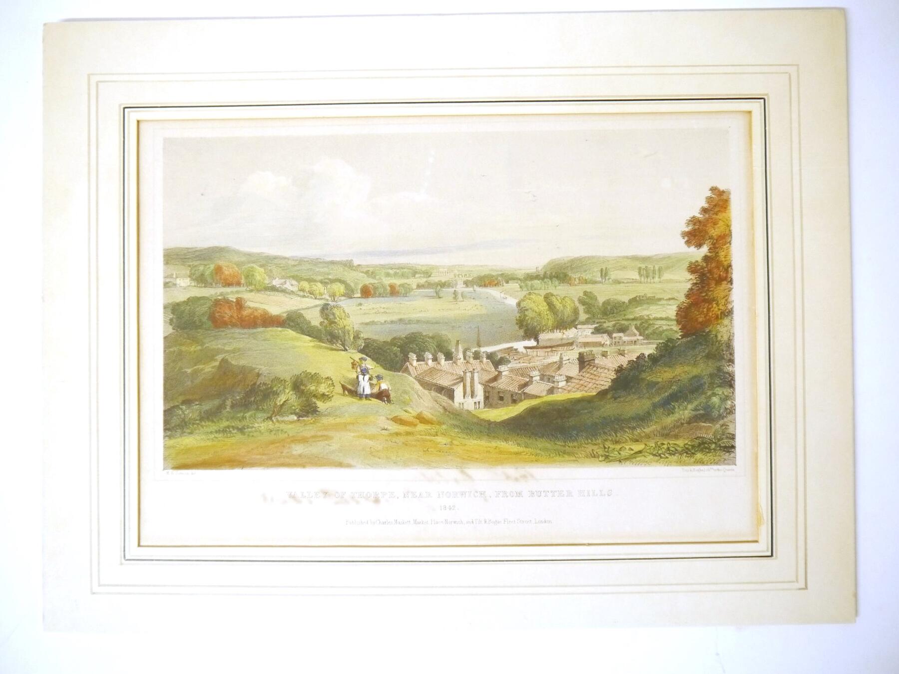 A coloured lithograph 'Valley of Thorpe, Near Norwich, from Butter Hills', 1842, by M.E. Cotman/Day & Haghe, image 16 x 27cm, mounted; plus a framed and glazed lithograph of the Assembly House by James Sillett, 1828 (2)
