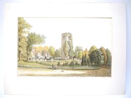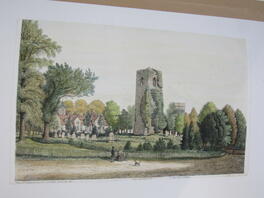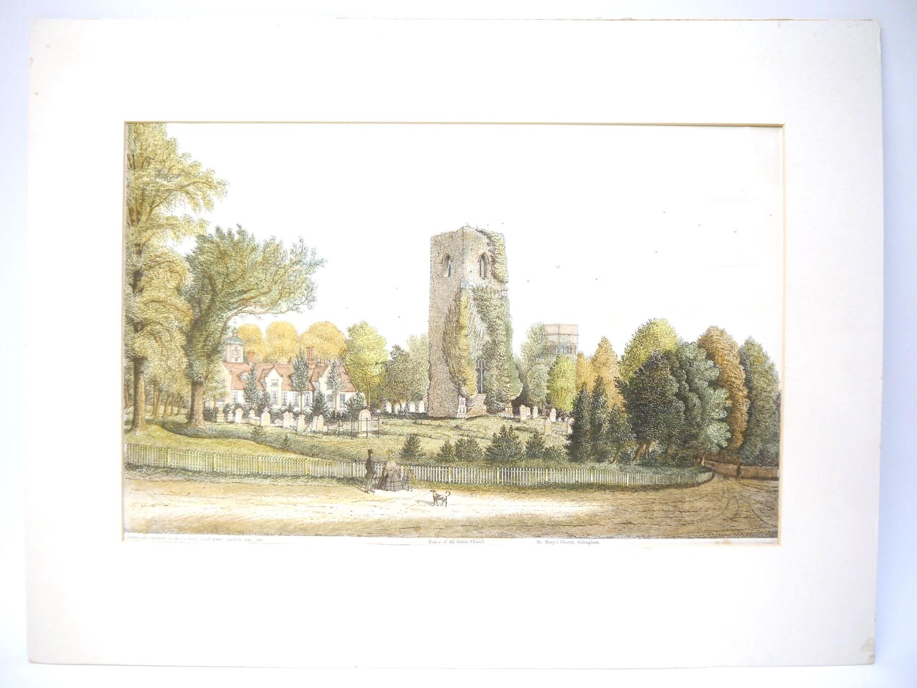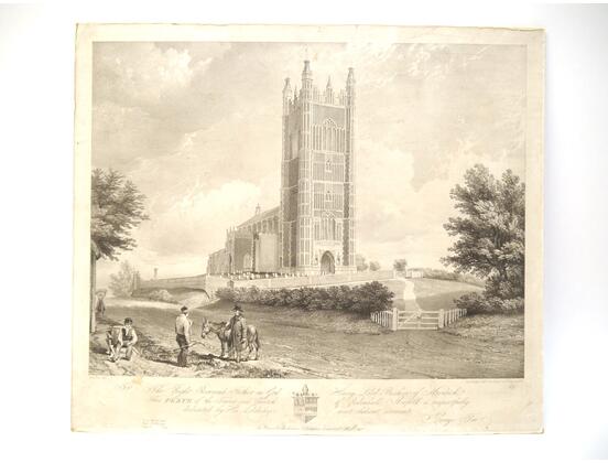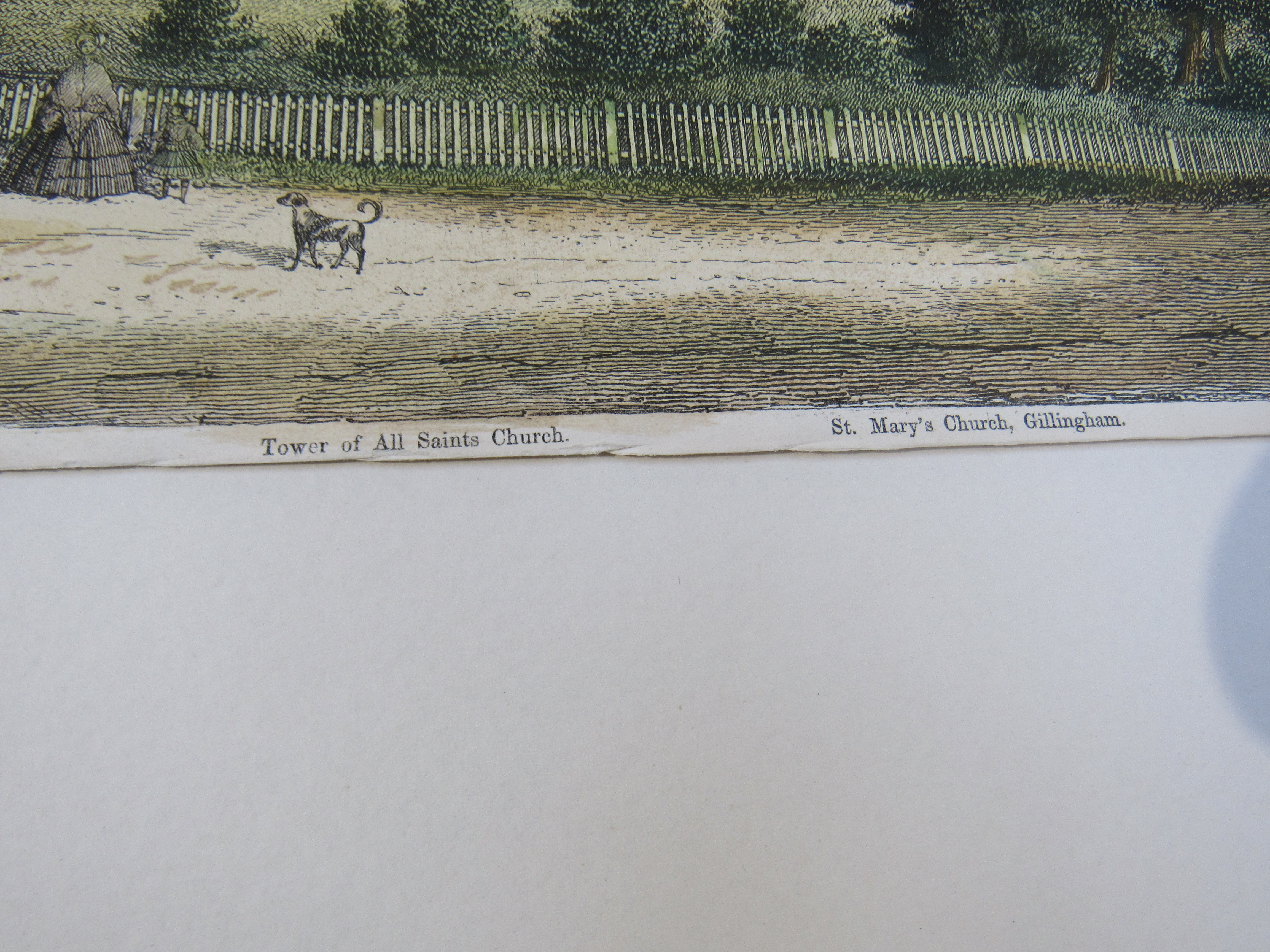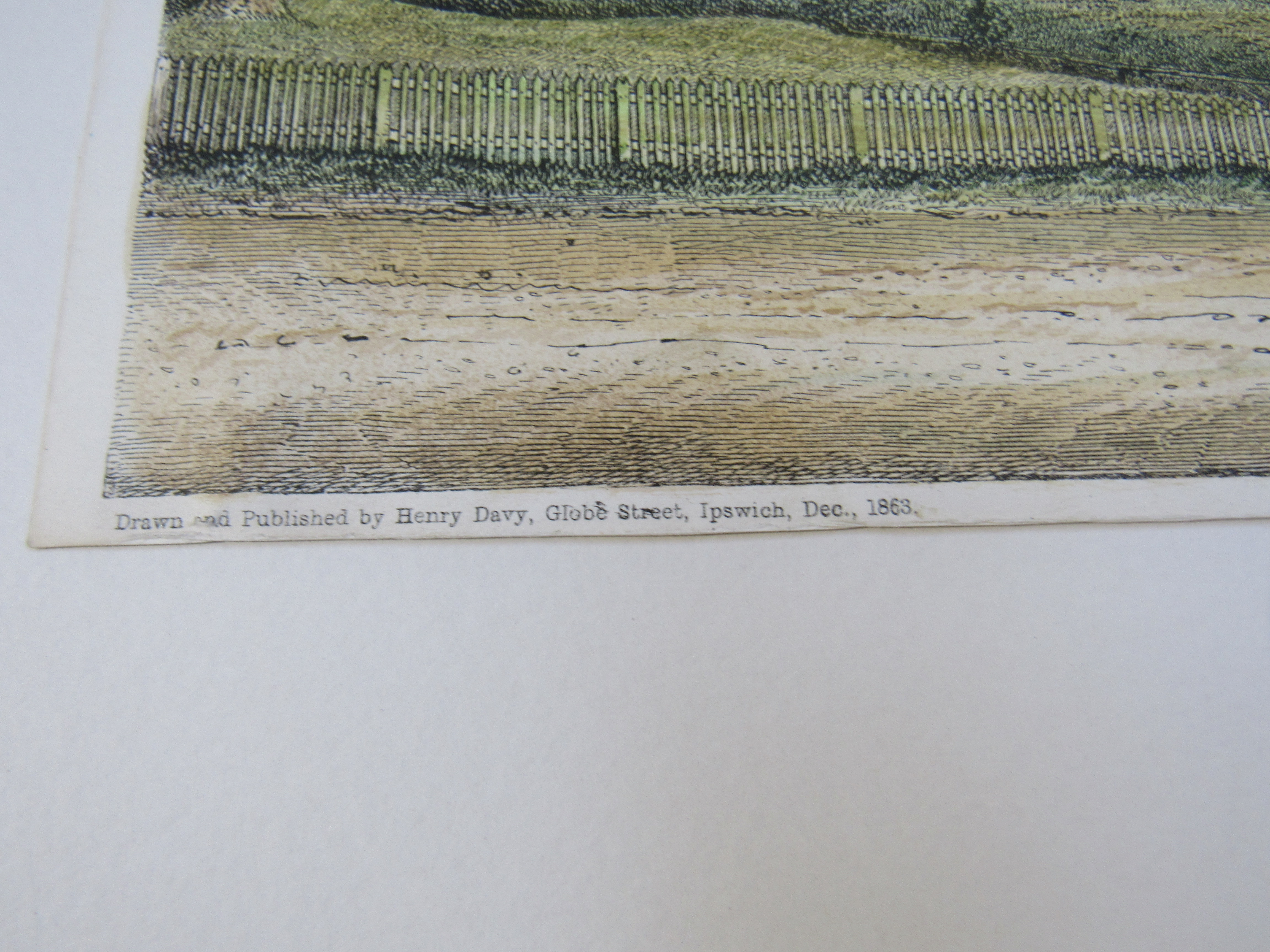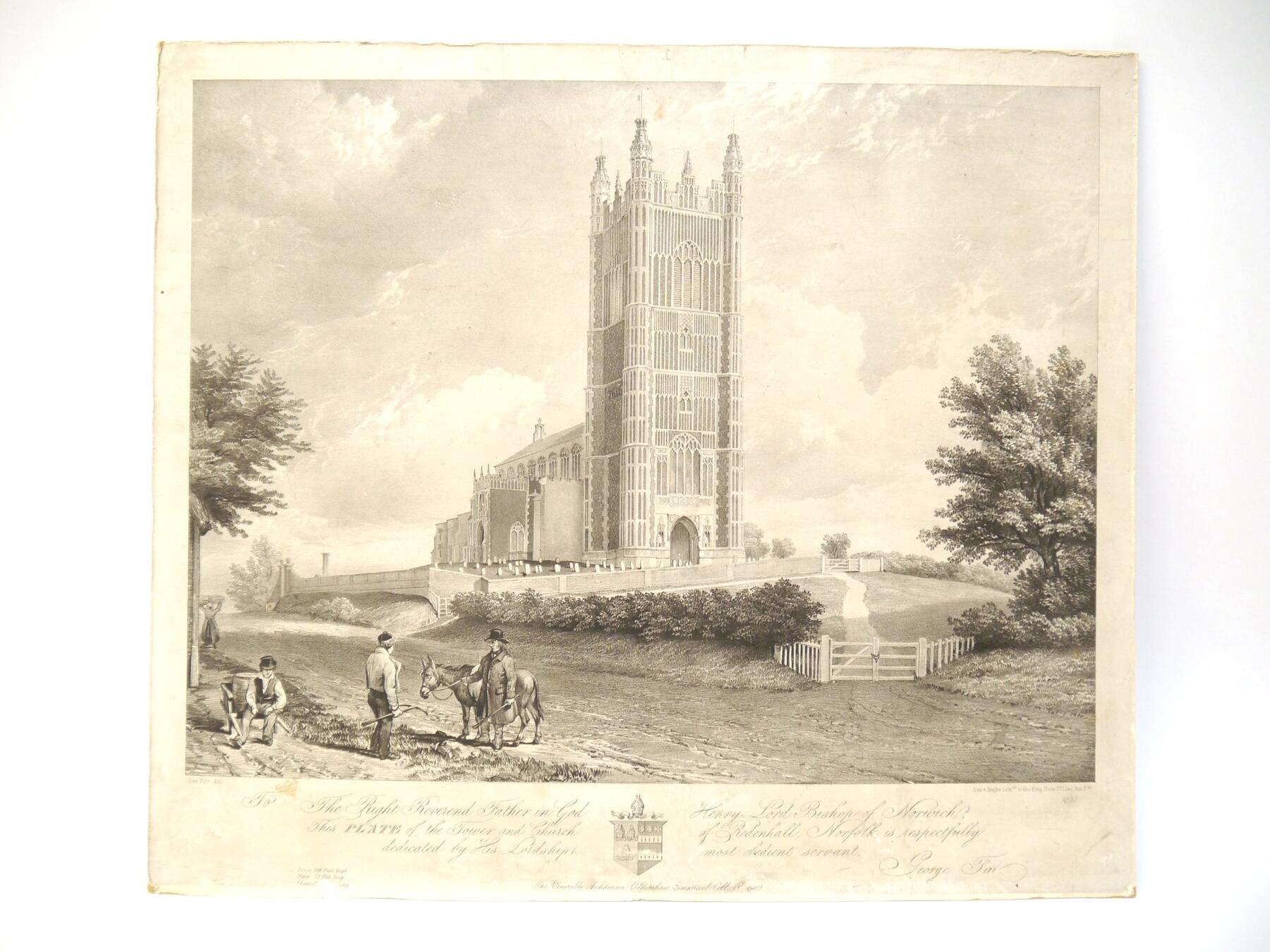 A hand coloured lithograph of Gillingham Hall & Church by Henry Davy, 1863, 26cm x 40cm; plus an 1833 lithograph of Redenhall Church by George Fitt, 40cm x 45cm (2)