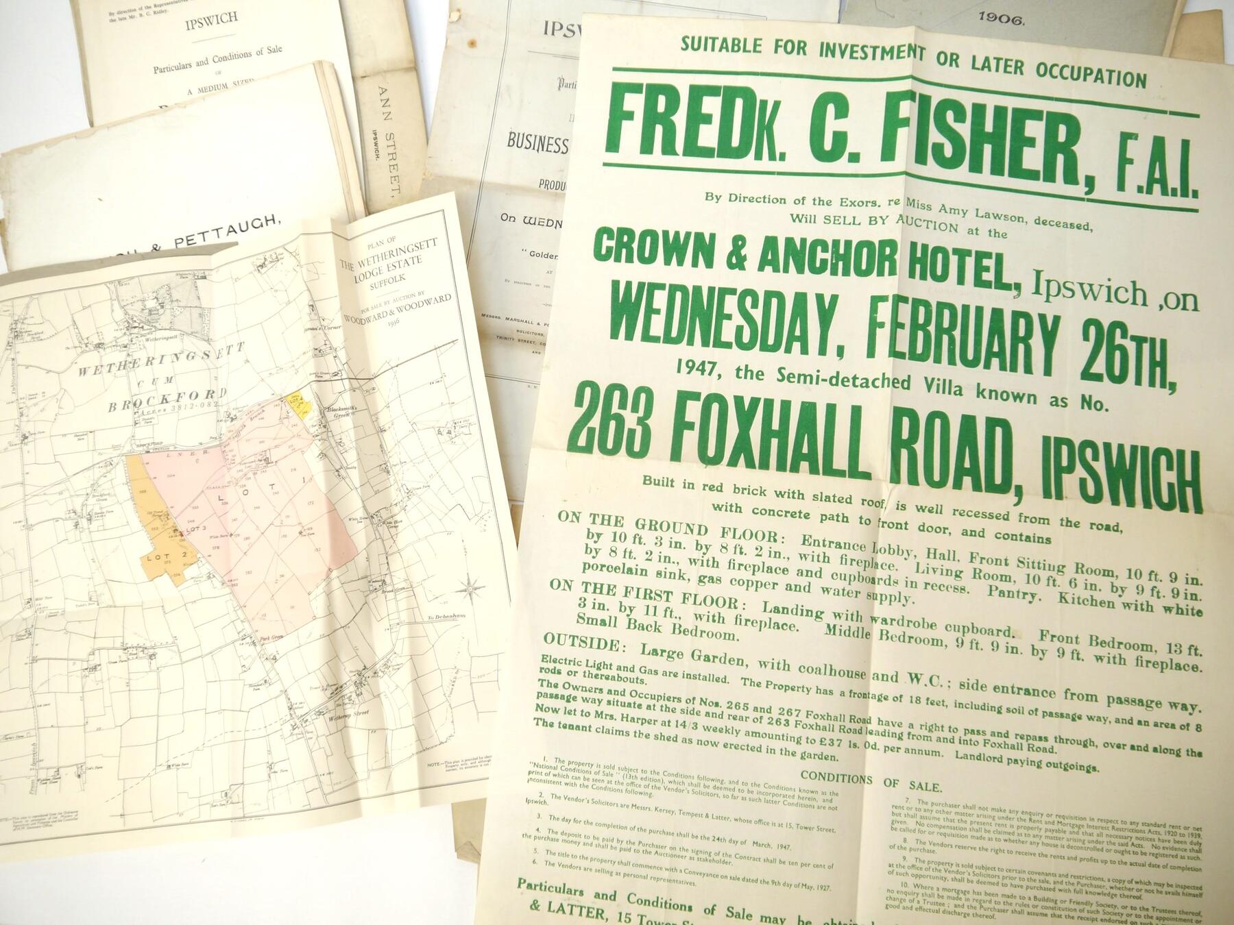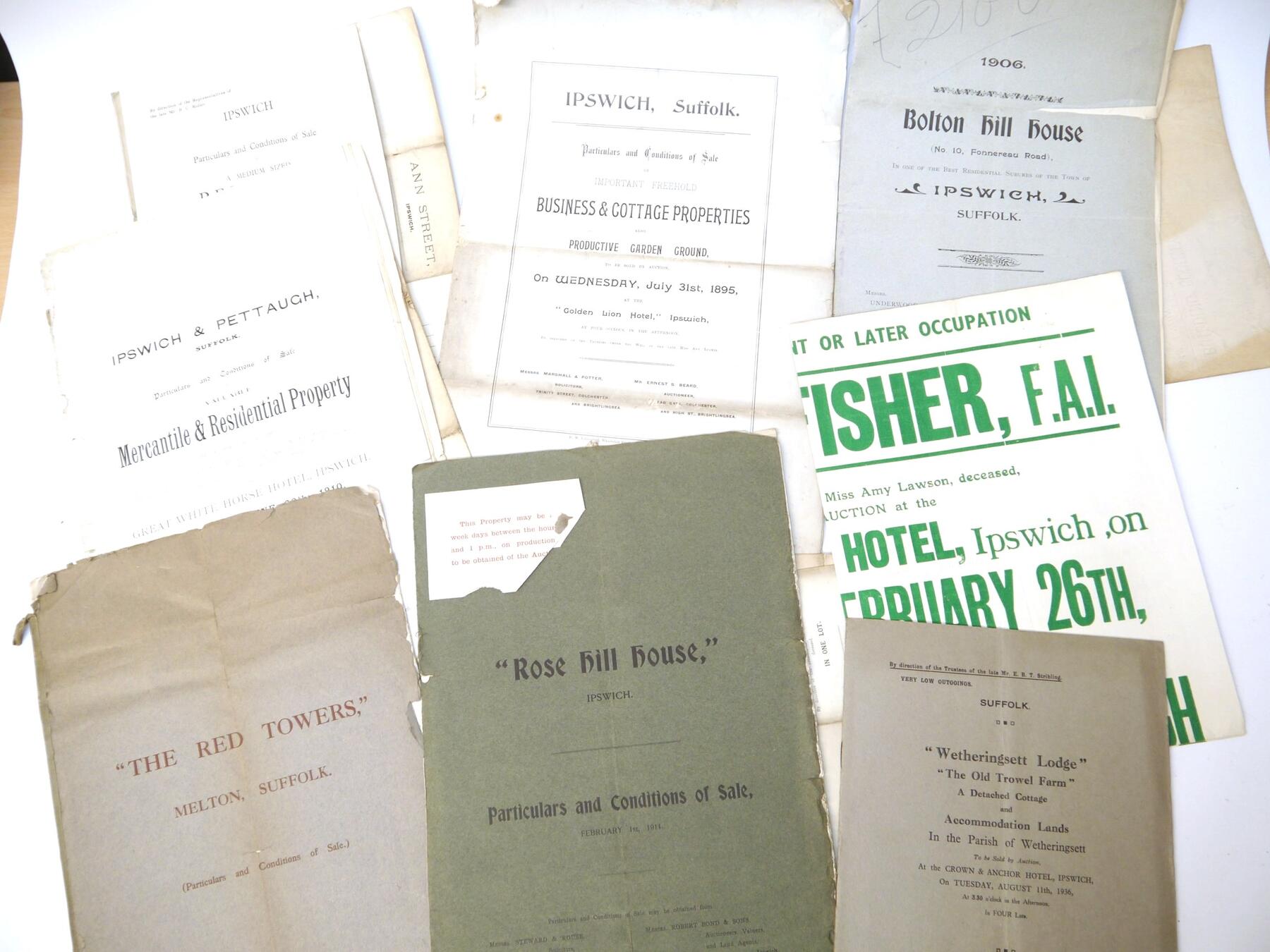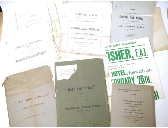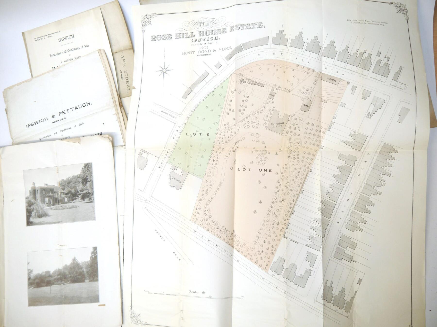 A packet of sale particulars, Ipswich, ''Red Towers'' Melton, Suffolk, 1912; ''Rose Hill House'', Ipswich, 1911; ''Wetheringsett Lodge'', 1936 etc etc