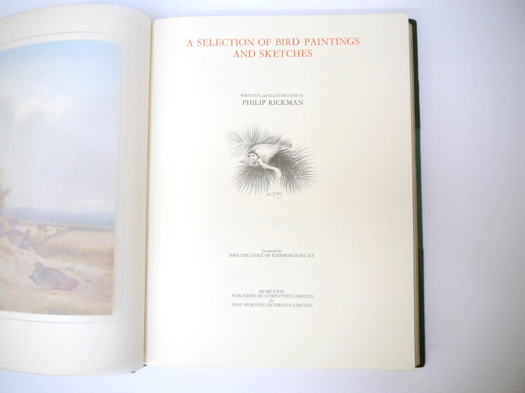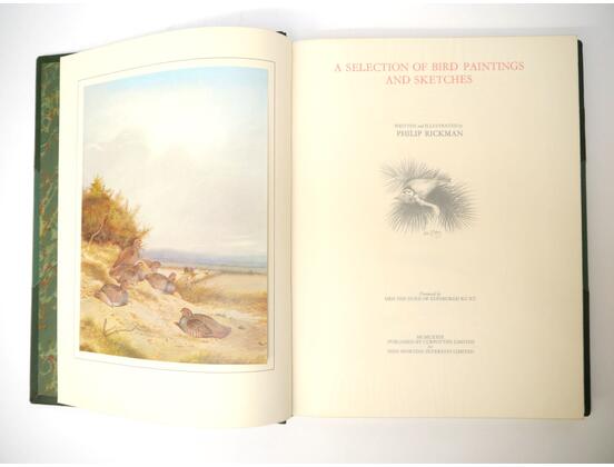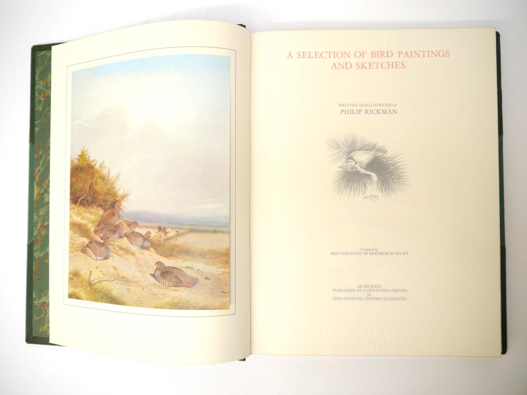 Philip Rickman: 'A Selection of Bird Paintings and Sketches', London, Curpotten Ltd, 1979, limited edition (450/500), numbered and signed by Rickman, 32 mounted coloured plates as called for, large folio, original three quarter green Morocco gilt by Morrell, all edges gilt, original slip case