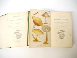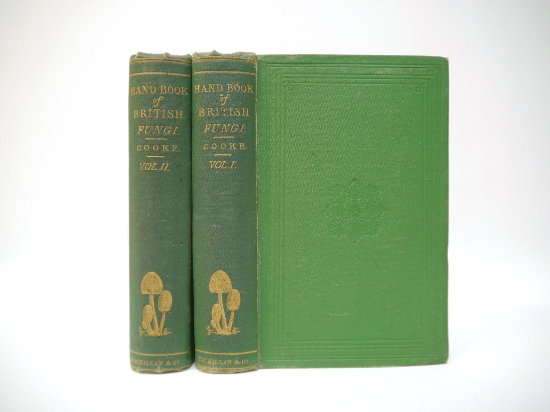 M.C. Cooke: 'Handbook of British Fungi', London, Macmillan, 1871, 1st edition, 2 volumes, coloured litho frontis and partially coloured and uncoloured plates and numerous illustrations in text throughout, 981pp, neat cotemporary annotations to margins throughout, original cloth gilt (2)