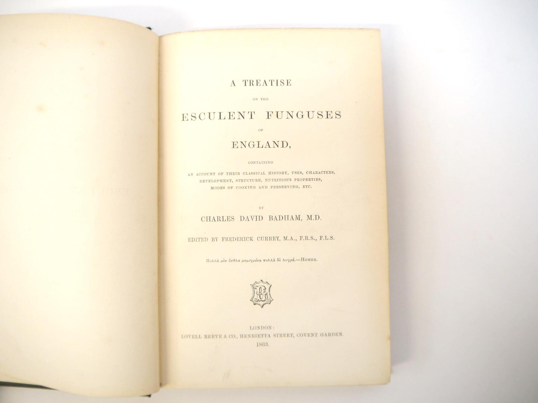 Charles Badham: 'A Treatise on the Esculent Funguses of England', London, 1863, 2nd edition, 12 hand coloured litho plates as called for, original pictorial cloth gilt