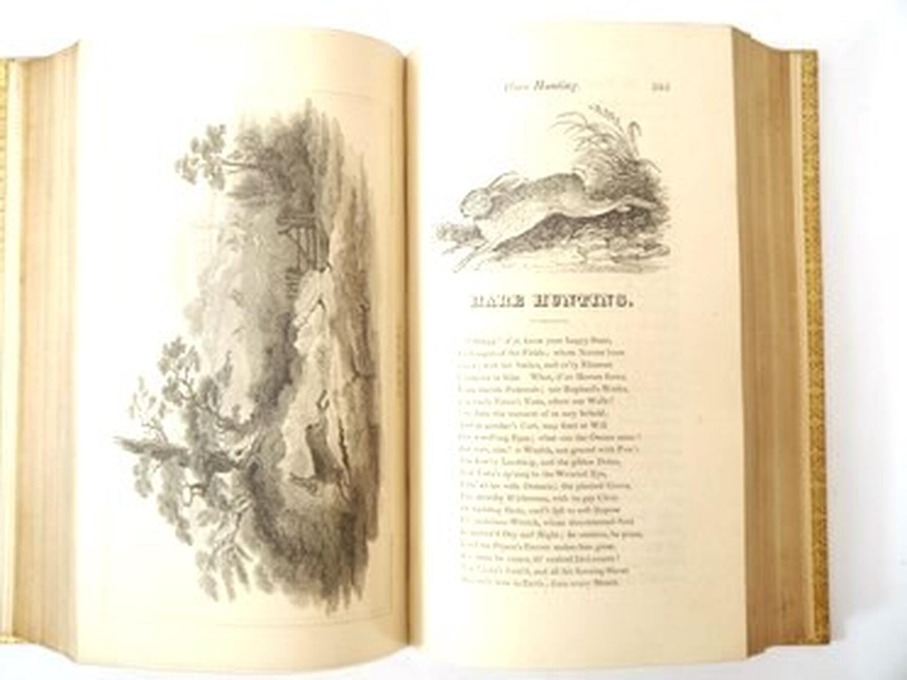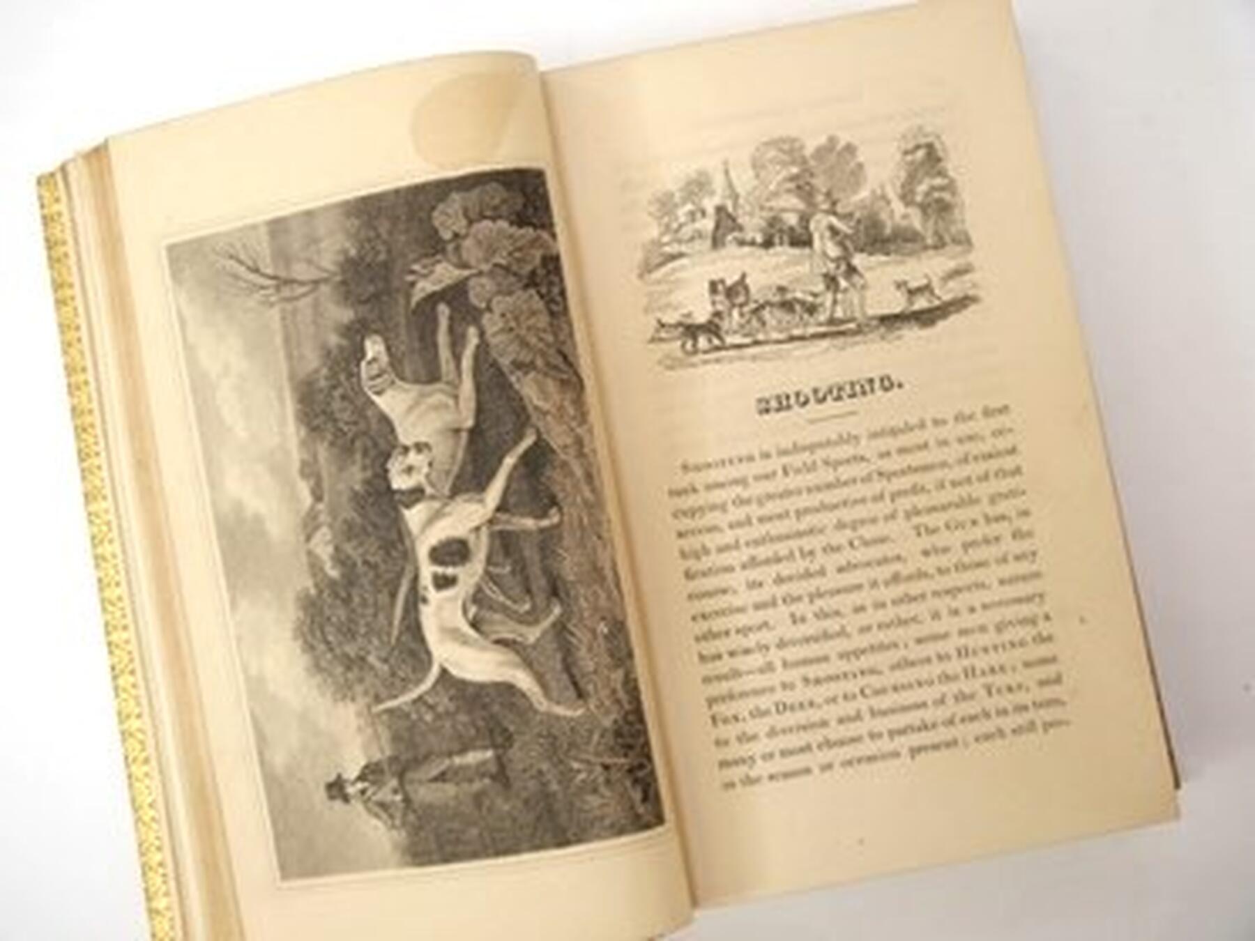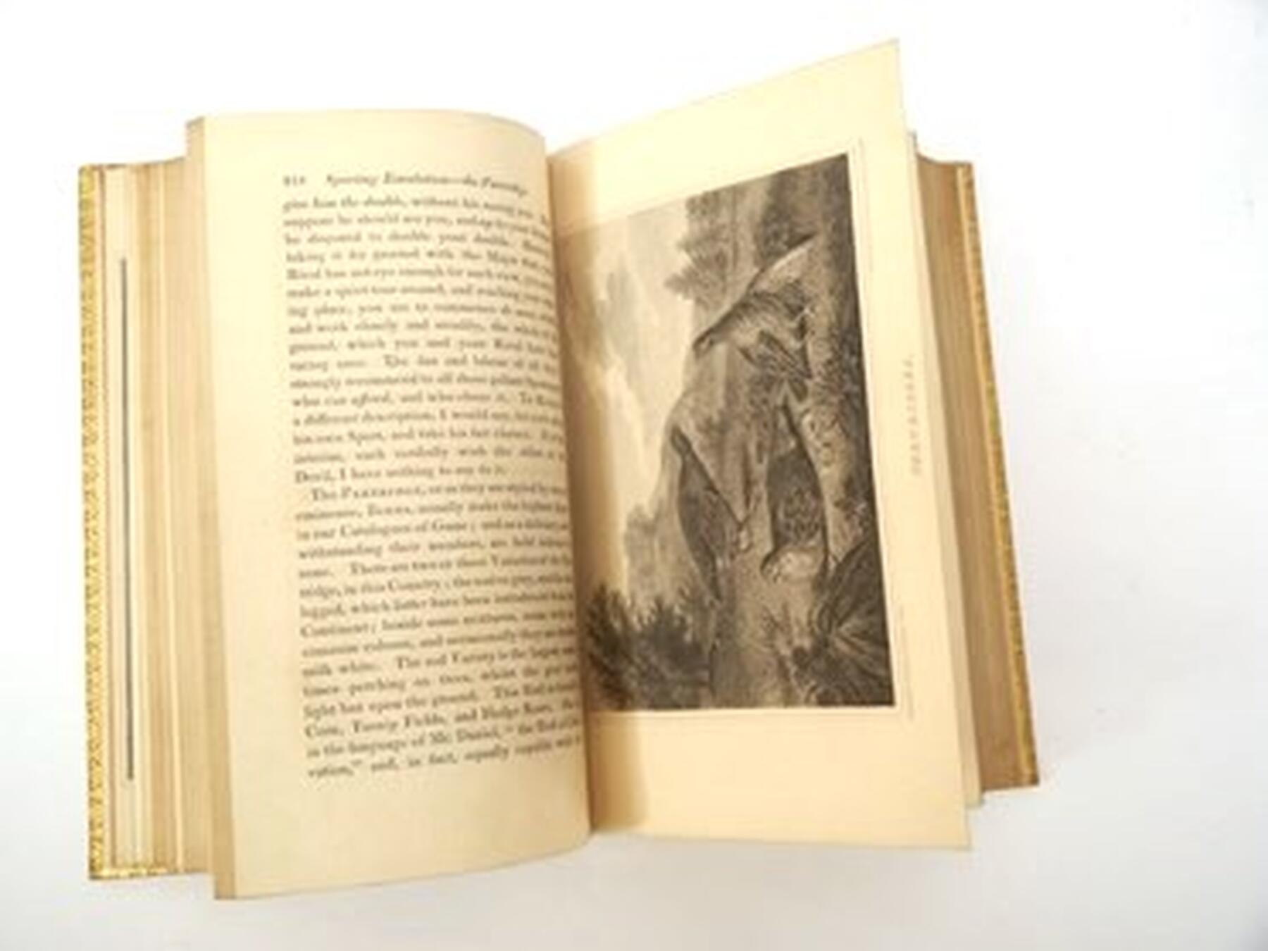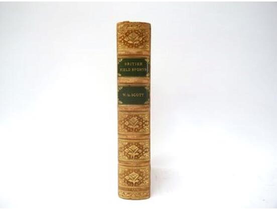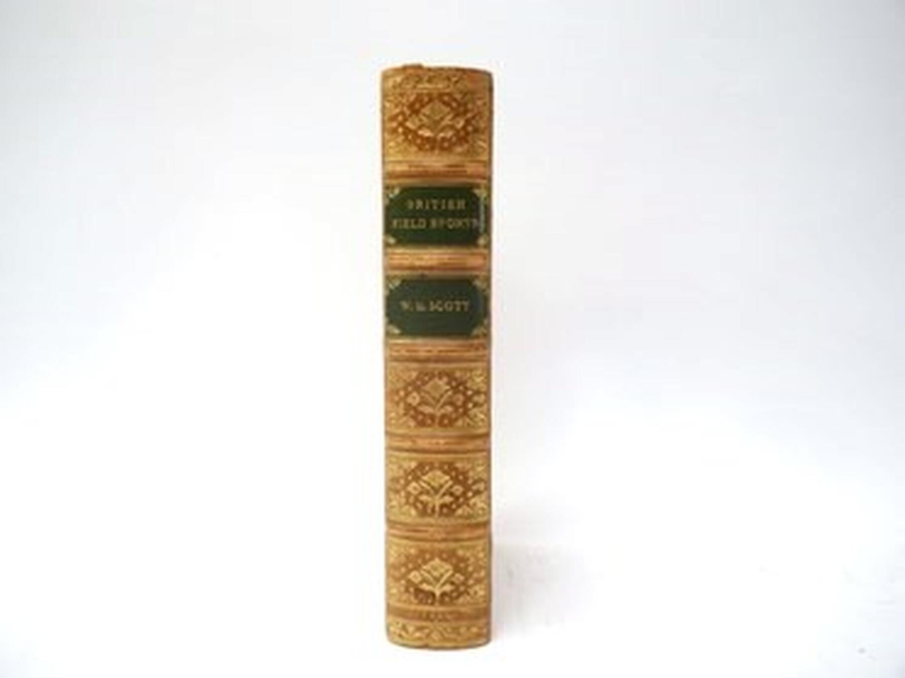 William Henry Scott: 'British Field Sports', London, Sherwood, Neely & Jones, 1818, 1st edition, added engraved title page + 34 engraved plates as called for, full tan morocco gilt, spine gilt in compartments, green morocco gilt title label, inner dentelles gilt, all edges gilt, armorial bookplate of Howard Mortley Hayes to front pastedown