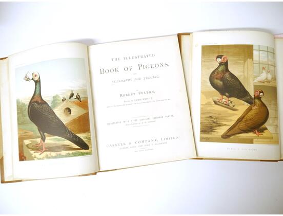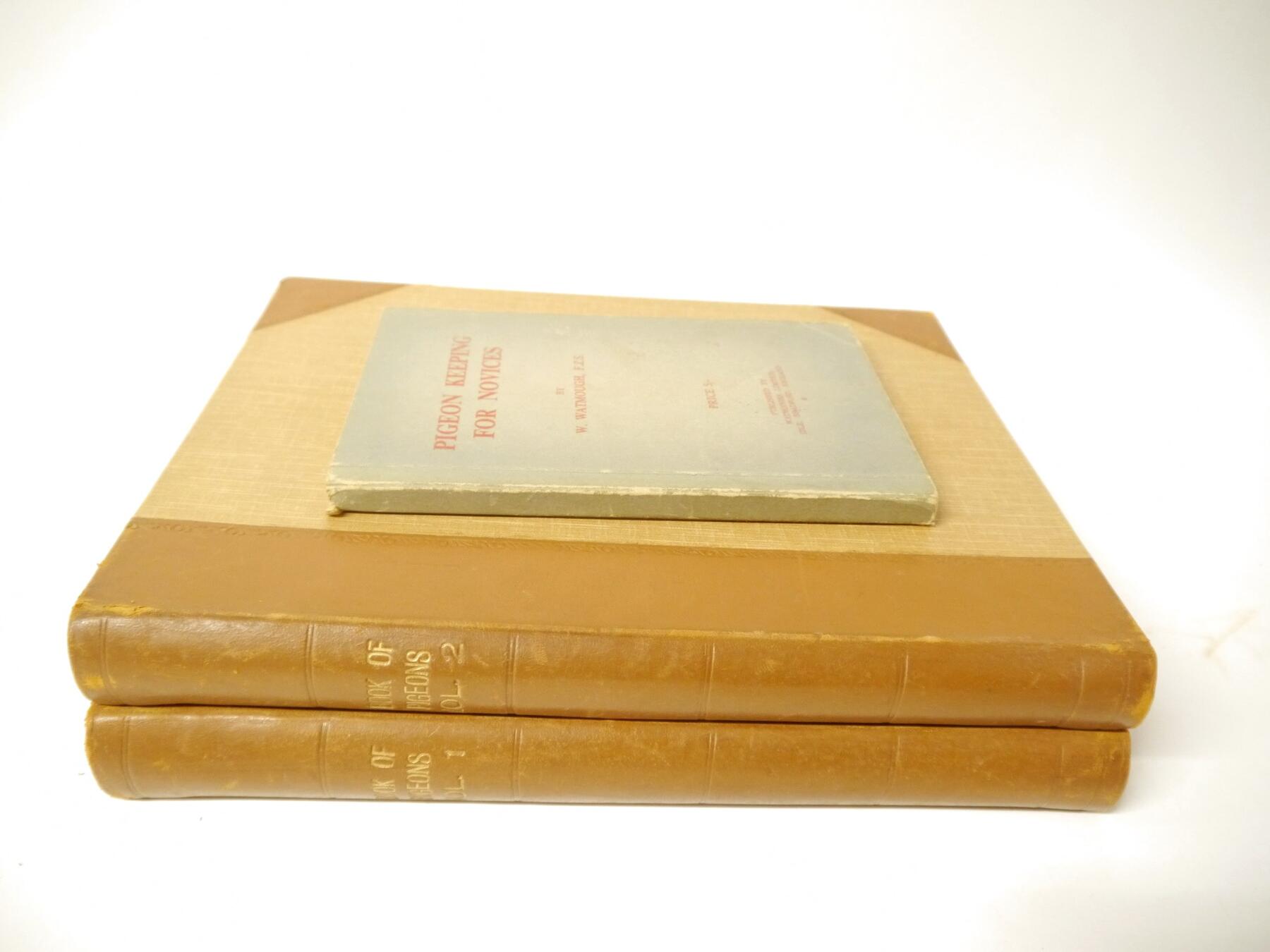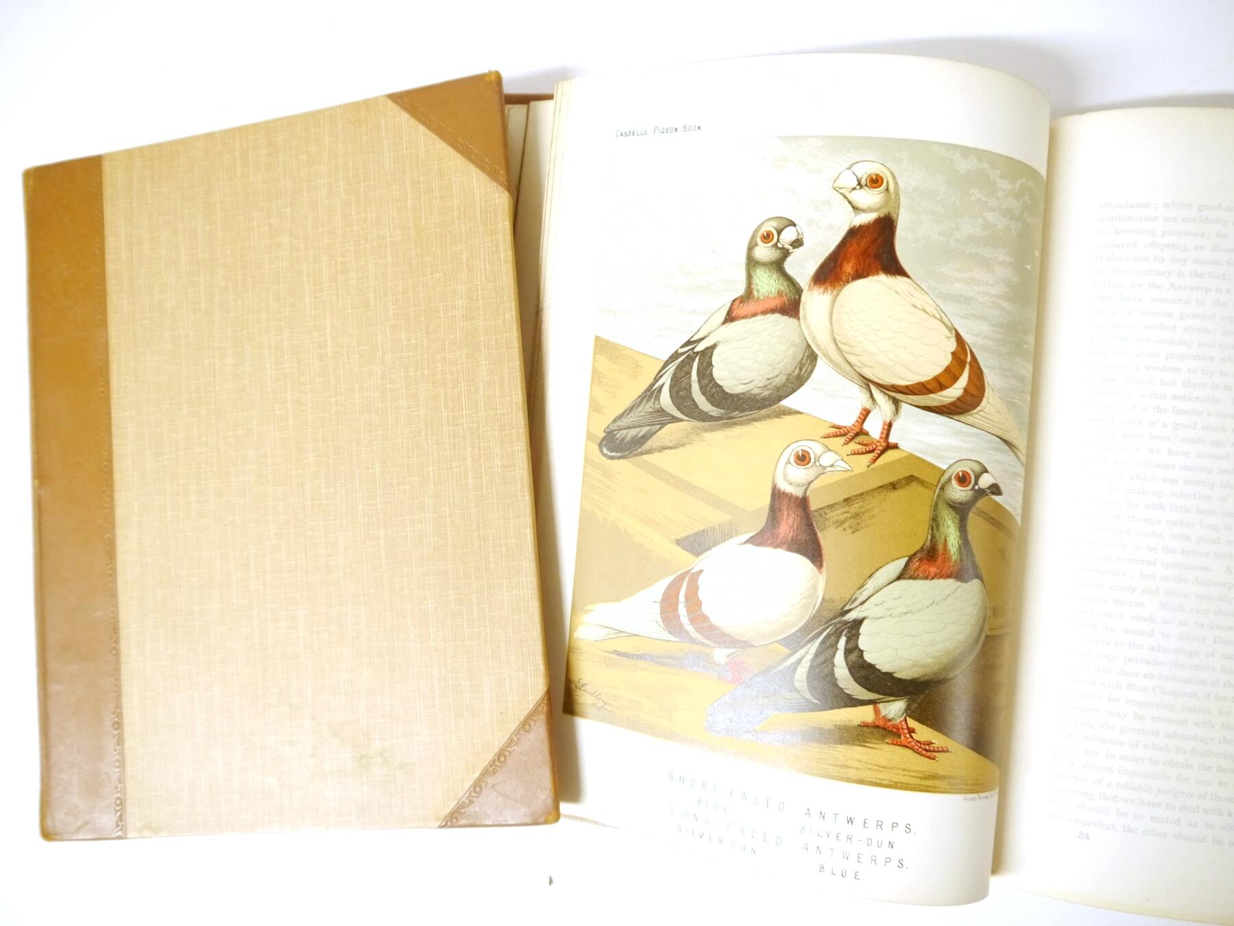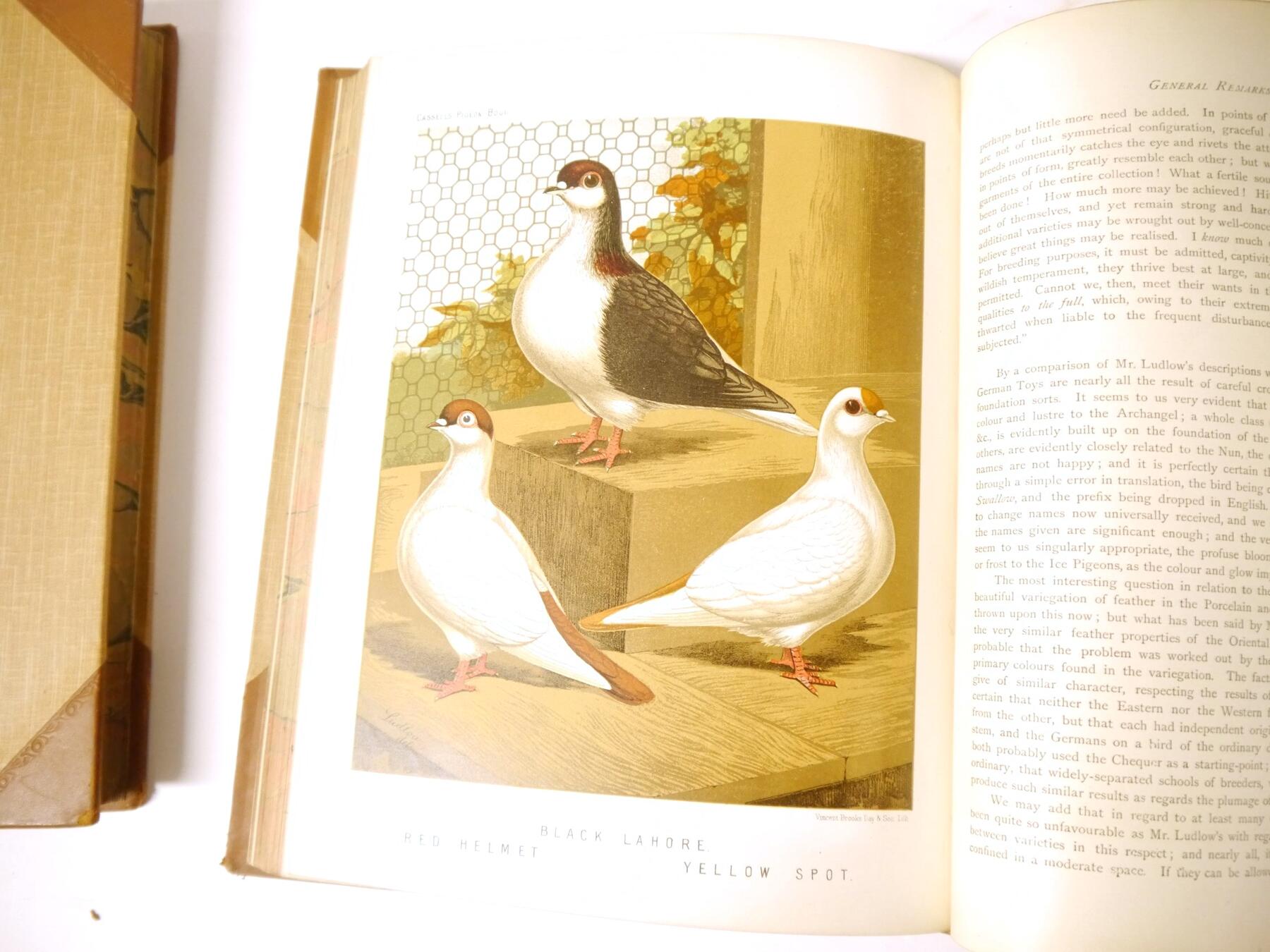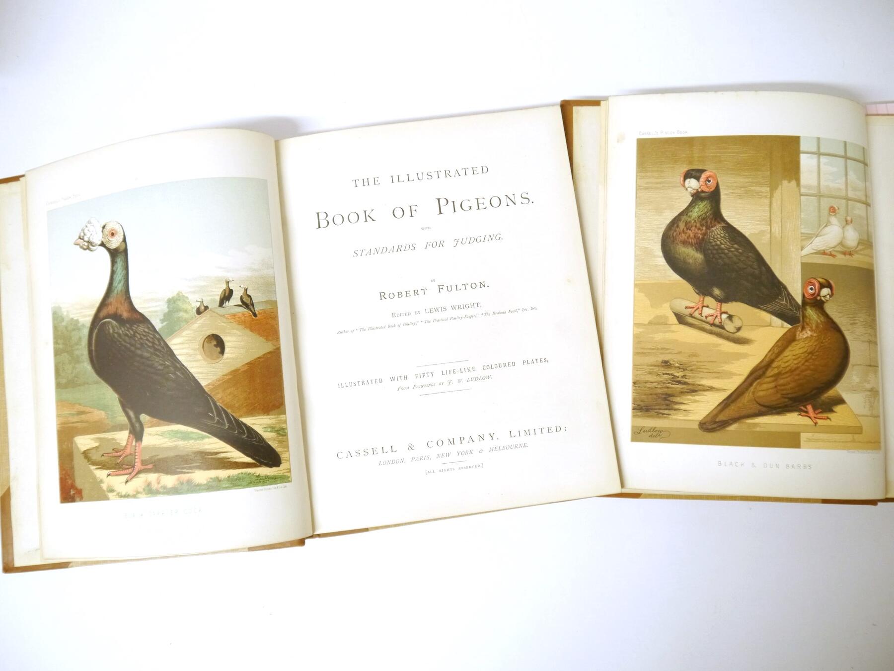 Robert Fulton: 'The Illustrated Book of Pigeons. With Standards for Judging', edited Lewis Wright, Cassell & Company, circa 1881, 50 coloured lithograph plates as called for after J.W. Ludlow ('African Owls' plate facing p.299 with closed tear to fore edge just encroaching into image, else plates all VGC/fine condition), rebound in 2 volumes, 4to, old half calf gilt; plus Watmough: 'Pigeon Keeping for Novices', circa 1961, 3rd edition, original printed wraps (3)