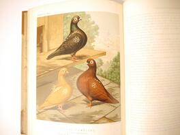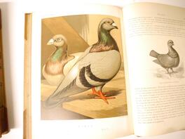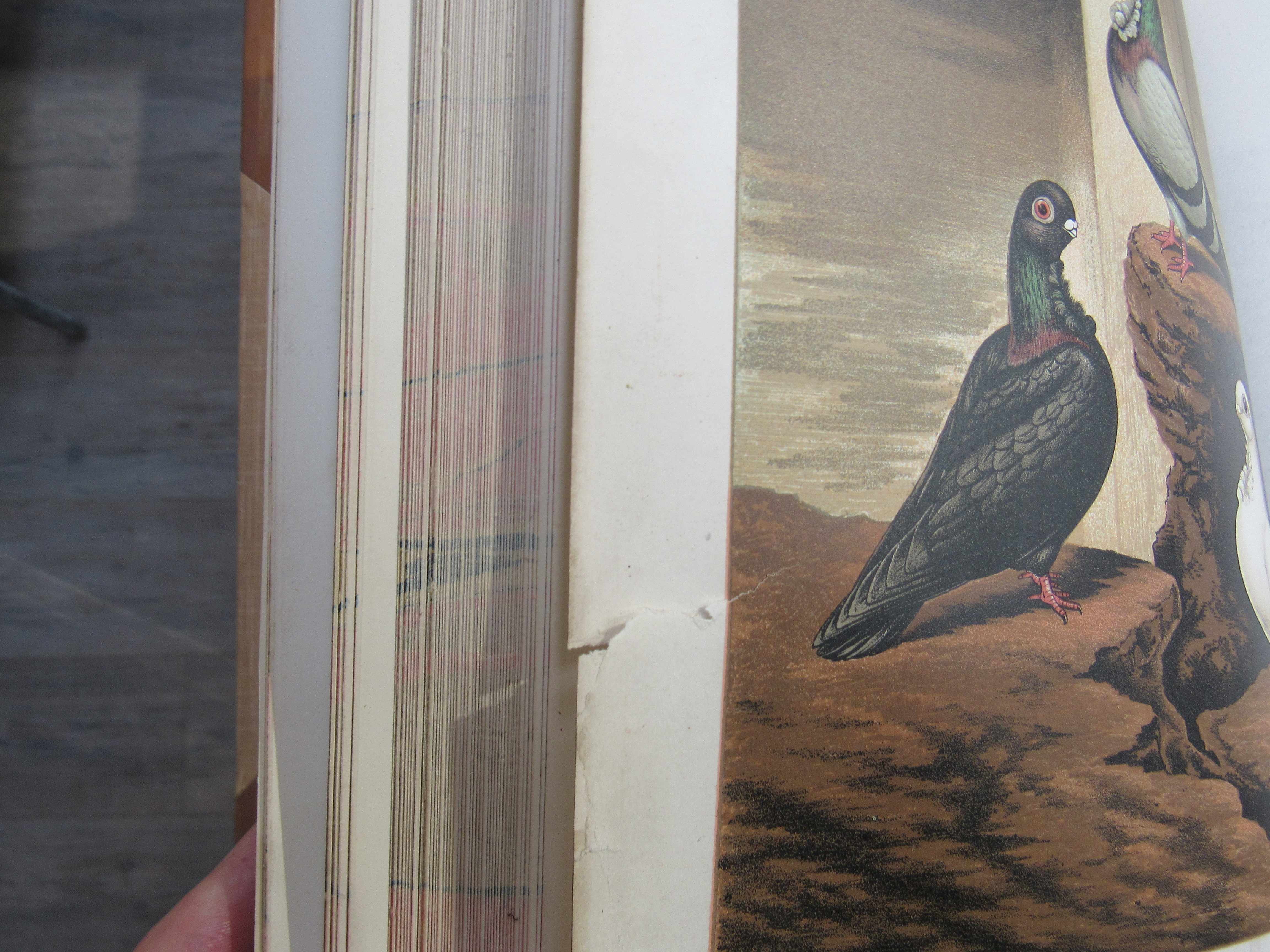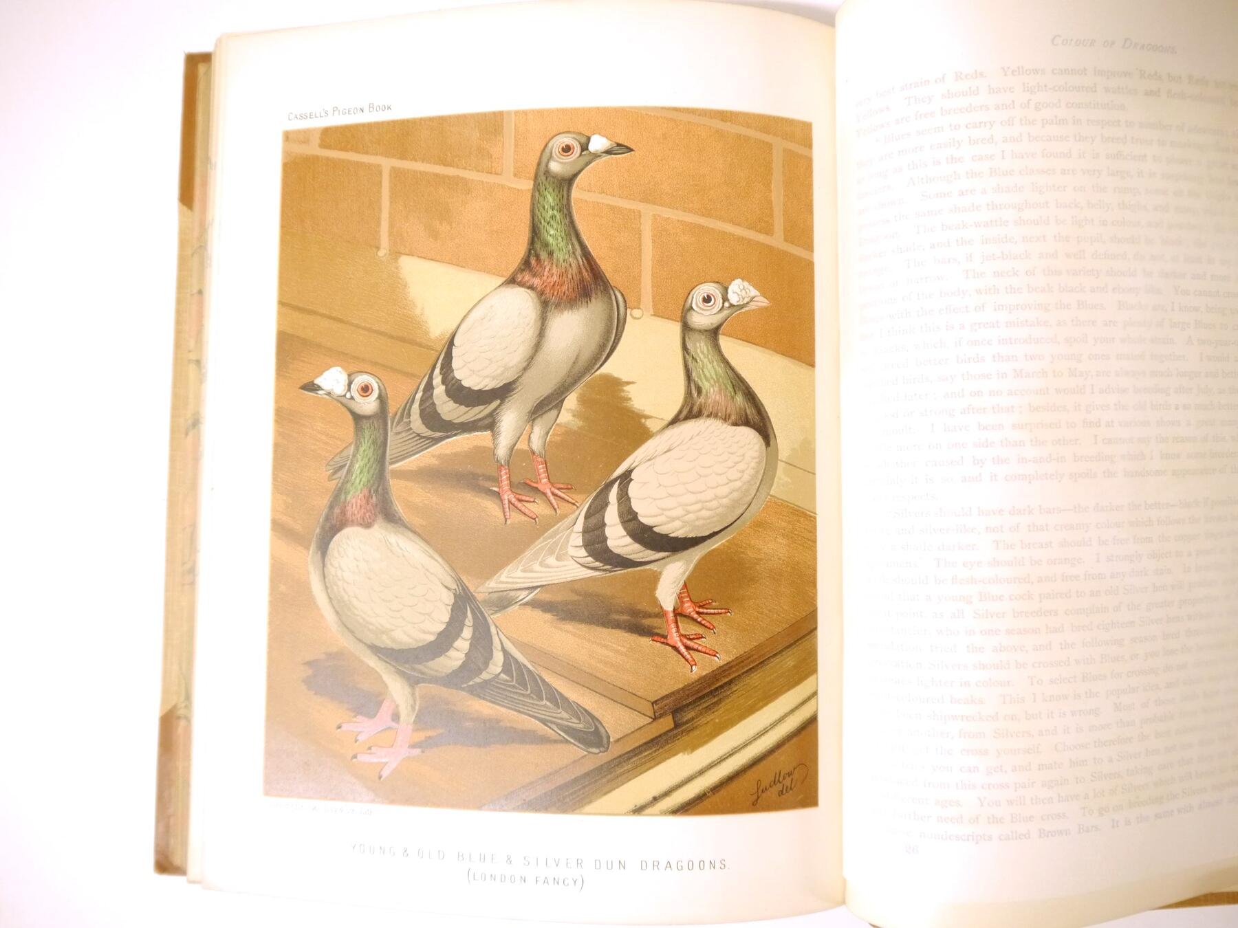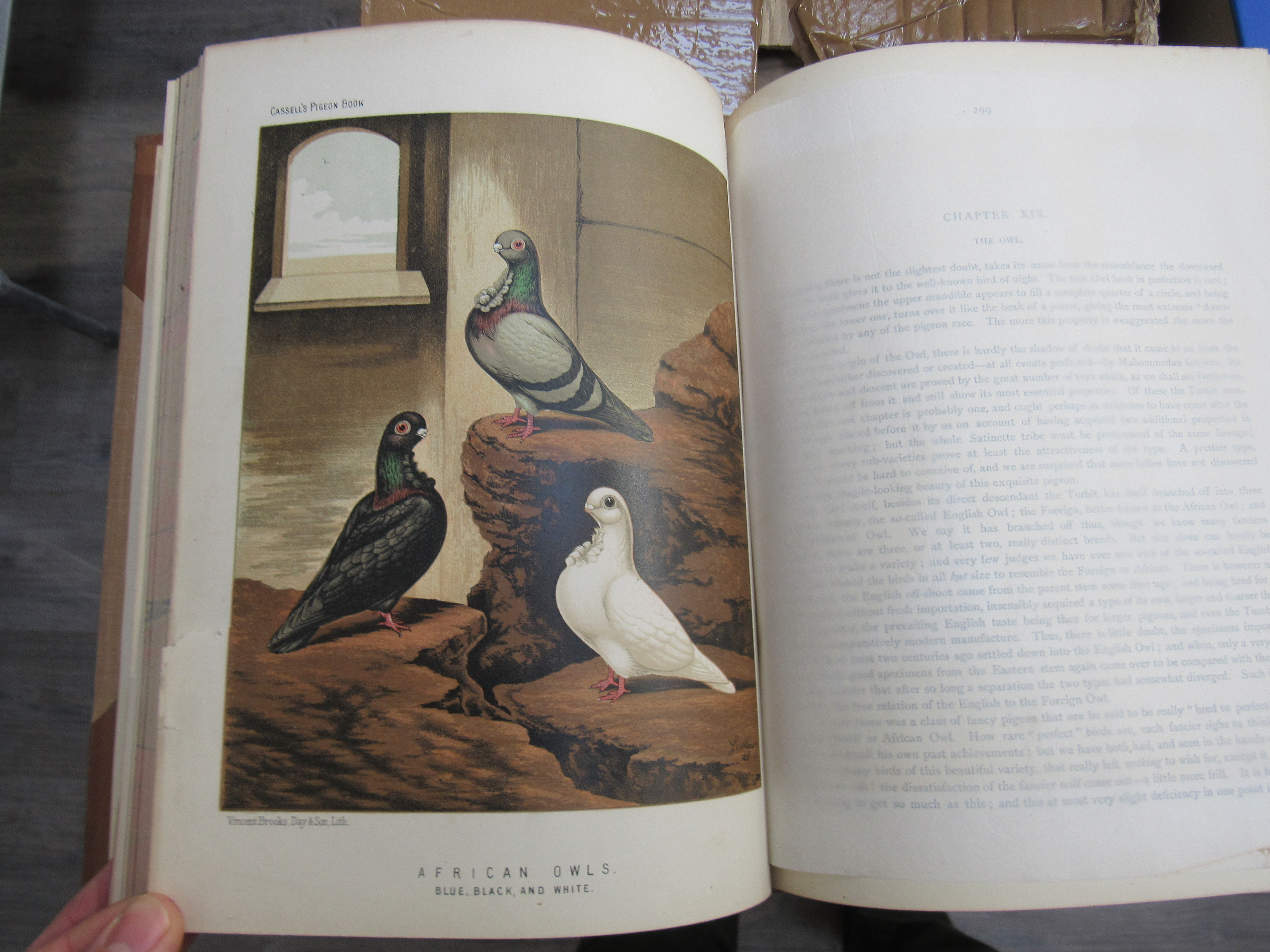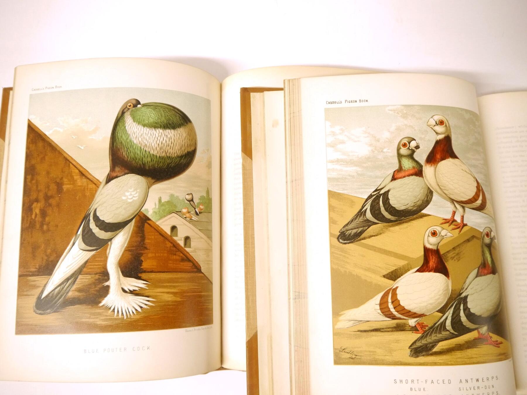 Robert Fulton: 'The Illustrated Book of Pigeons. With Standards for Judging', edited Lewis Wright, Cassell & Company, circa 1881, 50 coloured lithograph plates as called for after J.W. Ludlow ('African Owls' plate facing p.299 with closed tear to fore edge just encroaching into image, else plates all VGC/fine condition), rebound in 2 volumes, 4to, old half calf gilt; plus Watmough: 'Pigeon Keeping for Novices', circa 1961, 3rd edition, original printed wraps (3)