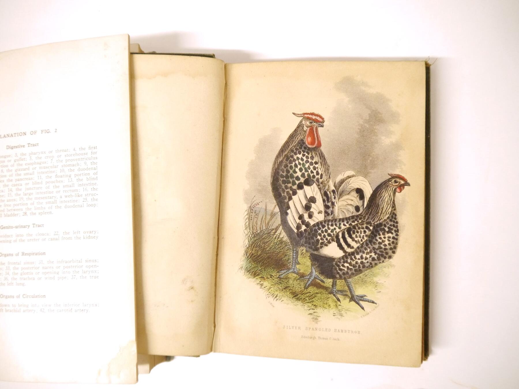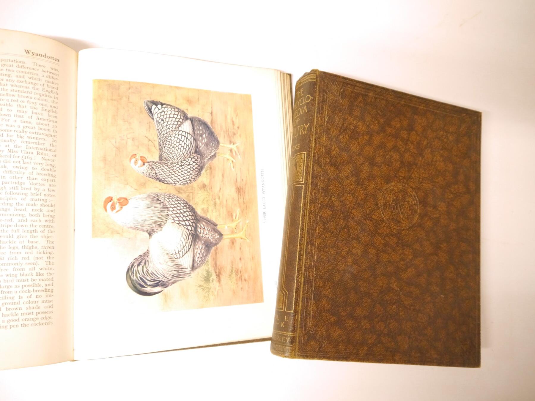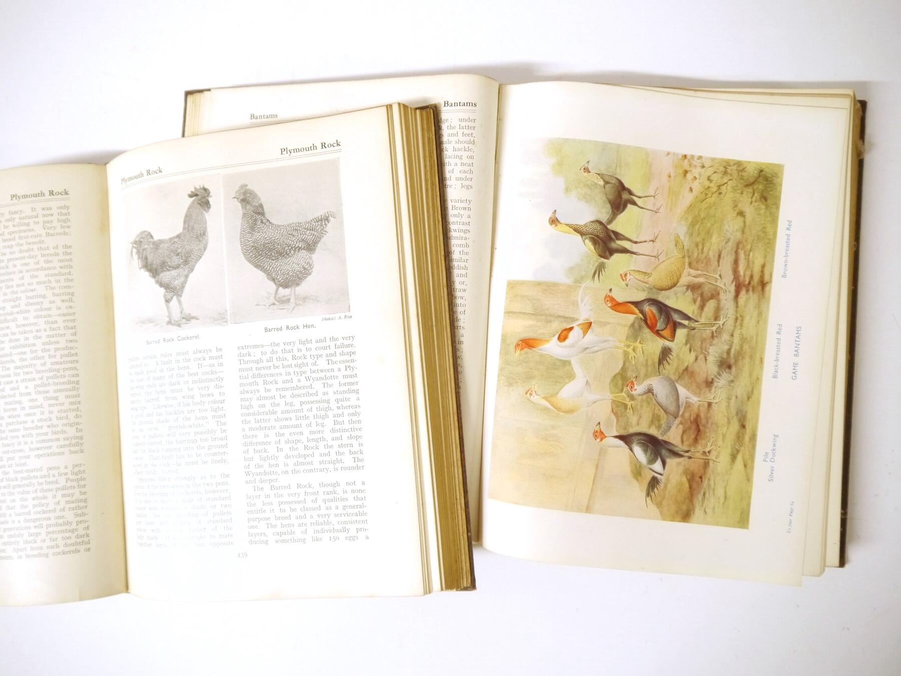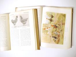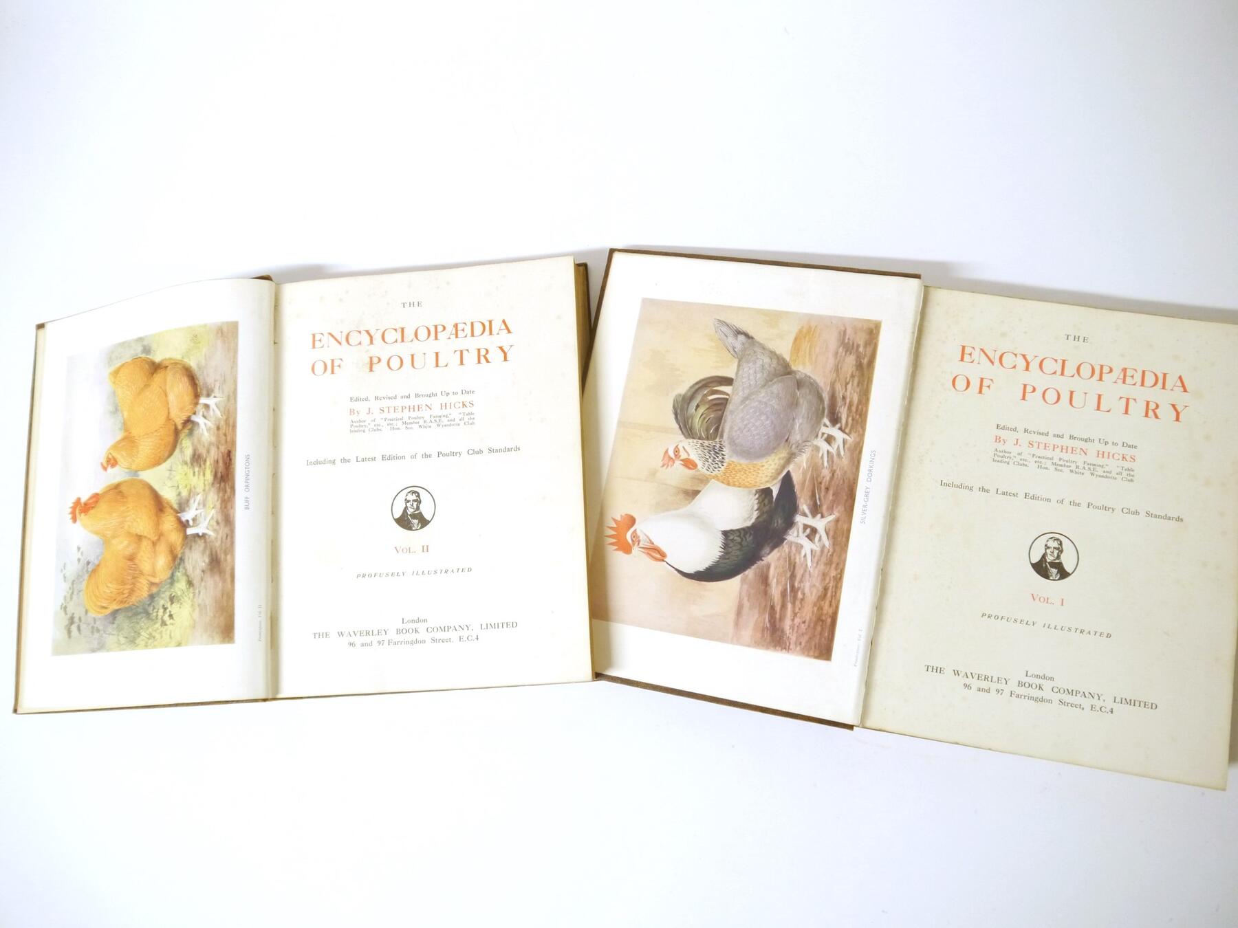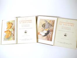 Mrs Fergusson Blair: 'The Henwife. Her Own Experience in Her Own Poultry-yard', Edinburgh, Thomas C. Jack, 1862, 3rd edition, 10 hand coloured engraved plates after Harrison Weir as called for, xxiii,218,[4]pp, original cloth gilt (worn & soiled), inner joints weak, top edge gilt; J. Stephen Hicks: 'The Encyclopaedia of Poultry', London, Waverley, [nd], circa 1920's, 2 volumes, 8 coloured plates + numerous ills in text as called for, original cloth gilt; plus Kaupp 'Poultry Diseases', 1929, 5th edition revised and enlarged, original cloth, and Atkinson 'The Old English Game Fowl', [1960], 5th edition, original wraps (5)