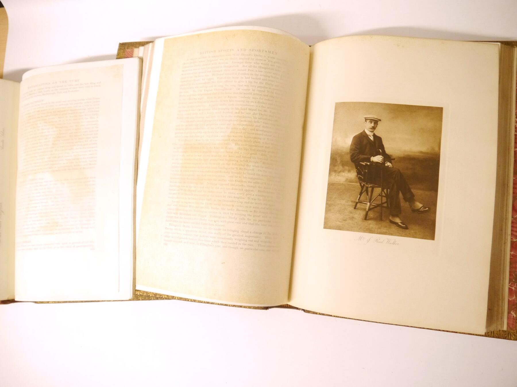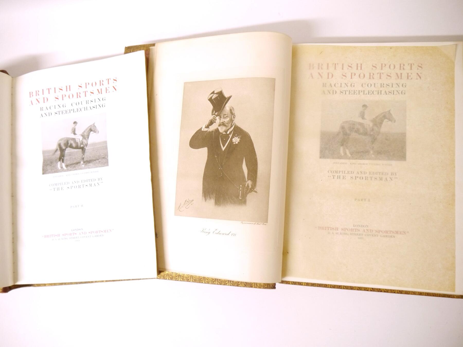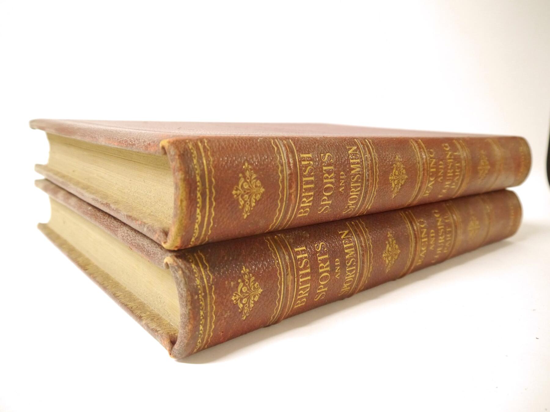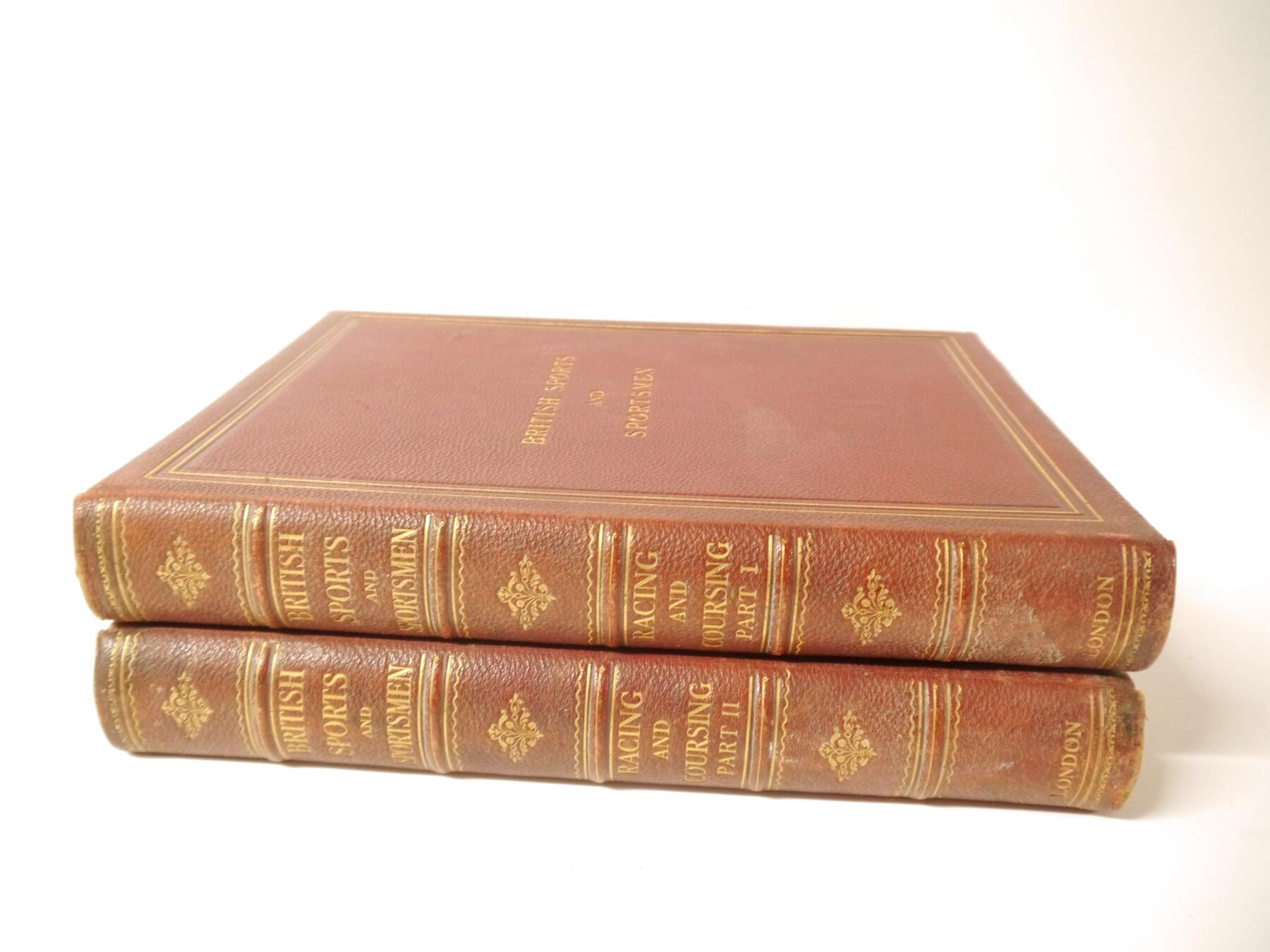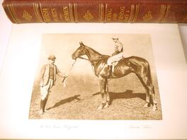 'British Sports and Sportsmen. Racing Coursing and Steeplechasing. Two Volumes', London, 1911, limited edition, (600/1,000), numbered, profusely illustrated throughout including tissue guarded photogravures, large folio, original full deep red morocco gilt, inner dentelles gilt, all edges gilt (2)