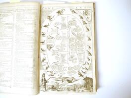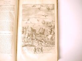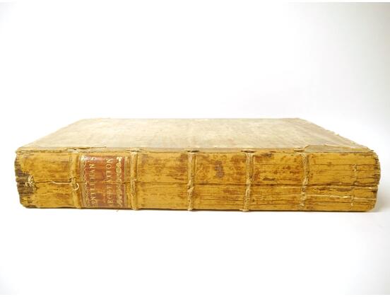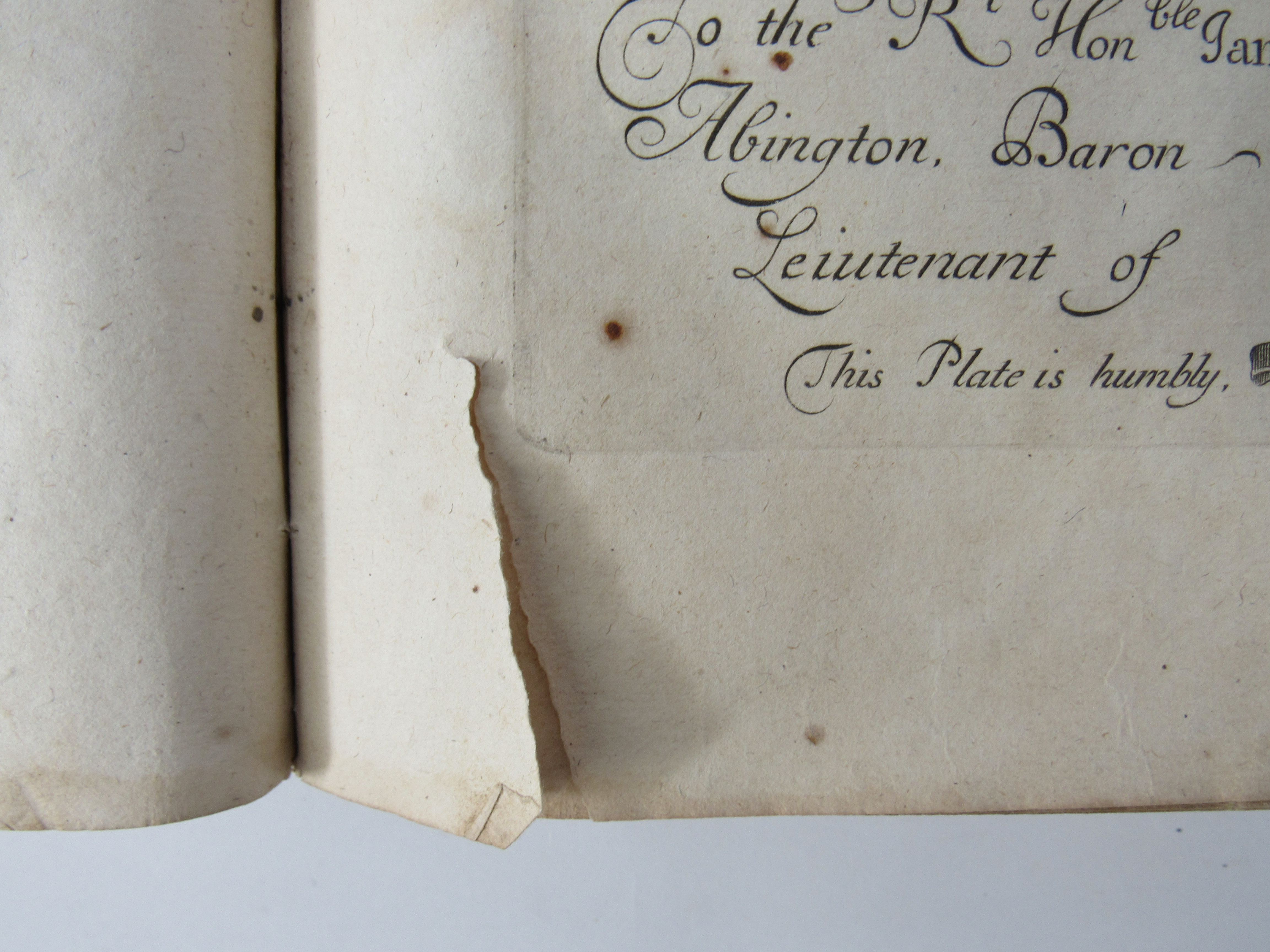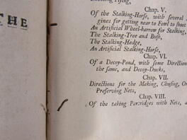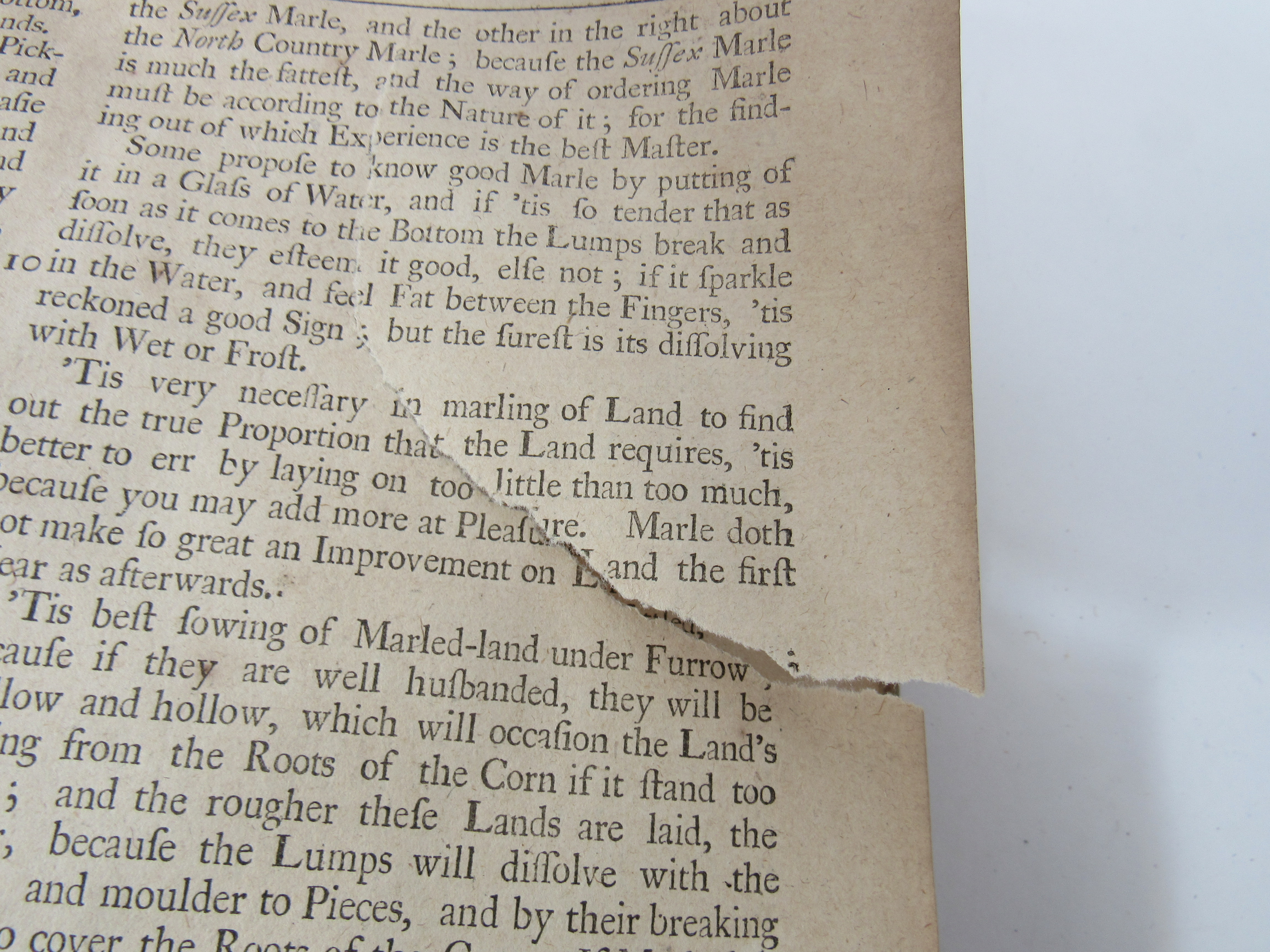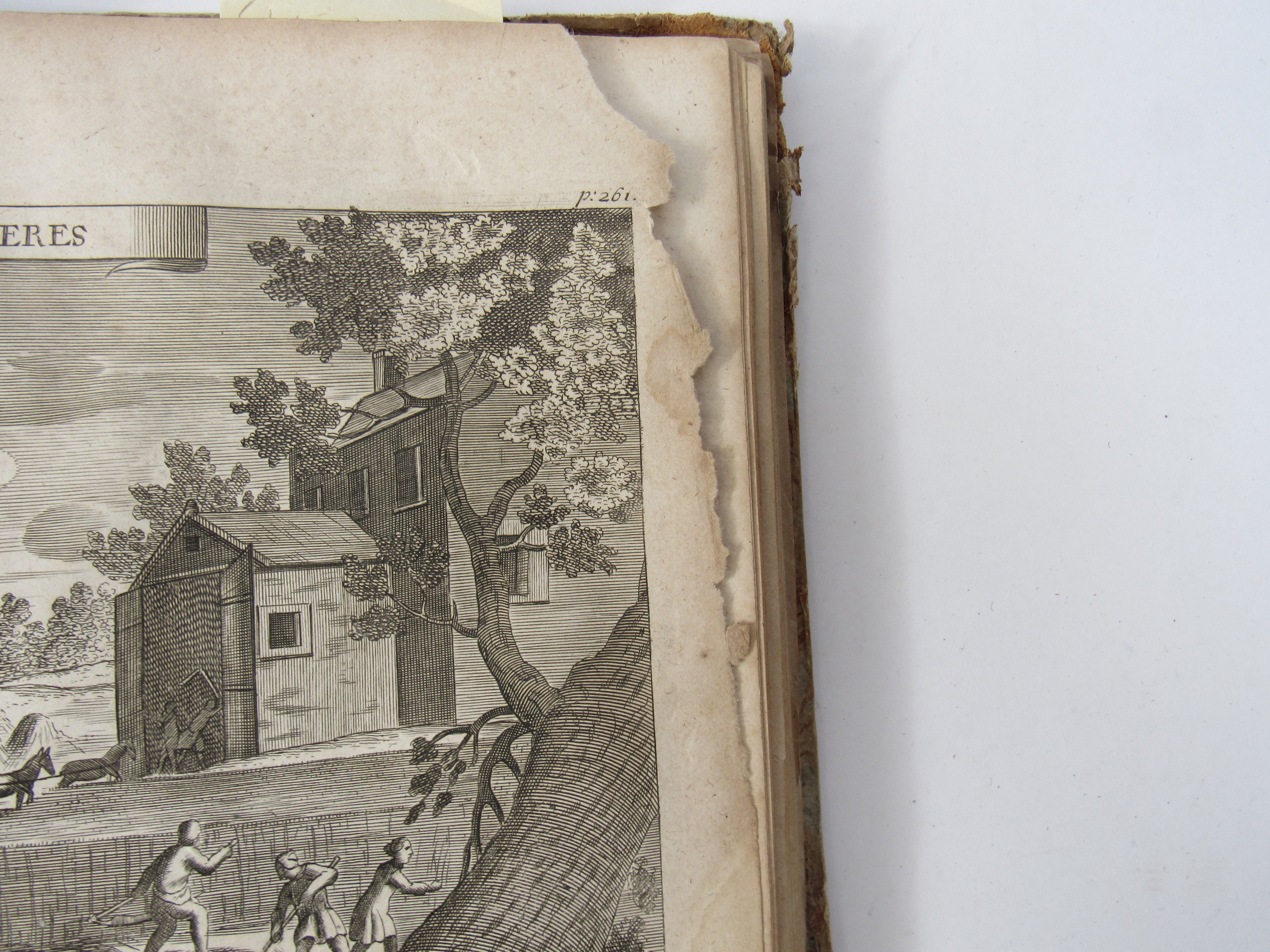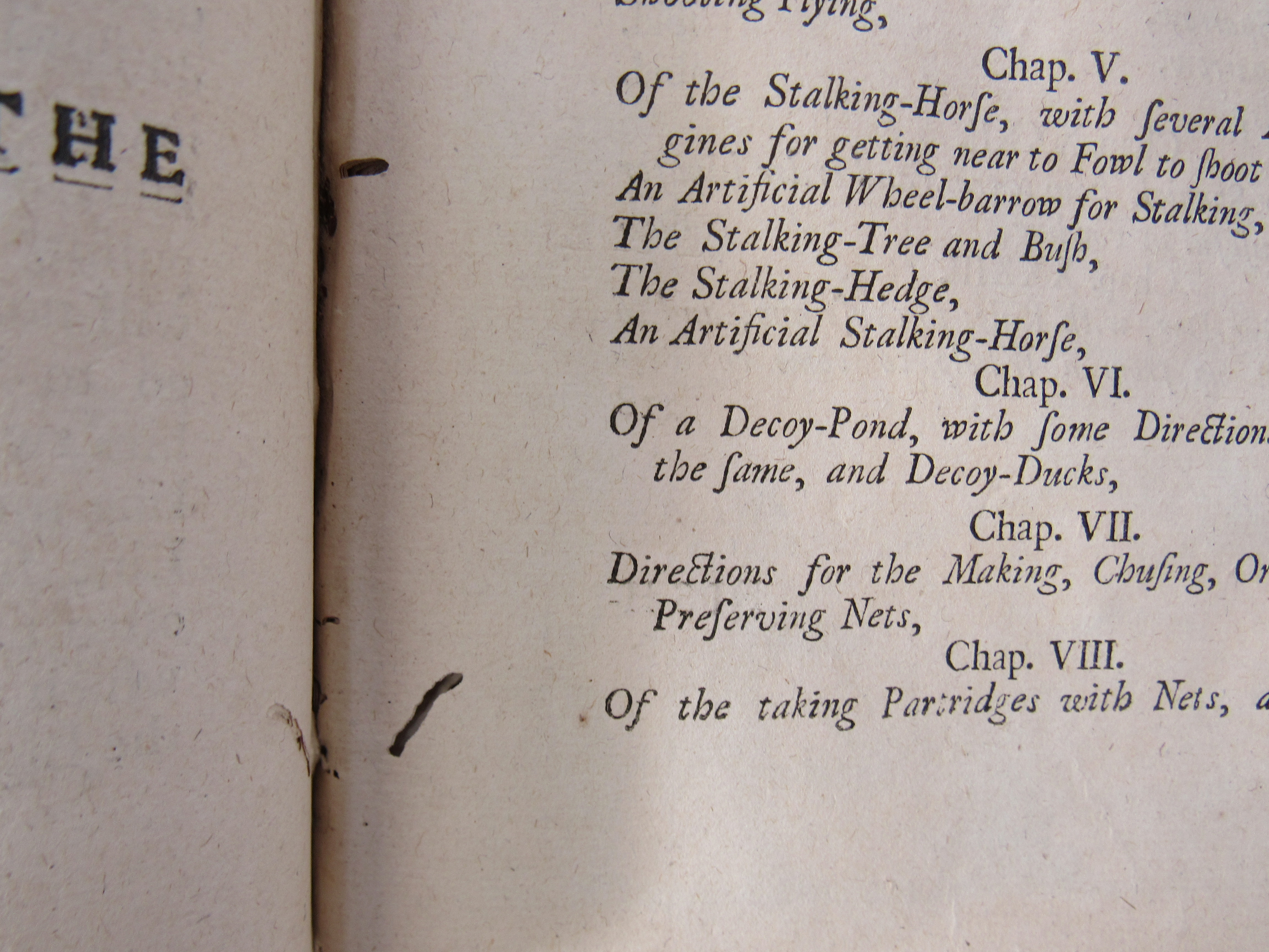 Nicholas Cox: 'The Gentleman's Recreation: In Three Parts. The First Part contains...Liberal Arts and Sciences, &c. The Second treats of Horsemanship, Hawking, Hunting, Fowling, Fishing, Agriculture, &c...The Third is...Forest, Chace, and Game-Laws...', London, R. Bonwicke, 1710, 2nd edition corrected, a/f, sold as seen with all faults and not subject to return, added engraved title page by Richard Blome + 78 full page engraved illustrations (of which 2 folding), definitely lacking a plate, and a few leaves with closed tears, marginal losses, worm damage, plates depicting horse racing, falconry, partridge, pheasant and brook hawking, stag and fox hunting, coursing, various stalking, shooting, fowling, fishing etc, folio, contemporary quarter calf very worn, inner joints split, top board detached (but present)
