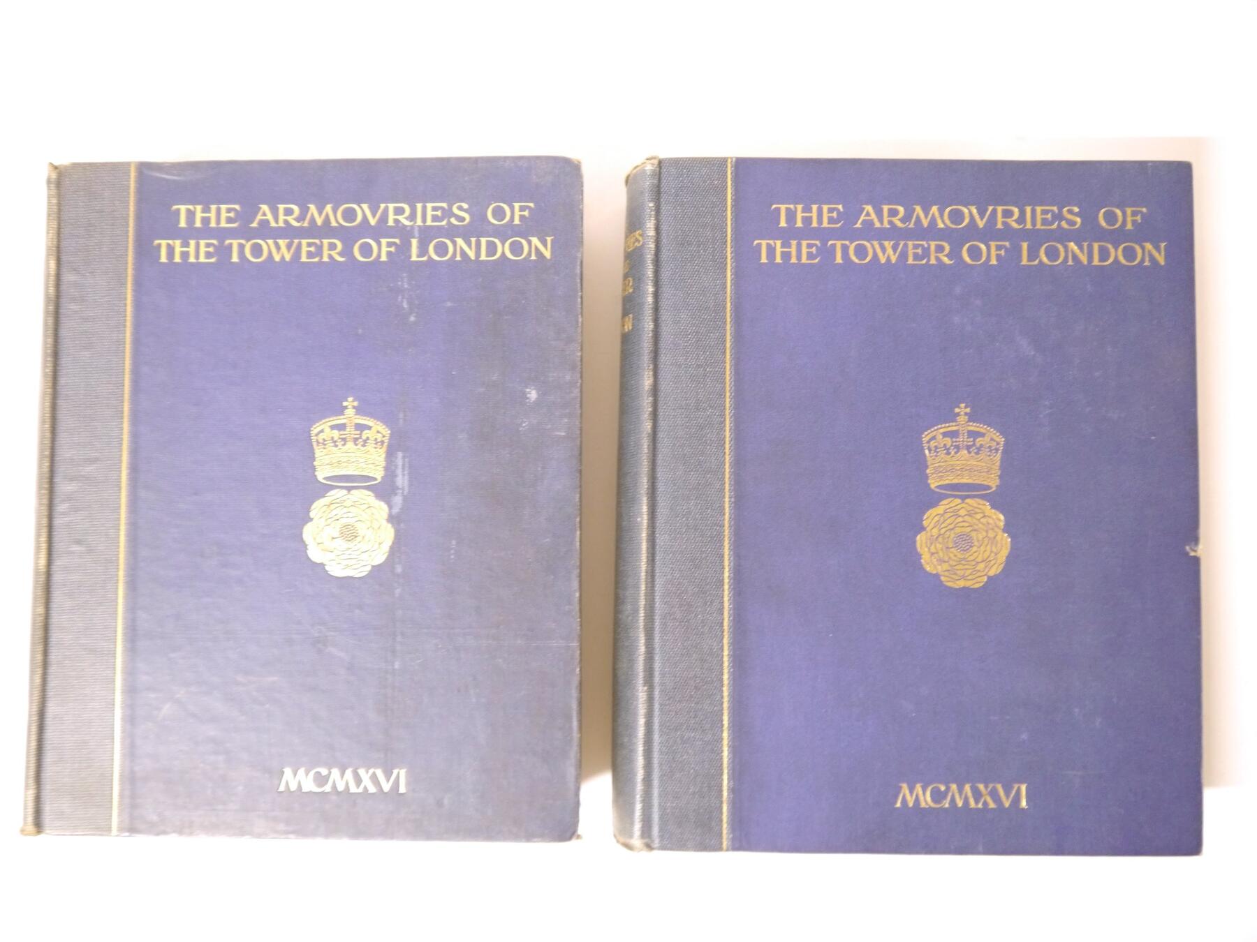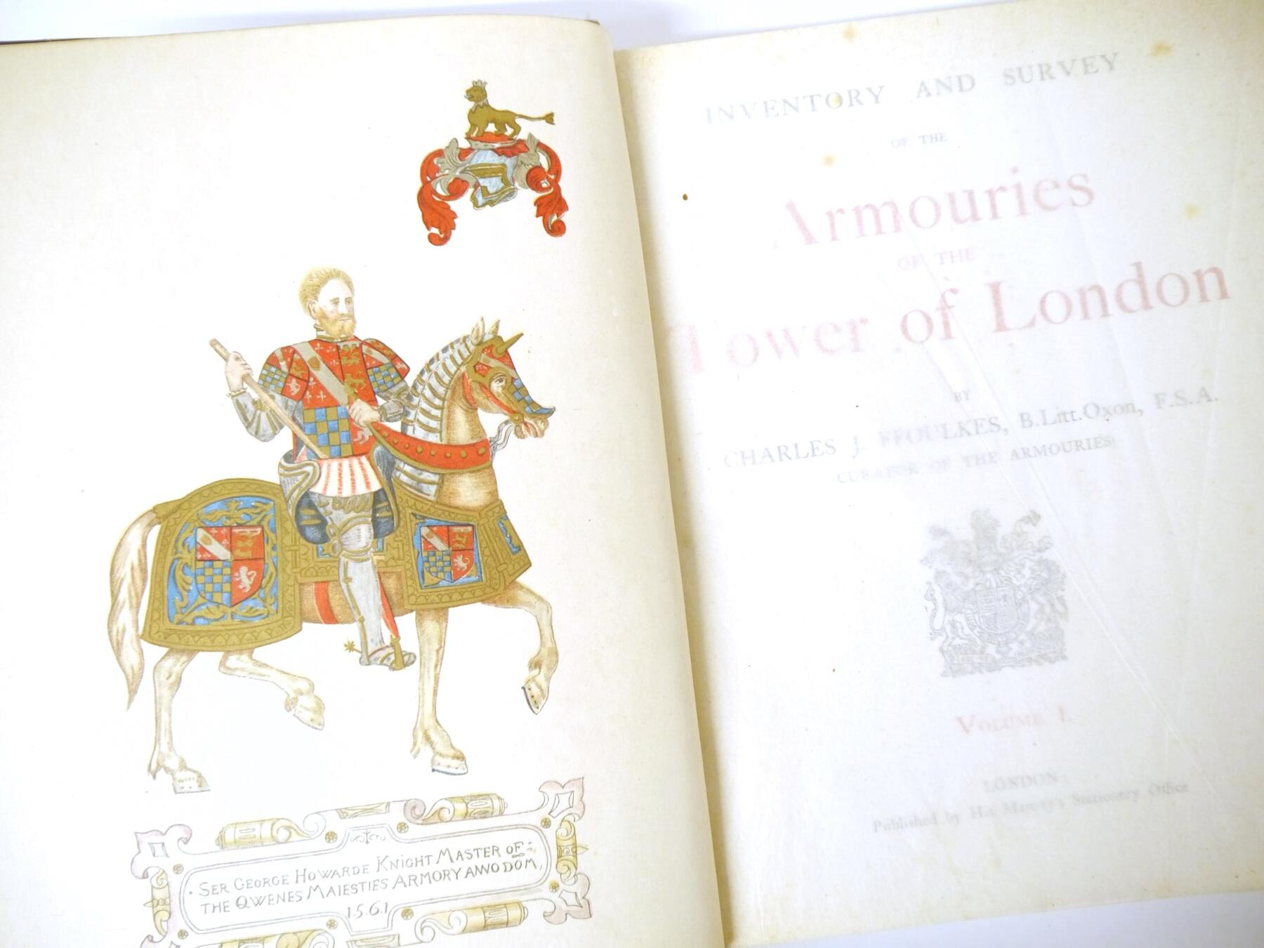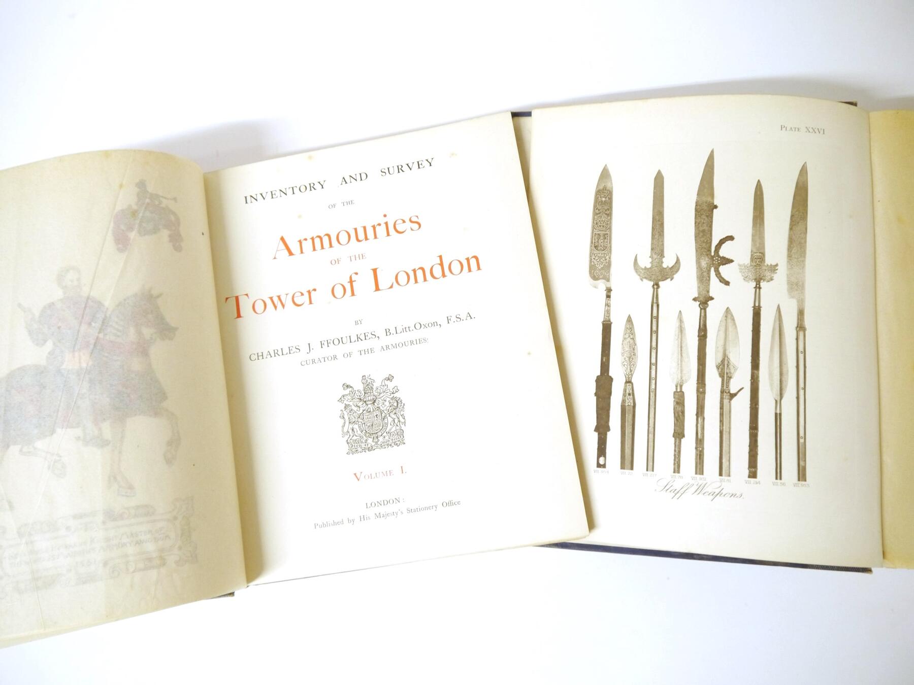 Charles J. Ffoulkes: 'Inventory and Survey of The Armouries of the Tower of London', [1916], 1st edition, 2 volumes, 38 plates as called for, volume 2 dedicated to Offensive Arms including Boar Spears, Crossbows, Rifles etc, 4to, original cloth gilt, top edges gilt (2)