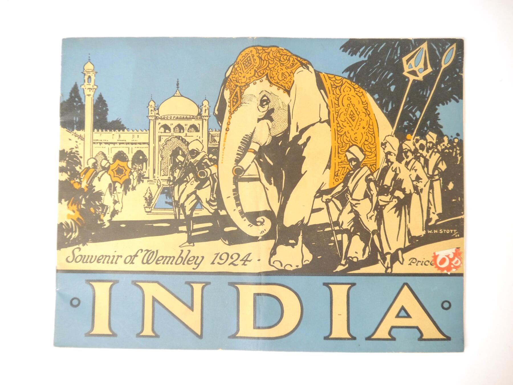 A 1924 Wembley Exhibition Souvenir Booklet 'India...Souvenir of the Indian Pavilion and its Exhibits - British Empire Exhibition Wembley 1924', 32pp, plan & illustrations throughout, oblong, original pictorial coloured wraps
