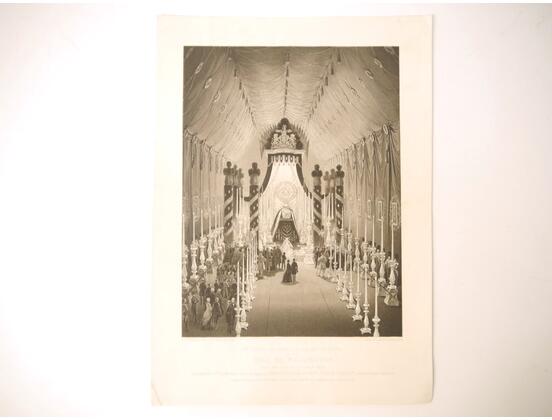 'The Lying in State at Chelsea Hospital of the Duke of Wellington. From the 11th to the 17th Novr. 1852'. 1852 death of Duke of Wellington lithograph print, published by Day & Son and Ackermann, printed area approx 32 x 21cm.