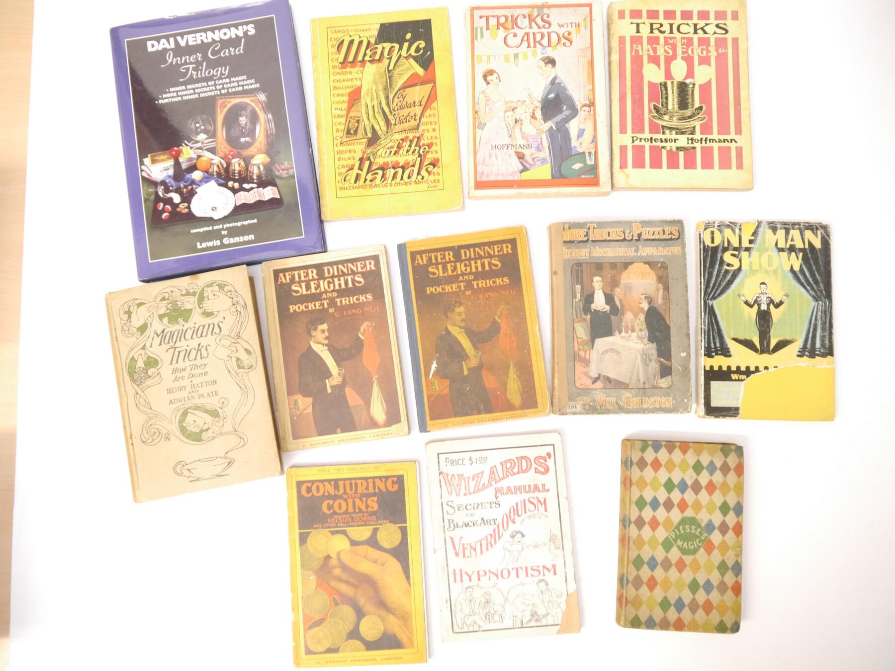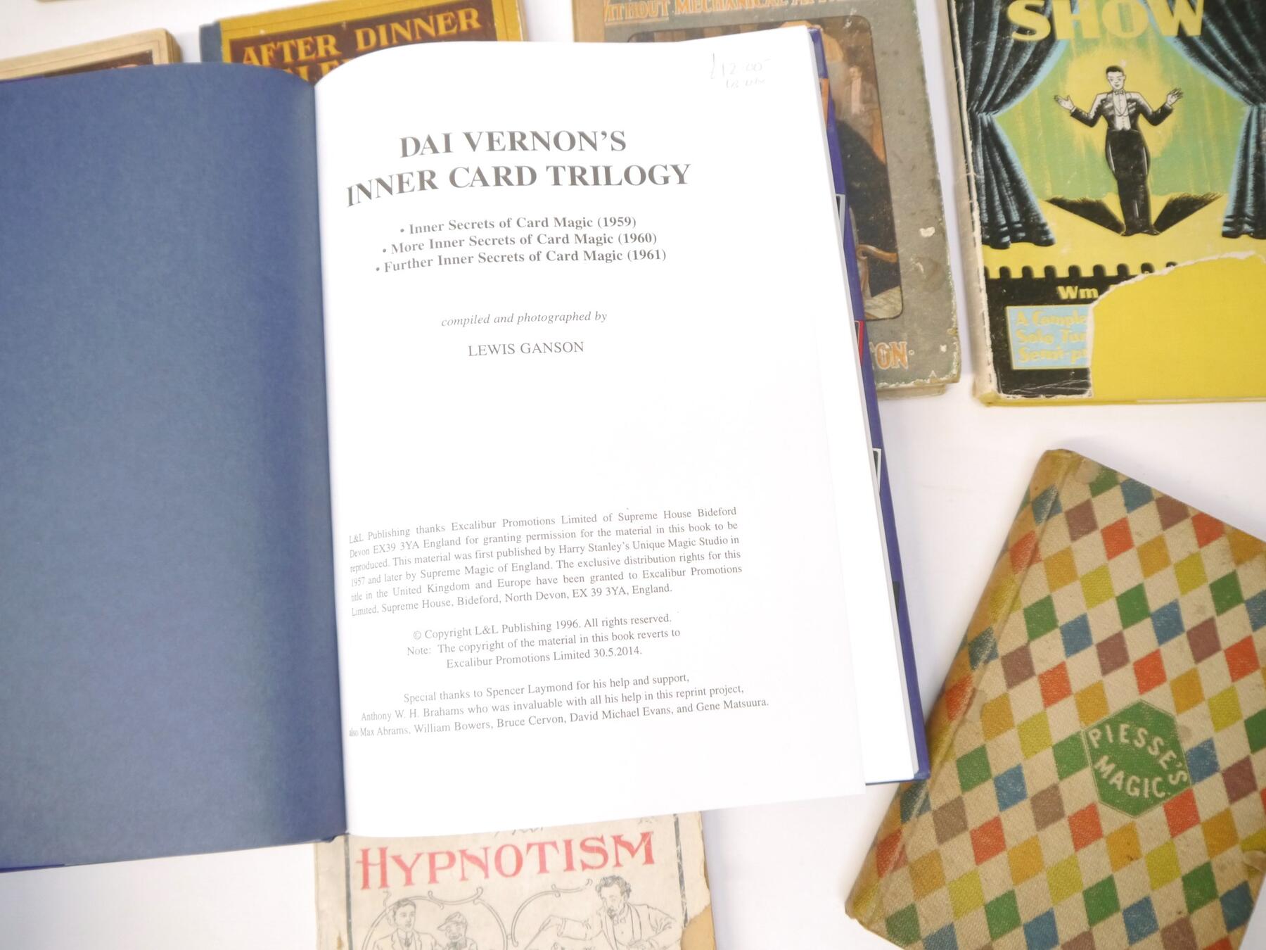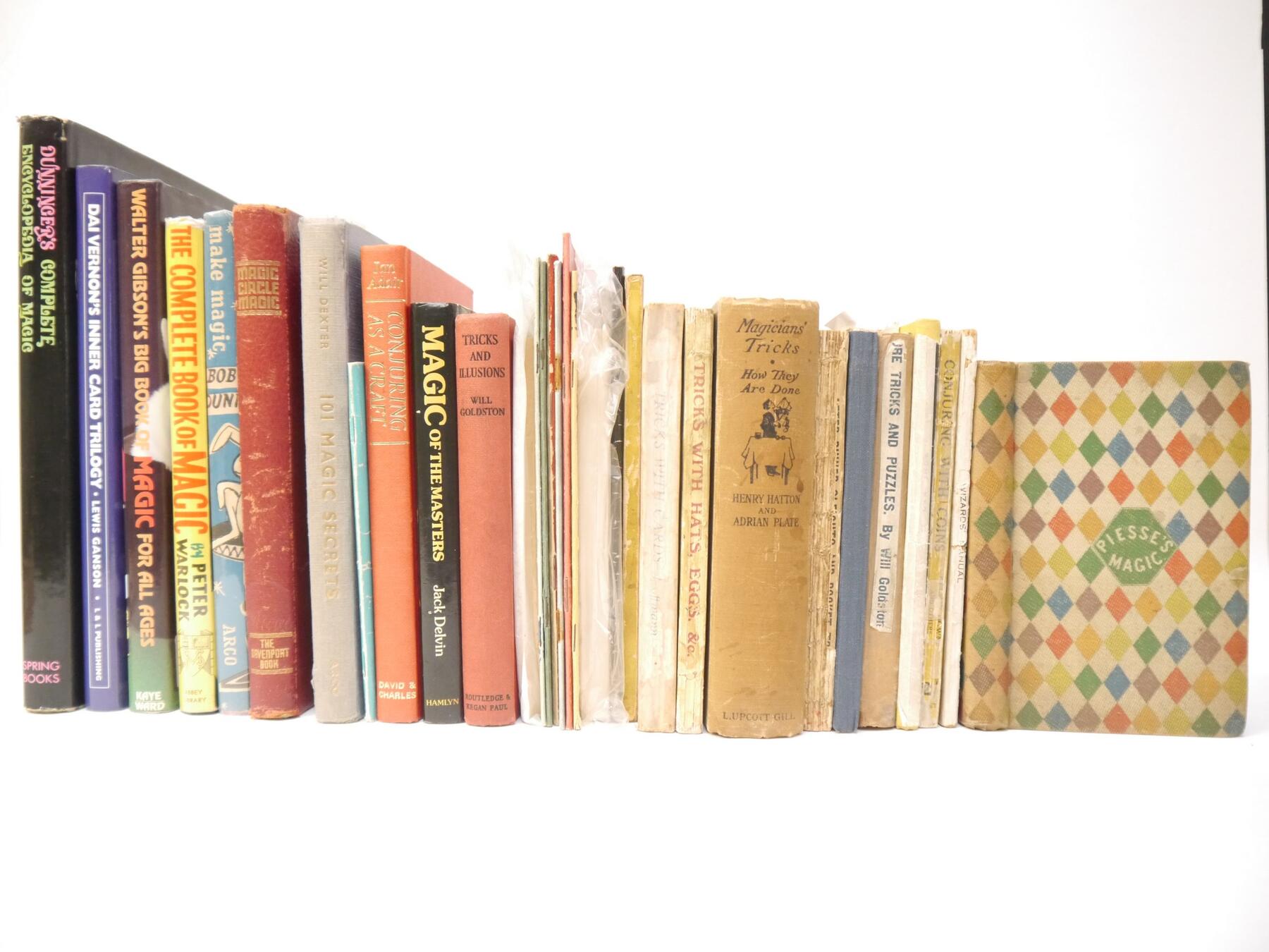 A collection of 33 books and booklets on Magic, Conjuring, Card Tricks etc, including Lewis Ganson: 'Dai Vernon's Inner Card Trilogy. Inner Secrets of Card Magic - More Secrets of Card Magic - Further Secrets of Card Magic', Bideford, L & L, 1996, 1st thus, original leatherette, dust wrapper; G.W. Septimus Piesse: 'Chymical, Natural and Physical Magic', London, Longman, Brown et al, 1859, 2nd edition, ''hidden'' portrait frontis (partially revealed by heat, as caption suggests, but with some heat damage), original multi coloured diamond patterned cloth; Professor Svengarro: 'Wizards' Manual', Baltimore, Ottenheimer, circa 1910, original wraps (worn); Hatton & Plate: 'Magicians' Tricks: How They are Done', London, Upcott Gill, [nd], c.1910, original pictorial cloth; Professor Hoffmann [i.e. Angelo John Lewis], 2 titles: 'Tricks with Eggs, Hats, Etc', London, Routledge, circa 1911, original pictorial card wraps (worn), 'Tricks With Cards', Routledge, circa 1920's, original pictorial card wraps, spine reinforced with tape; Edward Victor: 'The Magic of the Hands', 1942, 2nd edition, original pictorial wraps; plus others Will Goldston, C. Lang Neil etc etc (33)