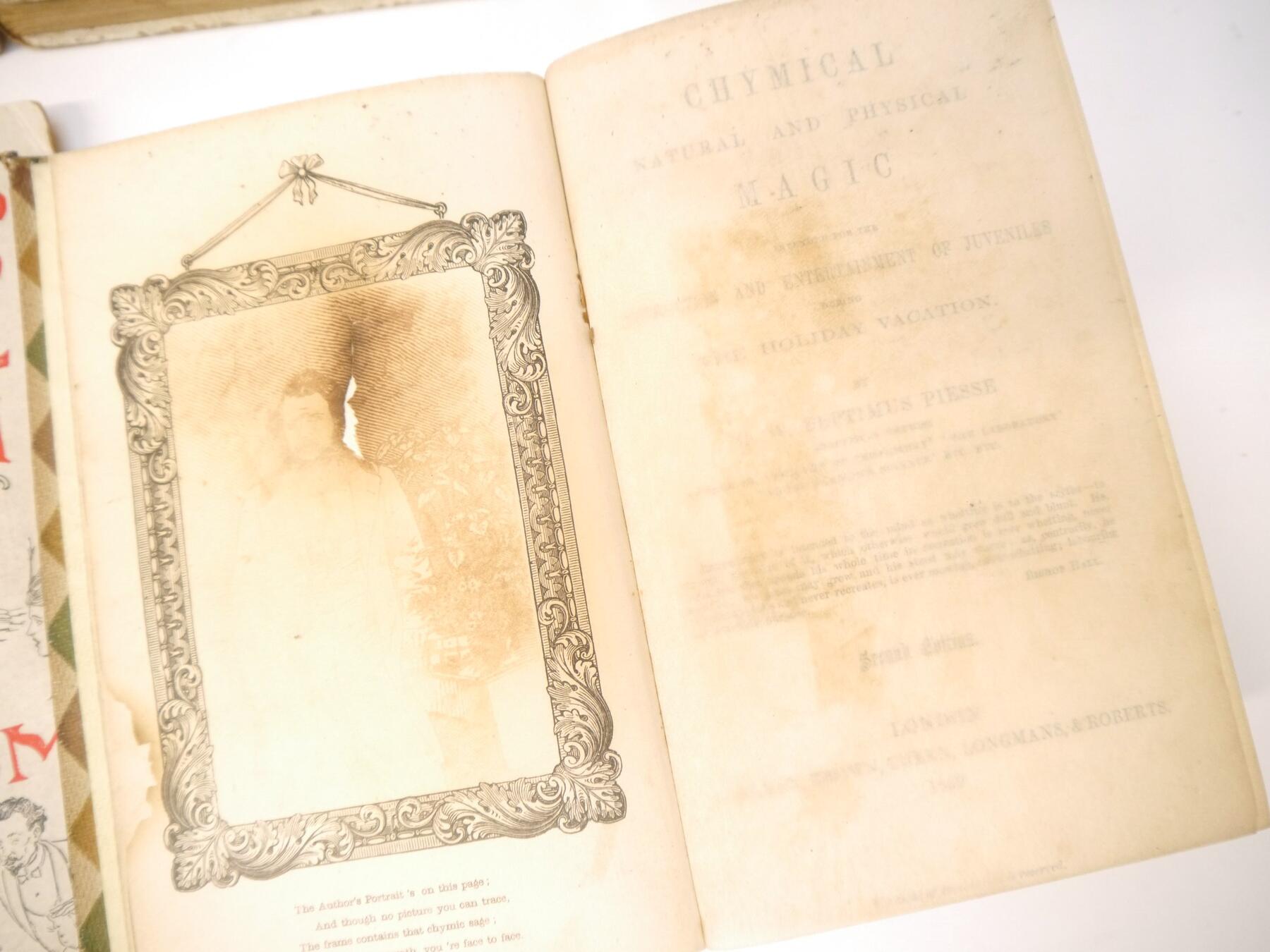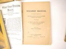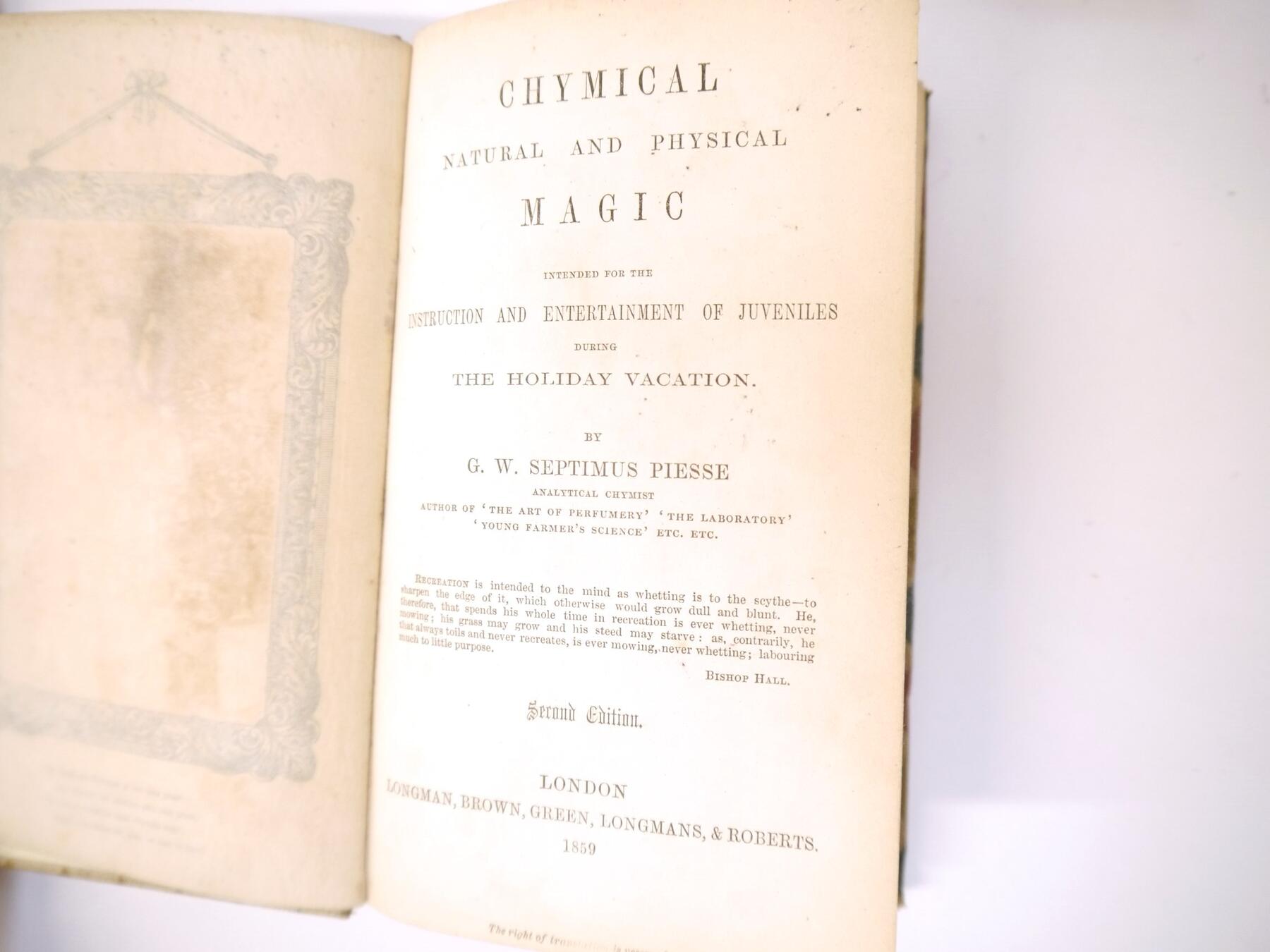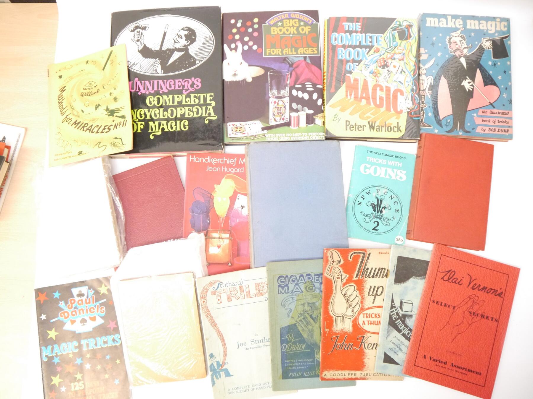 A collection of 33 books and booklets on Magic, Conjuring, Card Tricks etc, including Lewis Ganson: 'Dai Vernon's Inner Card Trilogy. Inner Secrets of Card Magic - More Secrets of Card Magic - Further Secrets of Card Magic', Bideford, L & L, 1996, 1st thus, original leatherette, dust wrapper; G.W. Septimus Piesse: 'Chymical, Natural and Physical Magic', London, Longman, Brown et al, 1859, 2nd edition, ''hidden'' portrait frontis (partially revealed by heat, as caption suggests, but with some heat damage), original multi coloured diamond patterned cloth; Professor Svengarro: 'Wizards' Manual', Baltimore, Ottenheimer, circa 1910, original wraps (worn); Hatton & Plate: 'Magicians' Tricks: How They are Done', London, Upcott Gill, [nd], c.1910, original pictorial cloth; Professor Hoffmann [i.e. Angelo John Lewis], 2 titles: 'Tricks with Eggs, Hats, Etc', London, Routledge, circa 1911, original pictorial card wraps (worn), 'Tricks With Cards', Routledge, circa 1920's, original pictorial card wraps, spine reinforced with tape; Edward Victor: 'The Magic of the Hands', 1942, 2nd edition, original pictorial wraps; plus others Will Goldston, C. Lang Neil etc etc (33)