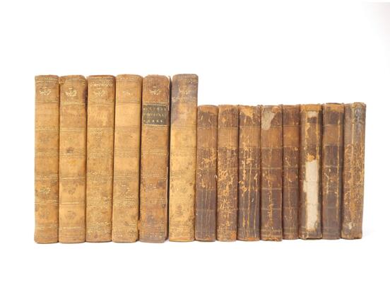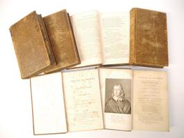 'Bell's Edition of Shakespeares's Plays', London, John Bell, general copper engraved titles dated 1774, eight volumes, contemporary calf (worn), plus John Milton ''The Poetical Works...'', London, J. Johnson et al, 1801, six volumes, volume 1 with engraved portrait frontis, volume 6 with engraved fascimile of 1655 portrait of Queen Christina of Sweden, contemporary speckled calf (worn) (14)