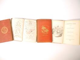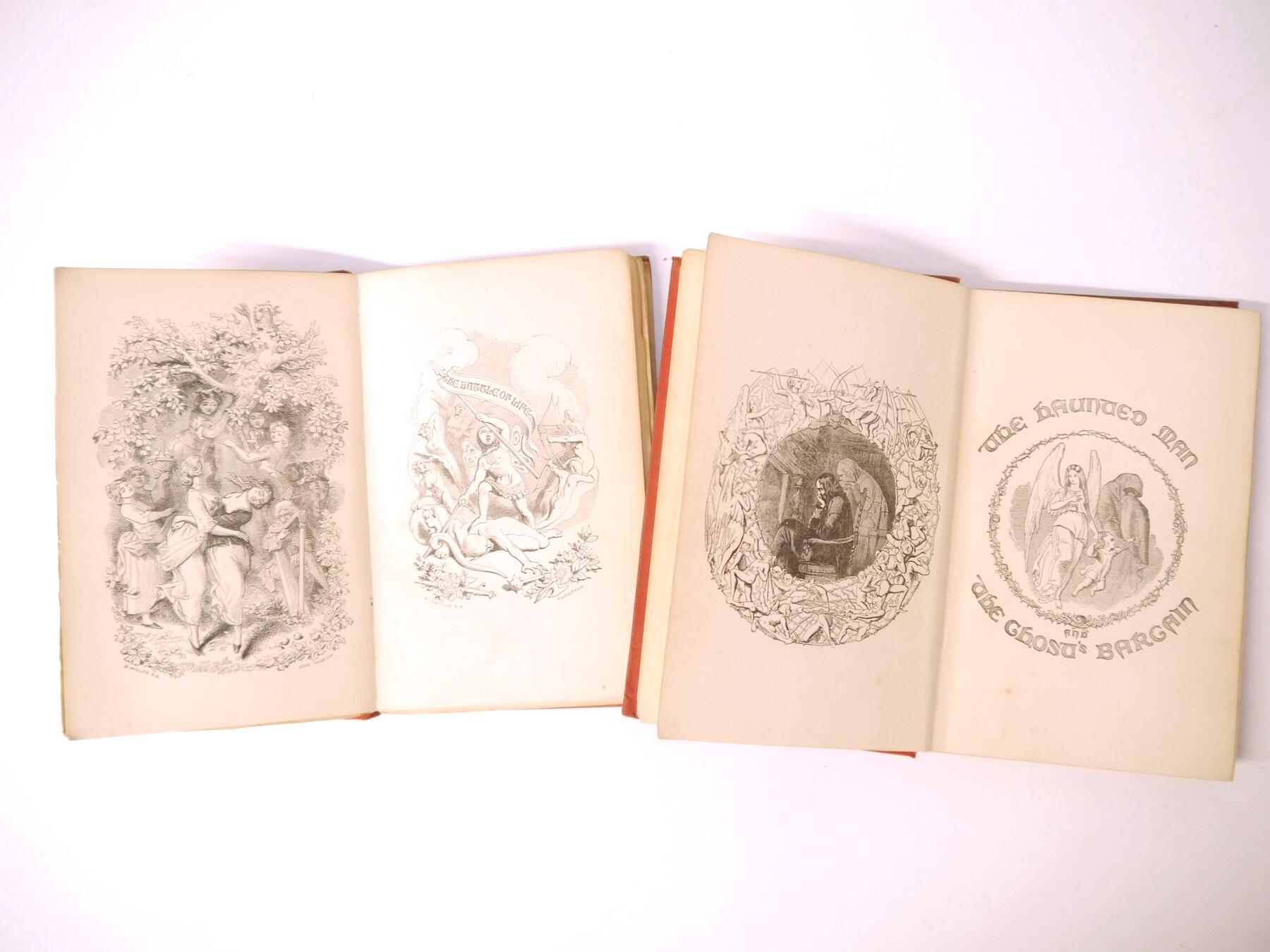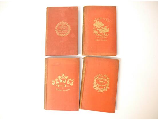 Charles Dickens, Christmas Books, 4 titles: 'A Christmas Carol', 'The Chimes', 'The Battle of Life', 'The Haunted Man and the Ghost's Bargain', London, Chapman & Hall, 1886-1887, stereotype edition, each with engraved frontises/added engraved title pages/illustrations as called for, each original decorative/pictorial cloth gilt (slightly worn and soiled, spines browned, 'A Christmas Carol' inner joints split) (4)