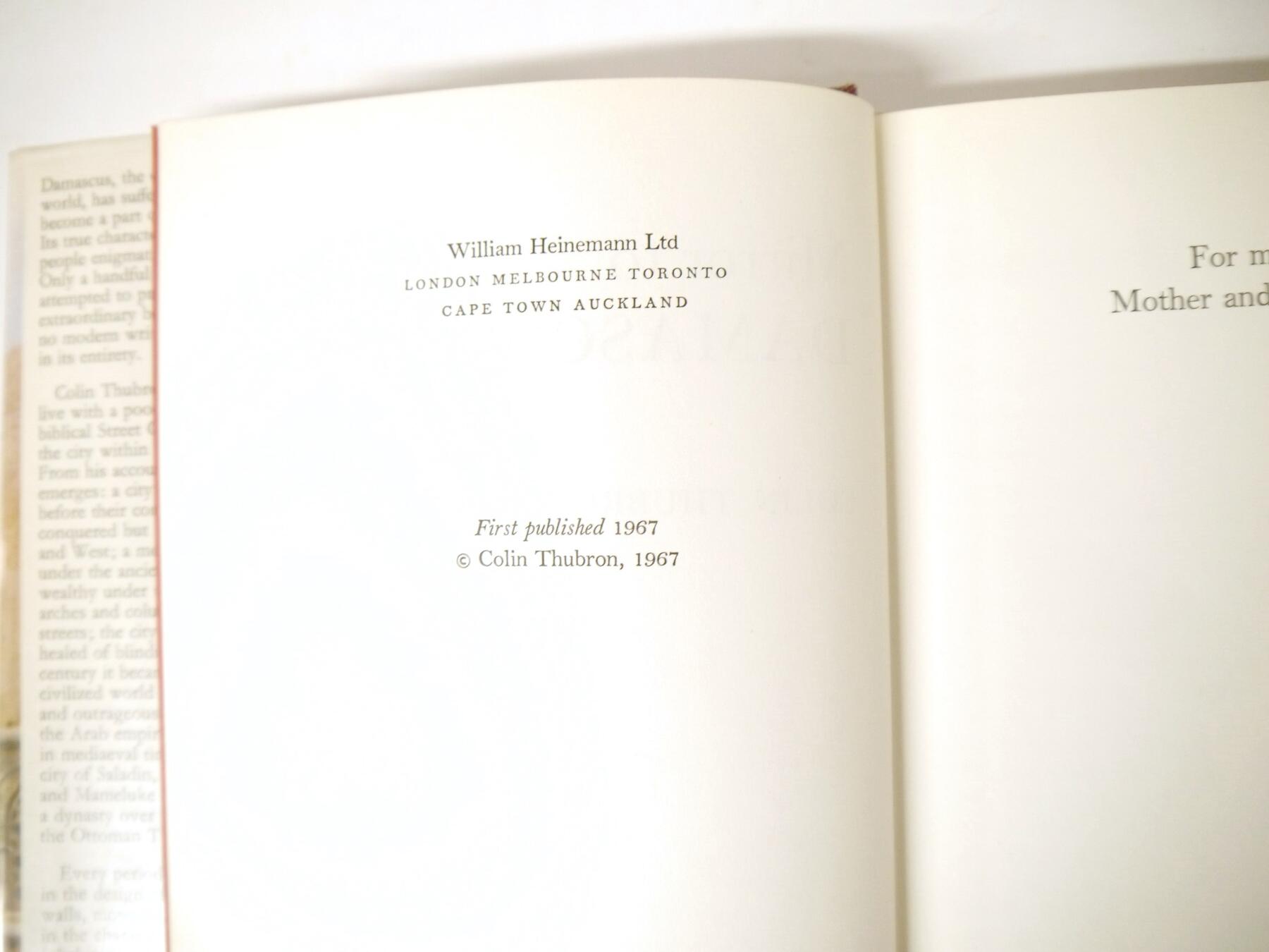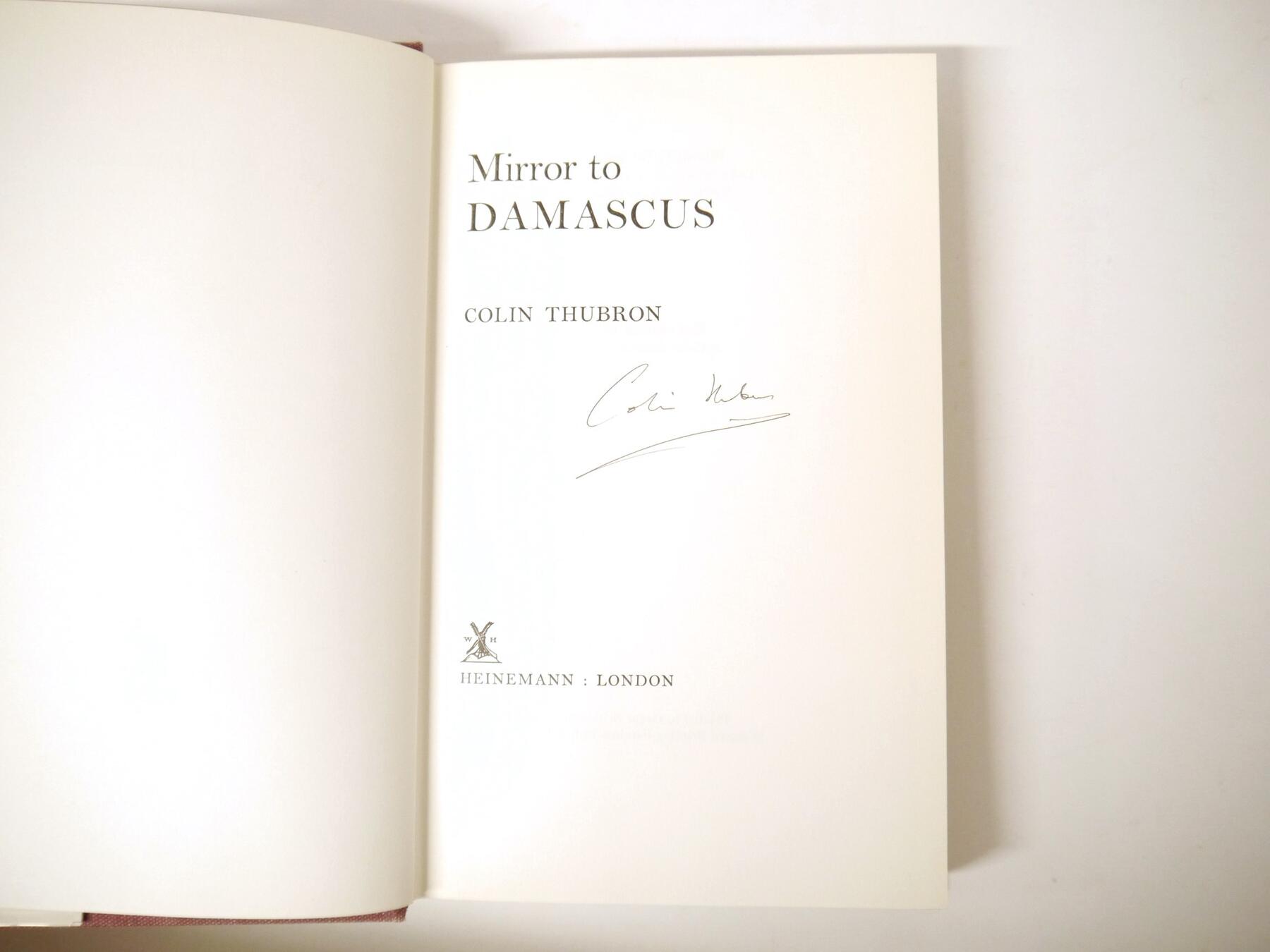 Colin Thubron: 'Mirror to Damascus', London, Heinemann, 1967, 1st edition, signed, original cloth gilt, dust wrapper (not price clipped, generally VGC). Author's first book, provenance Ian Latter