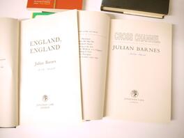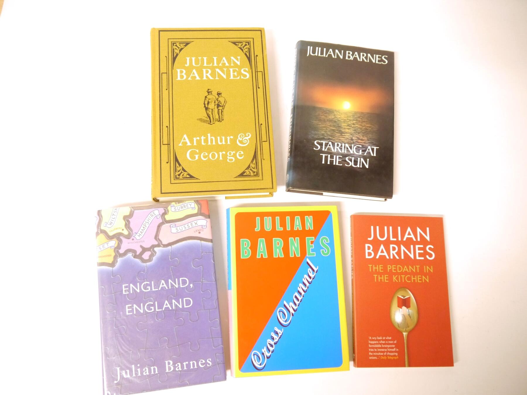 Julian Barnes, 5 titles: 'England, England', London, Cape, 1998, 1st edition, signed, original cloth, dust wrapper; 'Cross Channel', London, Cape, 1996, 3rd impression, signed, original cloth, dust wrapper; 'Staring at the Sun', London, Cape, 1986, 1st edition, original cloth, dust wrapper; 'Arthur & George', London, Cape, 2005, 1st edition, original cloth; plus 1 other, provenance Ian Latter (5)