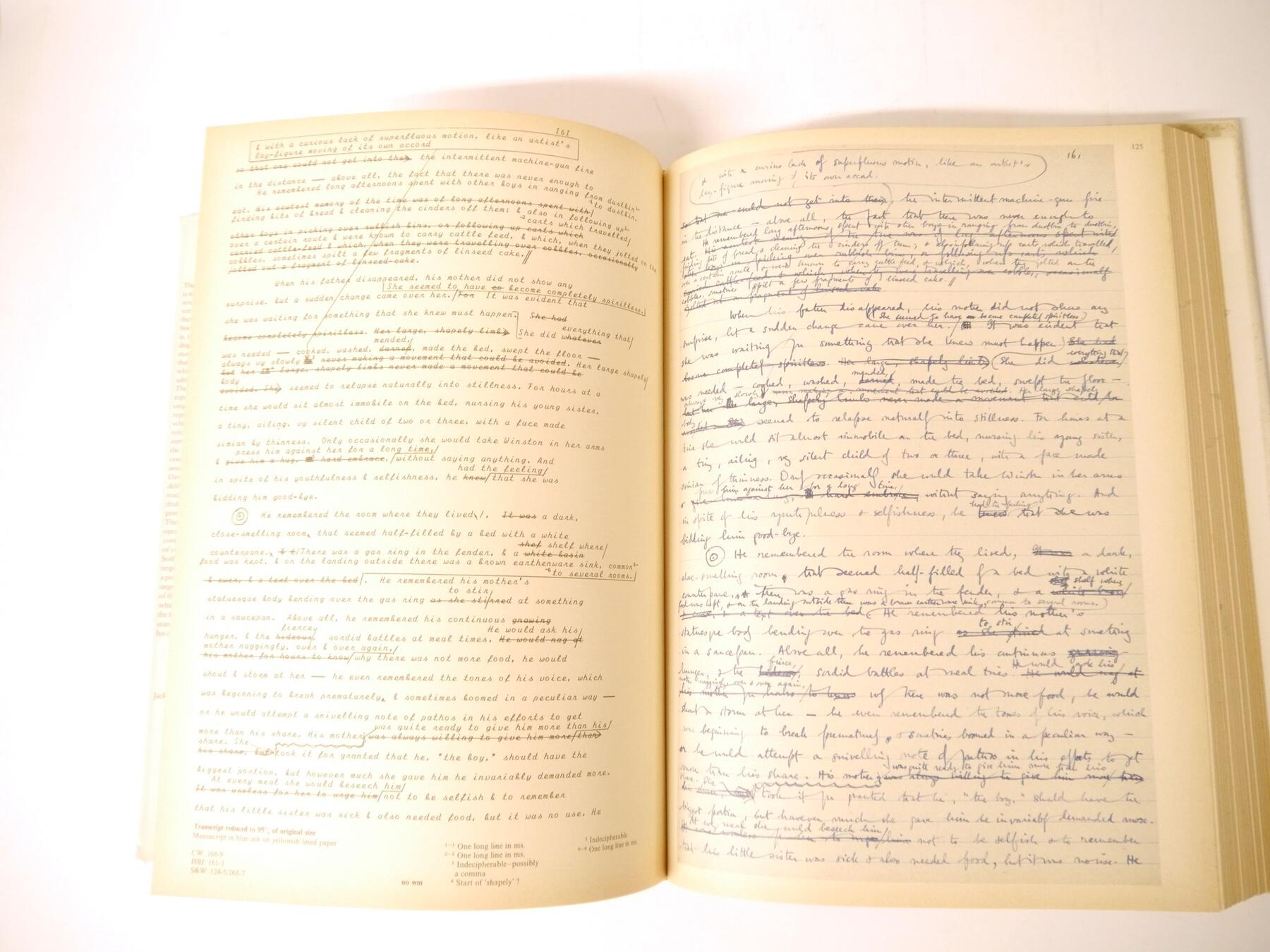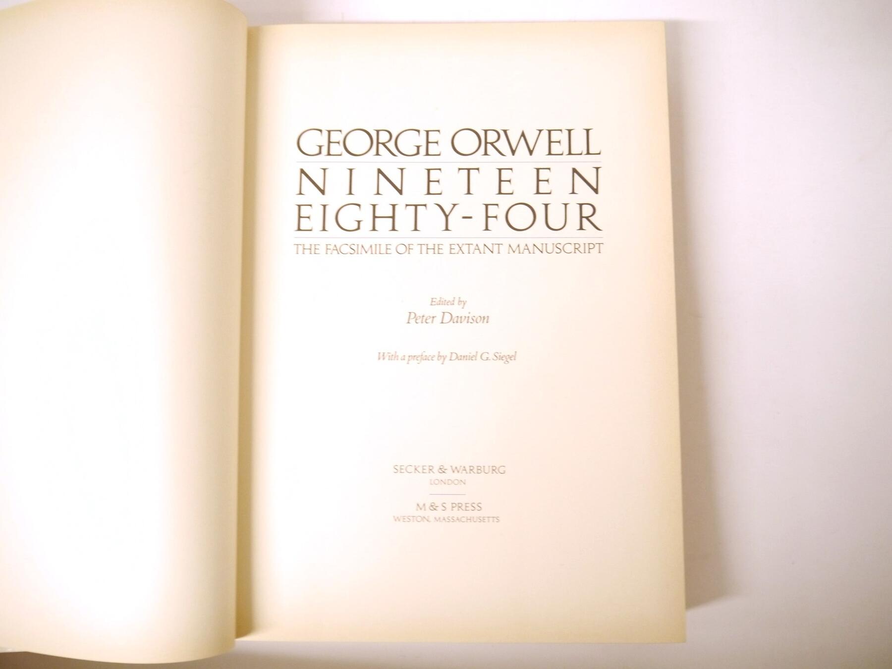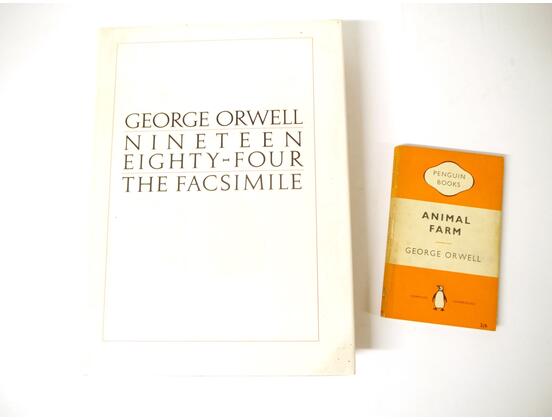 George Orwell: 'Nineteen Eighty-Four. The Facsimile of the Extant Manuscript', edited Peter Davison, London, Secker & Warburg, 1984, 1st edition, folio, original cloth gilt, dust wrapper; plus a penguin paperback reprint of 'Animal Farm', 1959, original wraps (2)