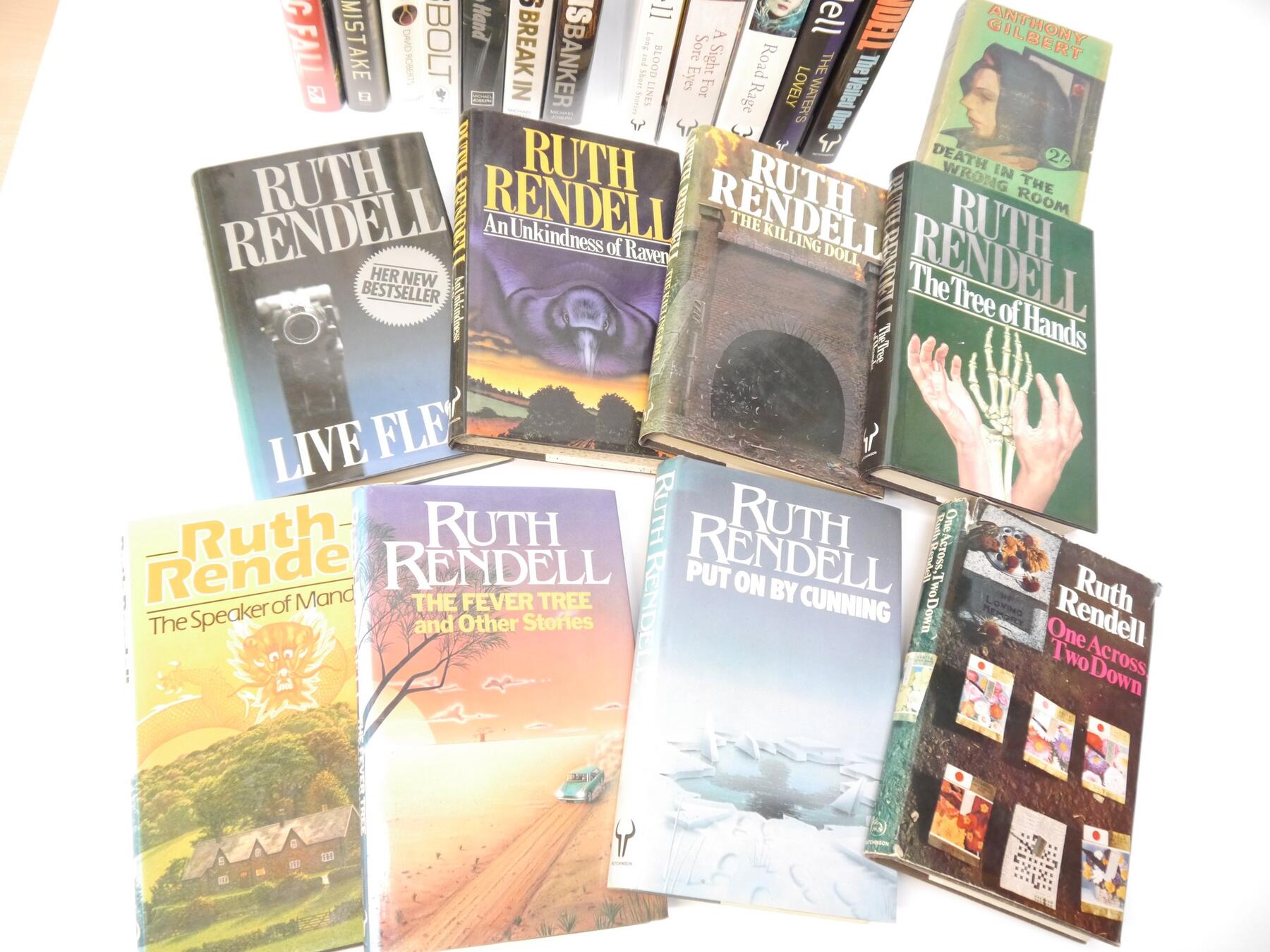 Ruth Rendell, collection of thirteen UK 1st editions, 2 signed, all published Hutchinson, including: 'One Across, Two Down', 1971; 'Put on By Cunning', 1981; 'The Fever Tree and Other Stories', 1982; 'Road Rage', 1997, signed; 'The Water's Lovely', 2006, signed; plus 8 others; plus 7 others similar (15)
