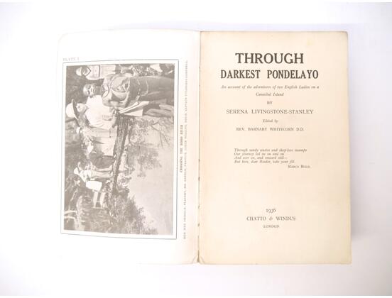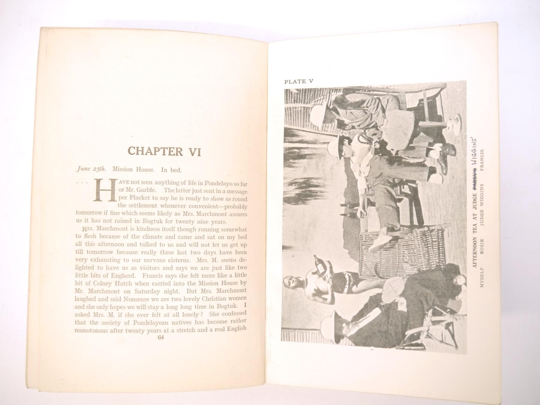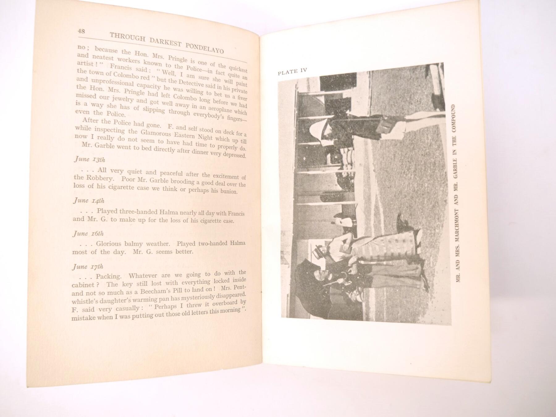 Serena Livingstone-Stanley [i.e. Joan Lindsay]: 'Through Darkest Pondelayo, an account of the adventures of two English Ladies on a Cannibal Island', Chatto & Windus, 1936, advance proof copy, 13 plates as called for, Australian satirical novel, a parody of English tourists abroad in travel book format, original plain paper wraps
