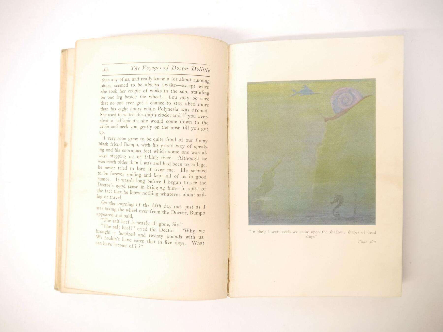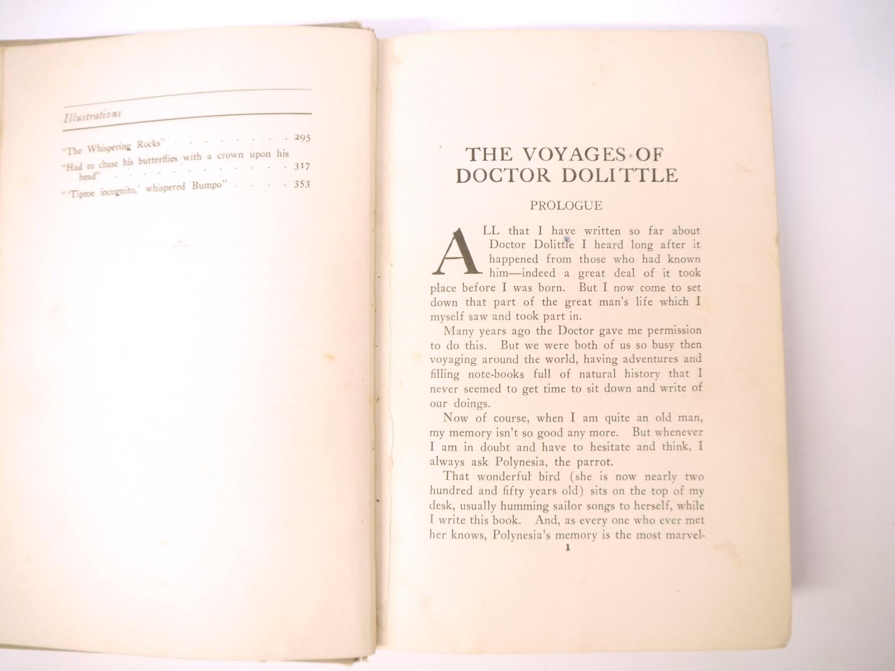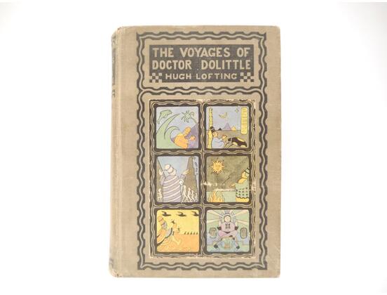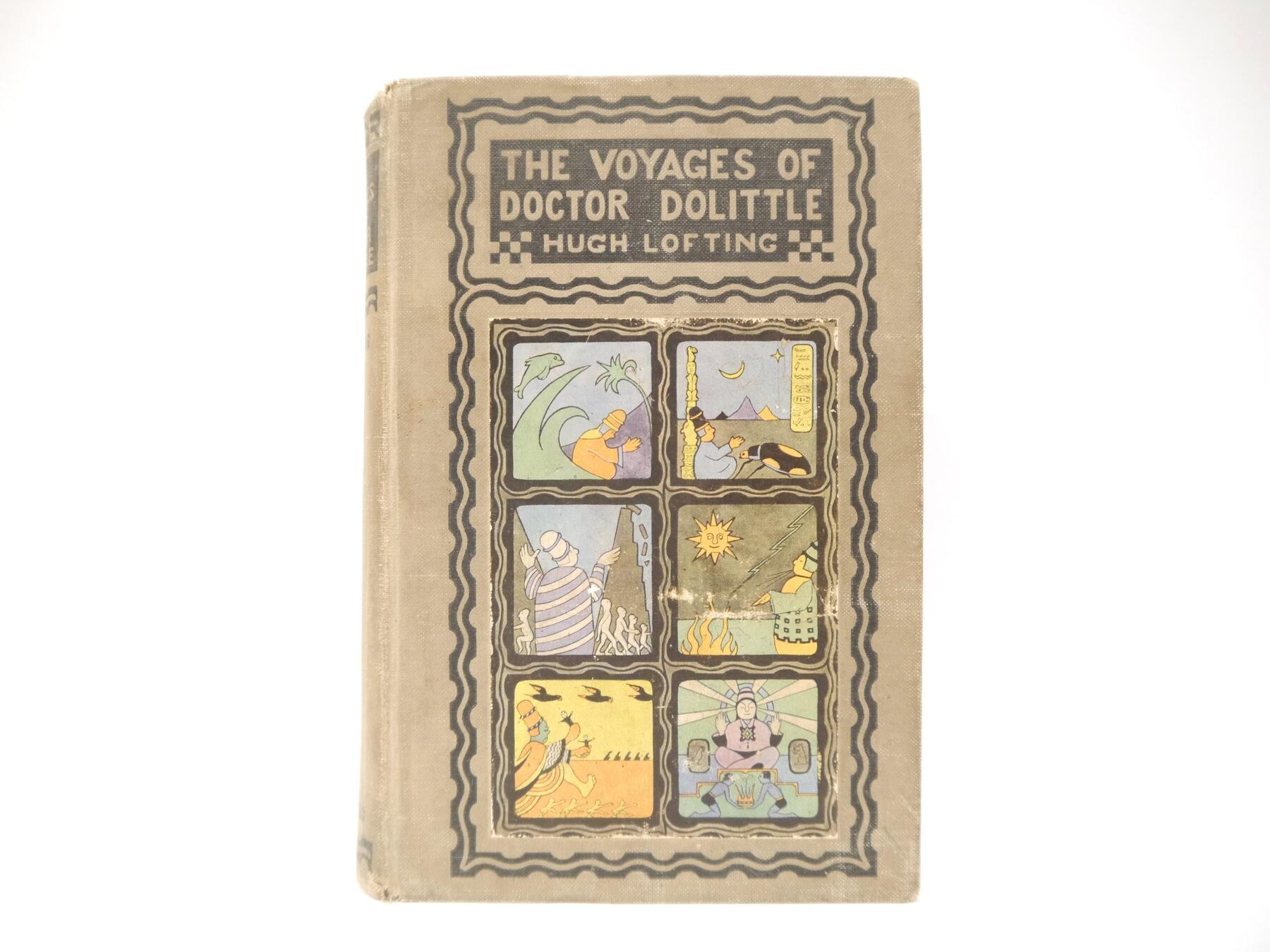 Hugh Lofting: 'The Voyages of Doctor Dolittle' New York, Frederick A. Stokes, 1922, 1st edition, 1st printing, second book in the Doctor Dolittle series of 14, 2 coloured plates and 18 full page black and white ills as called for, original decorative cloth, inset mounted pictorial panel
