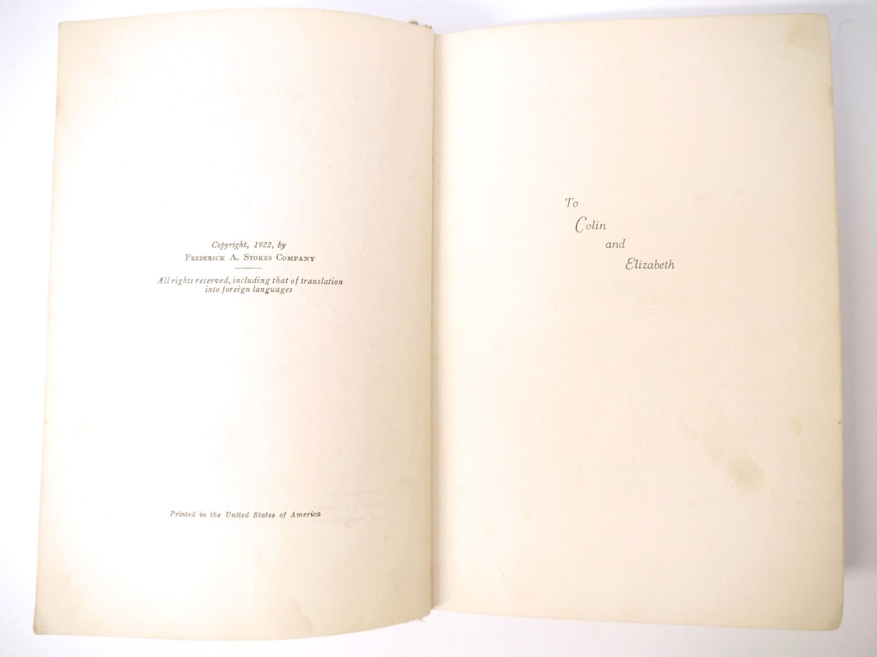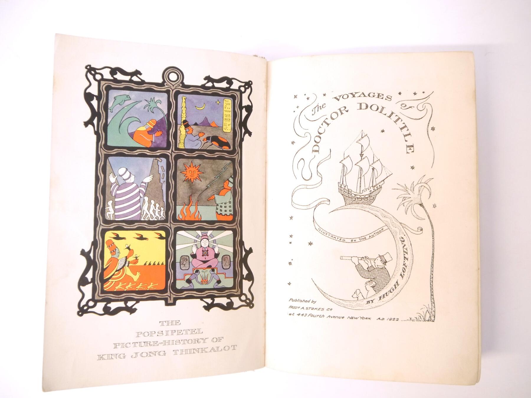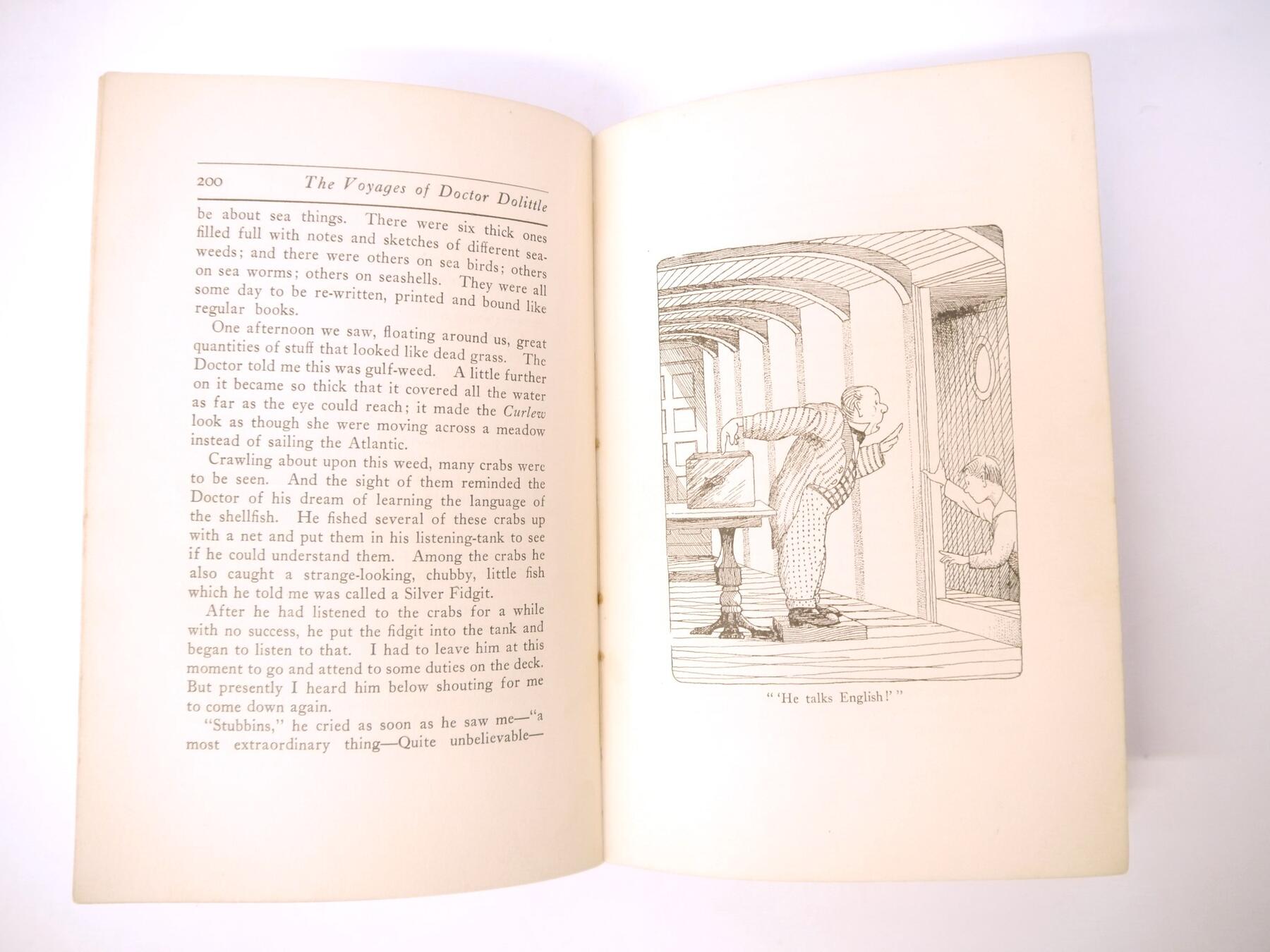 Hugh Lofting: 'The Voyages of Doctor Dolittle' New York, Frederick A. Stokes, 1922, 1st edition, 1st printing, second book in the Doctor Dolittle series of 14, 2 coloured plates and 18 full page black and white ills as called for, original decorative cloth, inset mounted pictorial panel