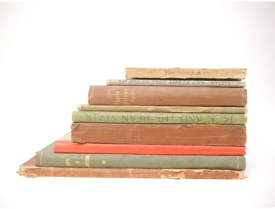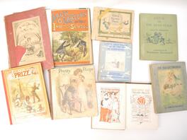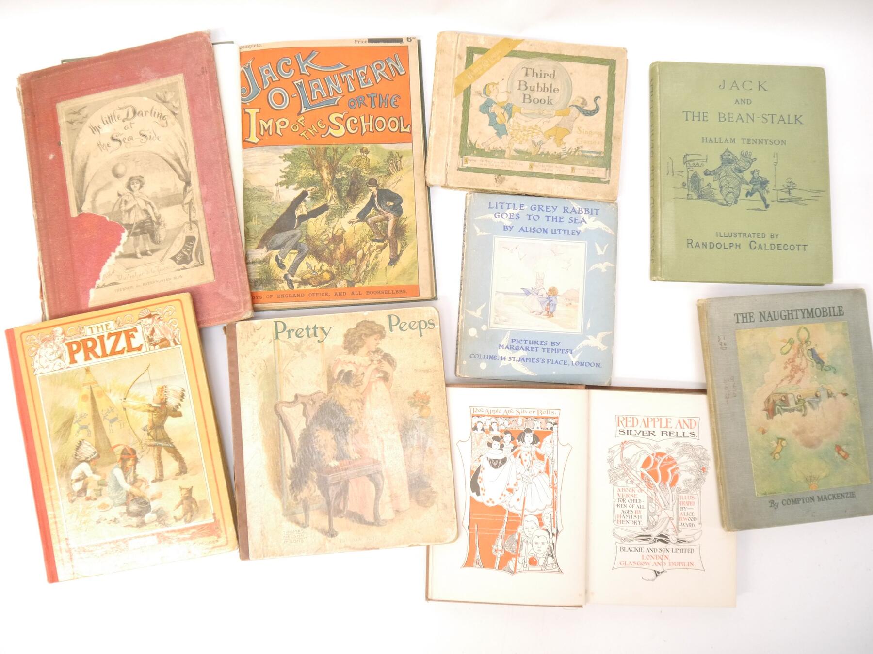A collection of children's books including Compton Mackenzie : 'The Naughtymobile', Oxford, Basil Blackwell, [nd], circa 1932, original cloth, mounted coloured illustrations. H.Tennyson : 'Jack & The Bean Stalk'. English Hexameters', ill. Randolph Caldecott, 1886, 1st edition, original pictorial cloth; Alison Uttley : 'Little Grey Rabbit Goes to Sea', 1954, coloured ills by McTempest as called for, original pictorial boards; Lorenz Frolich (illustrated) : 'The Little Darling at the Sea-side', London, Trubner, [1863], 1st edition, ills throughout, 4to, original cloth worn & soiled, printed illustration to top board with part loss; plus five others (9)