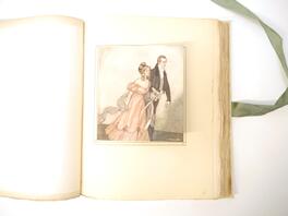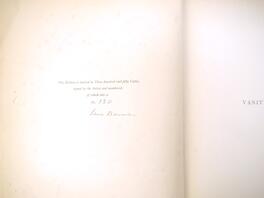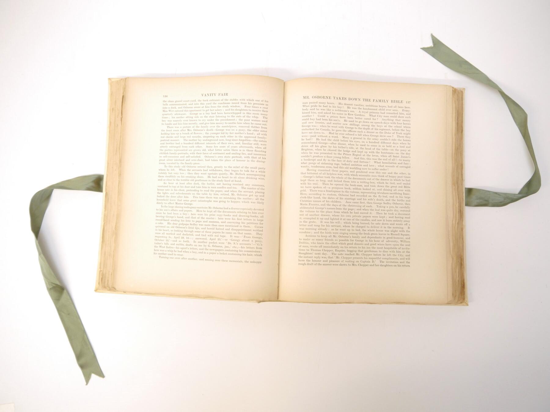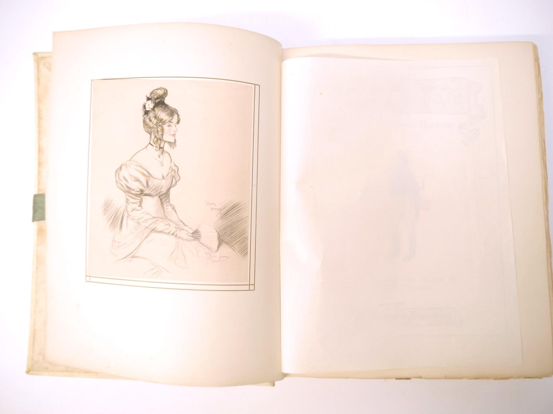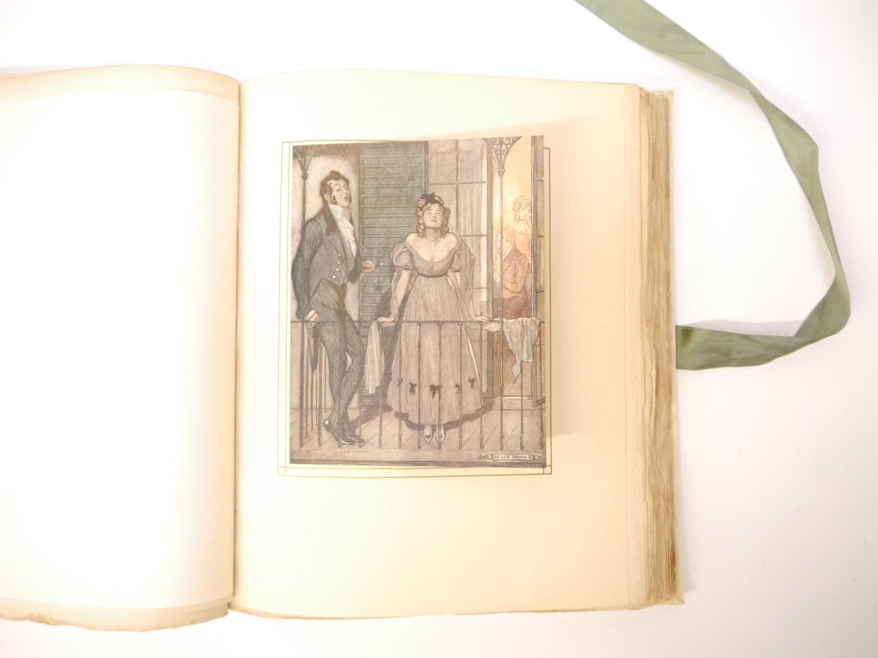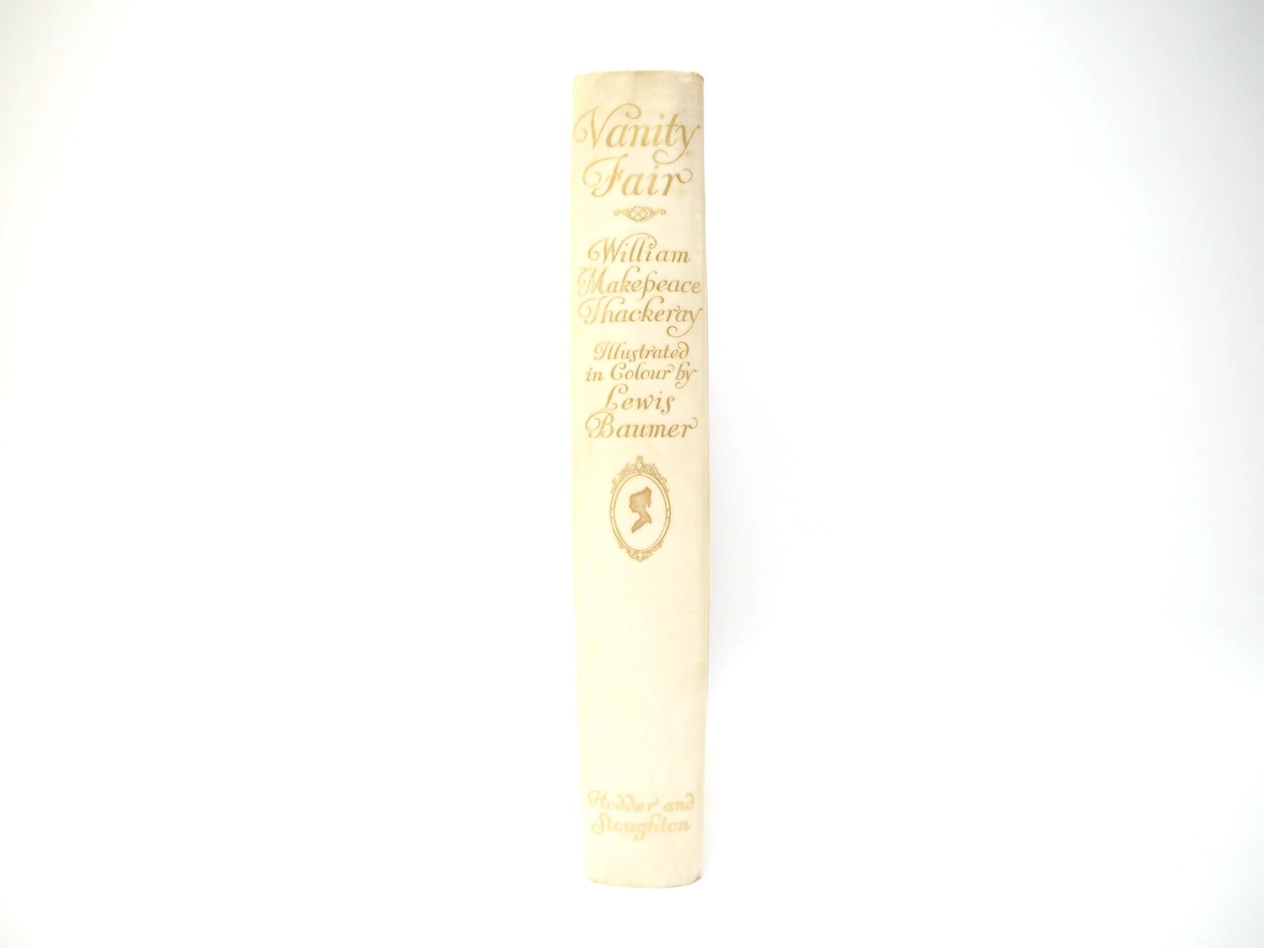 W.M. Thackeray: 'Vanity Fair', illustrated Lewis Baumer, London, Hodder & Stoughton, [1913], deluxe edition, signed by Baumer and numbered (120/350), 20 tipped in coloured plates as called for, 4to, original full decorative vellum gilt, mounted colour illustration to top board, silk ribbon ties, top edge gilt