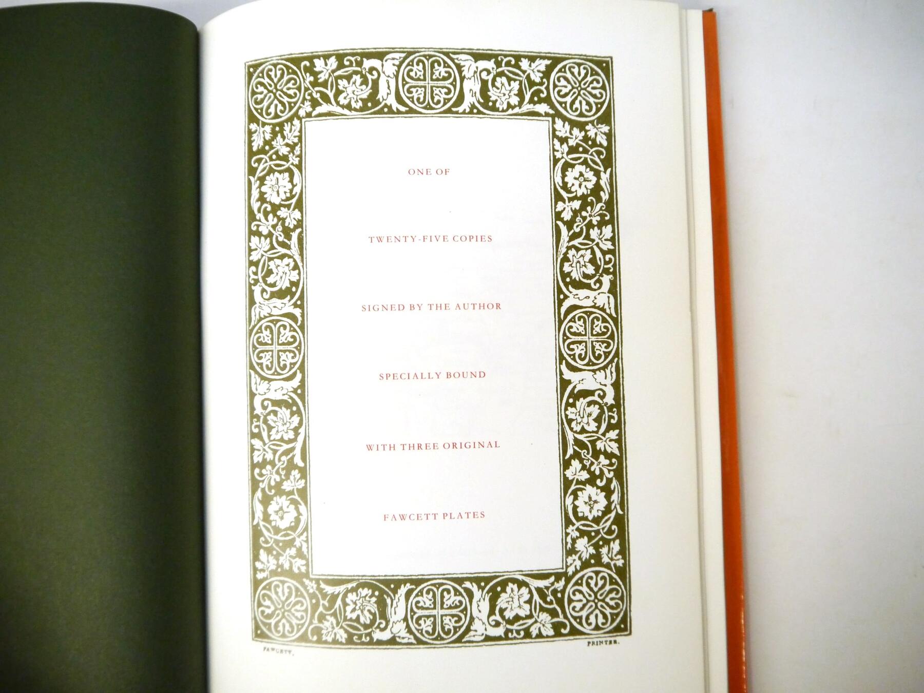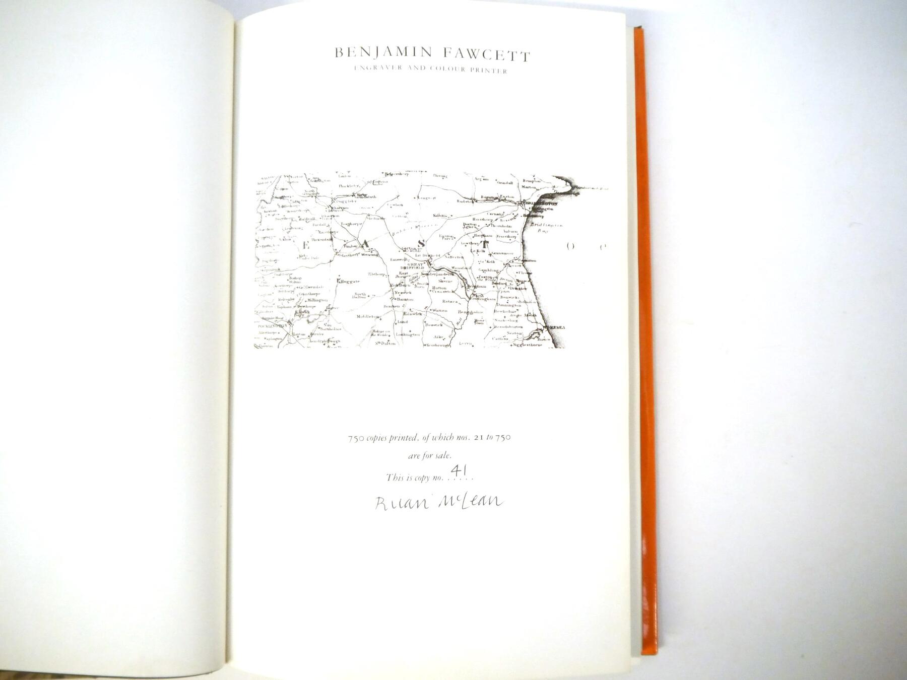 Ruari & Antonia McLean: 'Benjamin Fawcett Engraver and Colour Printer', Scolar Press, 1988, limited edition, (41/750), but one of only 25 copies signed by the author and specially bound with 3 original Fawcett plates in rear pocket, half crushed green morocco gilt over marbled paper covered boards, dust wrapper (spine faded)