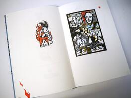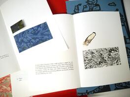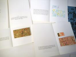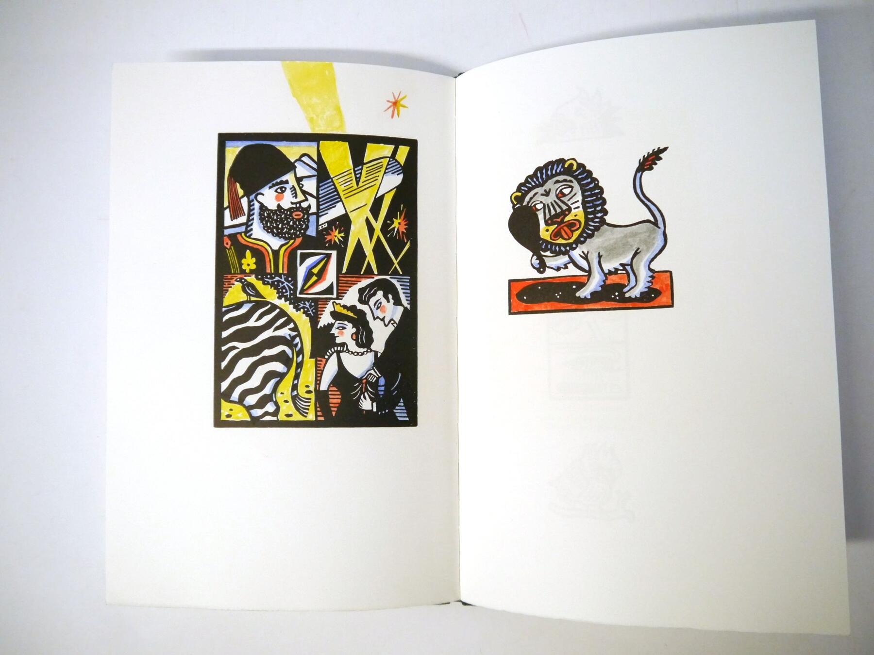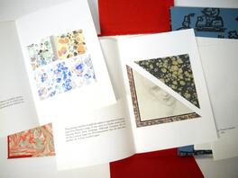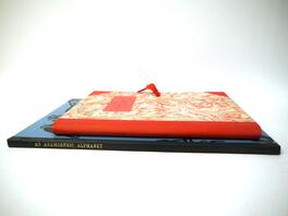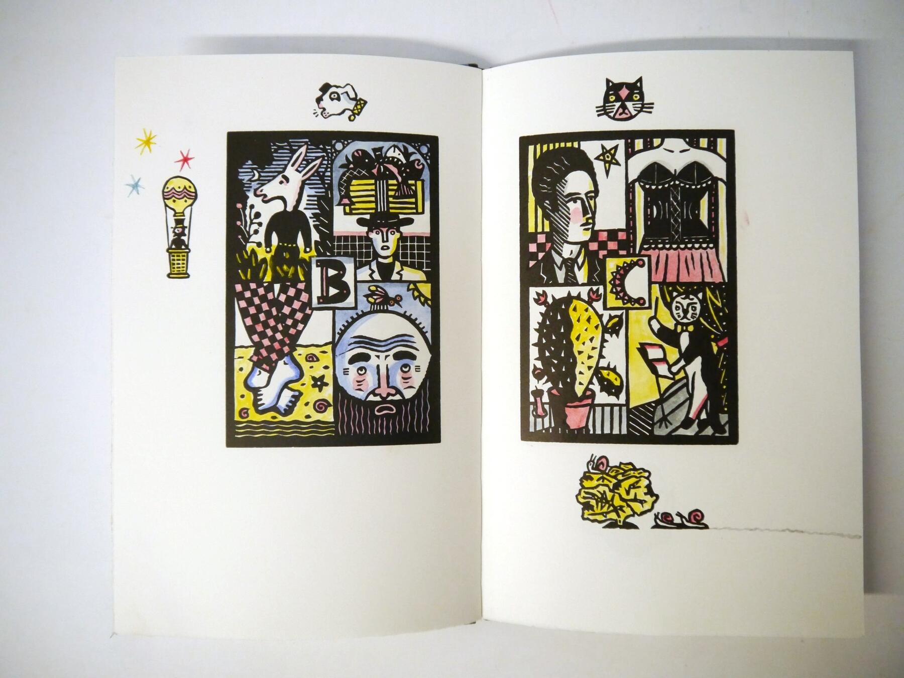 Christopher Brown: 'An Anamorphic Alphabet' The Previous Parrot Press, 1999, limited edition, 136 copies in total, this one of 36 copies (numbered XXXI/XXXVI) with the linocut illustrations hand coloured, original quarter navy morocco gilt, linocut design pictorial paper covered boards, slip case; plus 'The Compton Marbling Portfolio of Patterns', Oxford, The Alembic Press, 1992, limited edition of text and 17 with tipped in samples as called for, all housed loose as issued in original half cloth over marbled paper covered boards portfolio, printed paper label, silk ribbon ties (2)