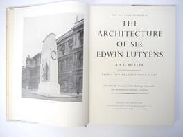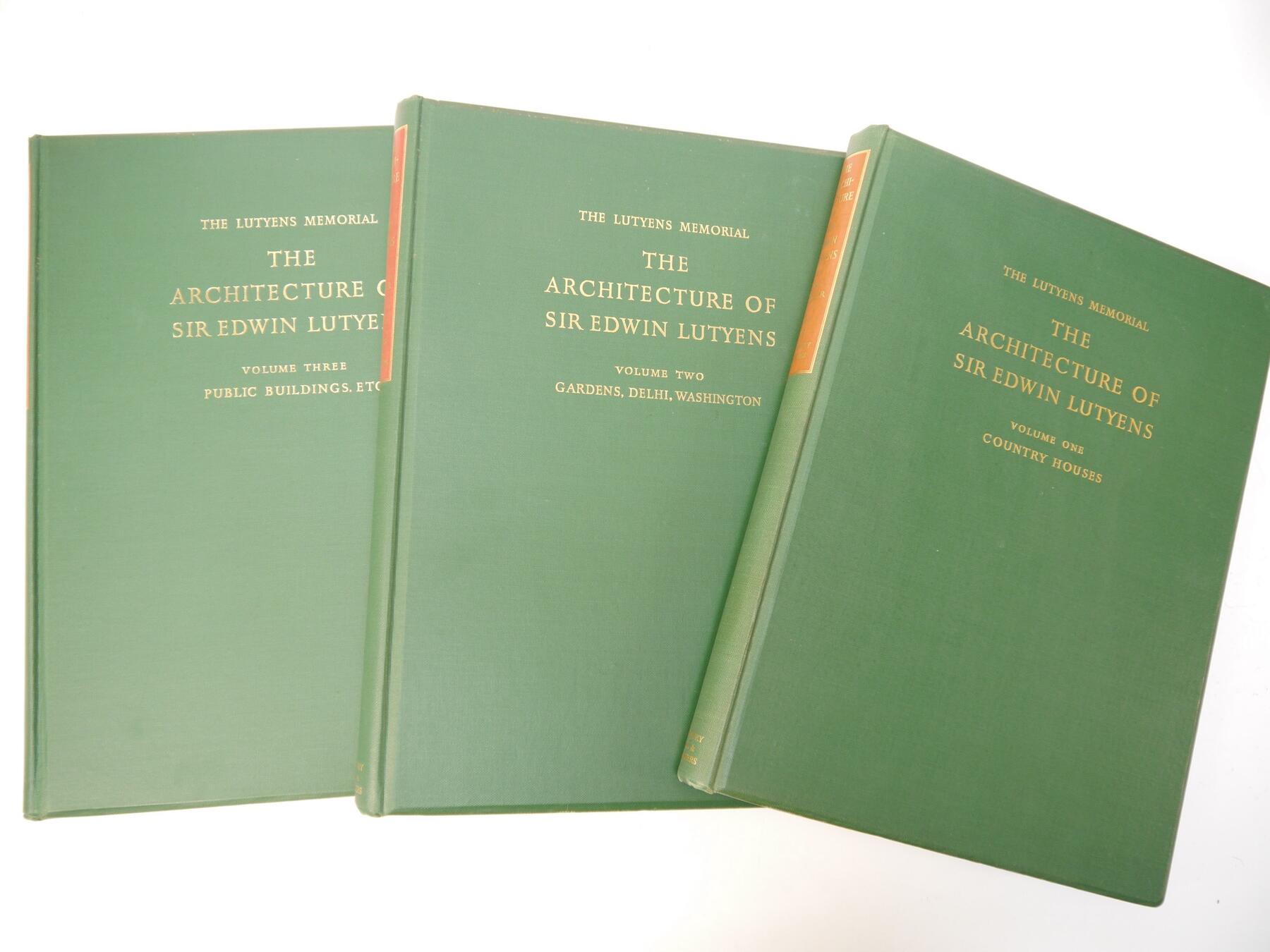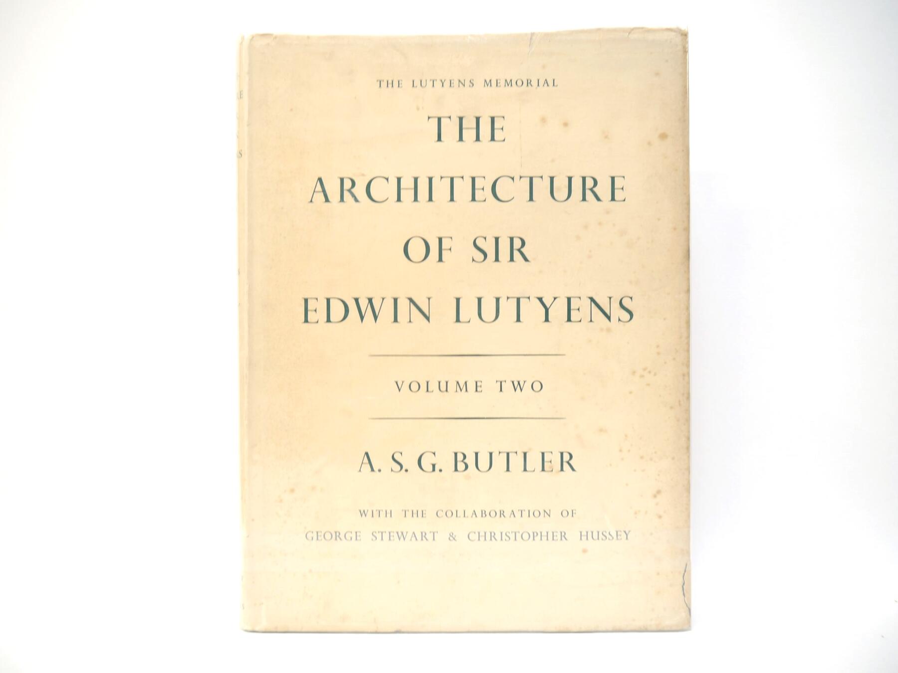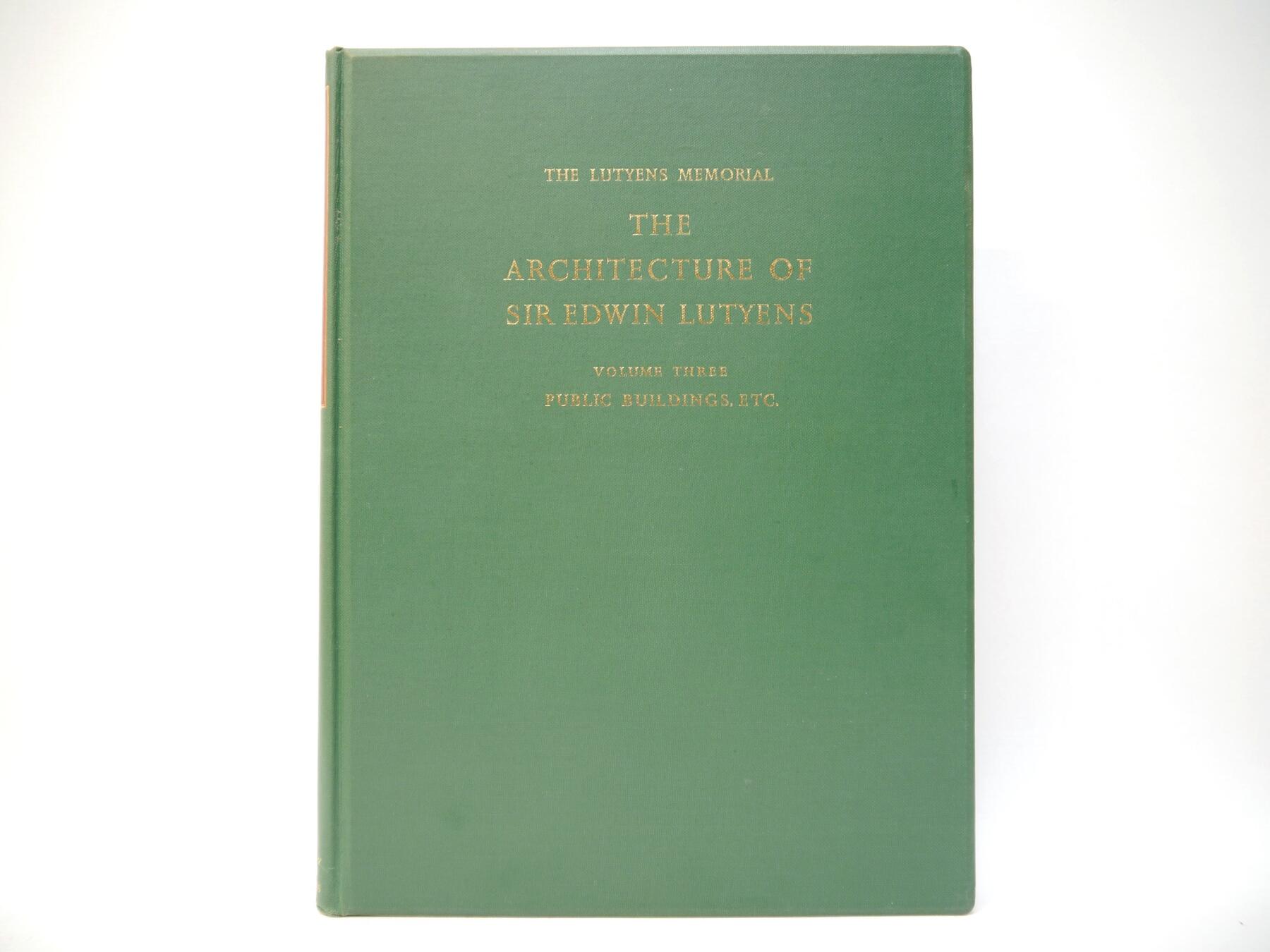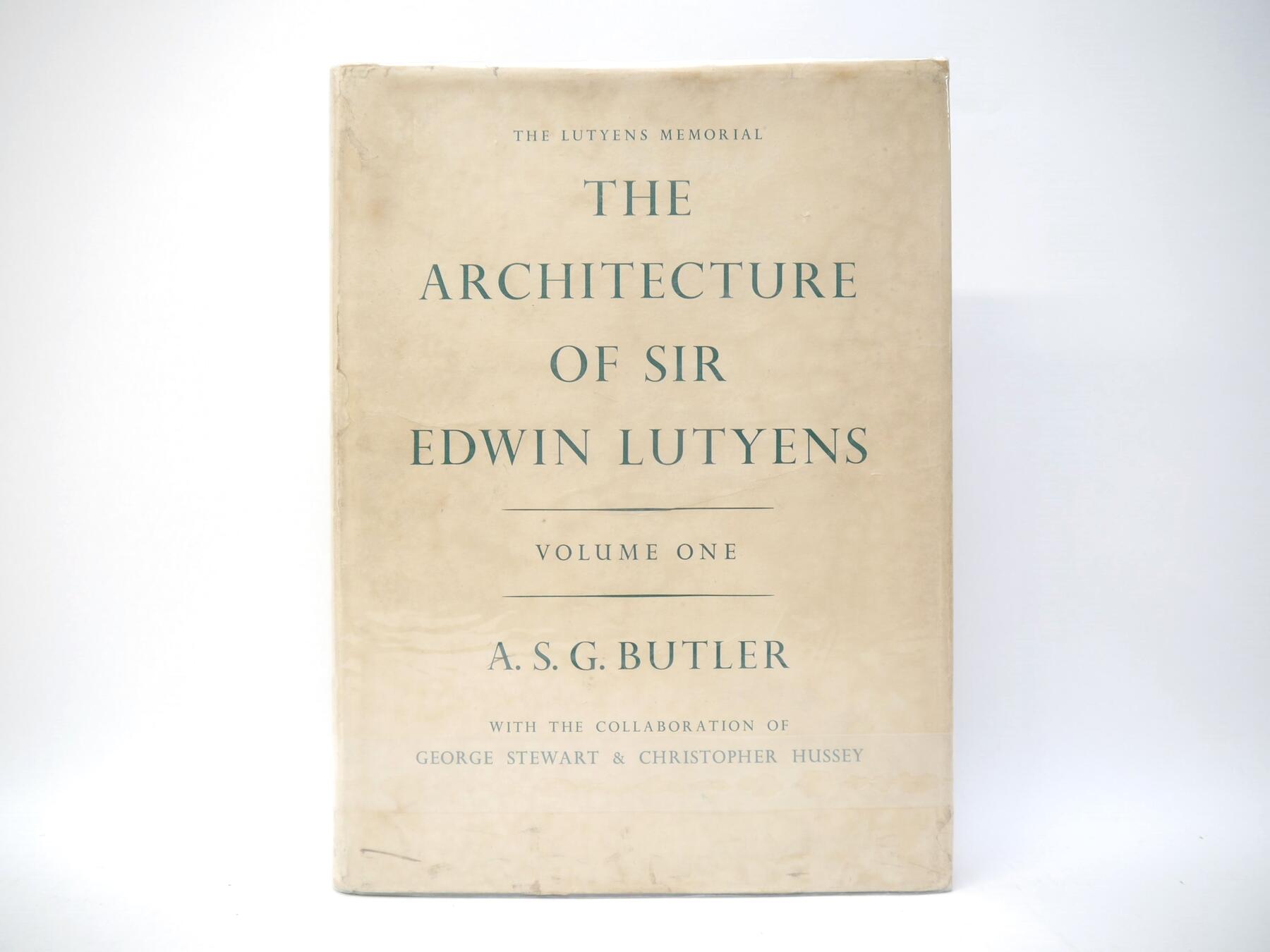A.S.G. Butler: 'The Lutyens Memorial, The Architecture of Sir Edwin Lutyens', London, Country Life, 1950, 1st edition, 3 volumes, numerous monochrome plates and illustrations, many folding, folio, original green cloth gilt, dust wrappers (worn and with some part losses and repairs/restoration), armorial bookplates of William Iveson Croome, large folding facsimile copy of an original Lutyens architectural plan for Castle Drogo, near Drewsteignton, Devon, and 2010 invoice for books loosely inserted, provenance Ian Latter (3)
