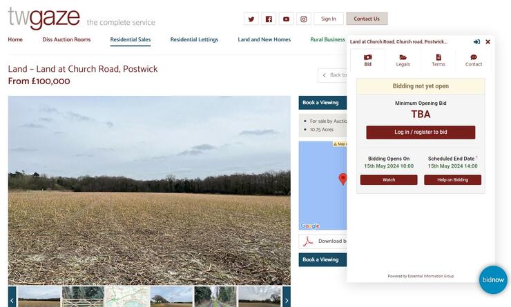 For blocks of land, viewing is during daylight hours with details in hand unless stated otherwise under the lot. For all other property, viewing is strictly by appointment with TW Gaze - telephone Diss 01379 641 341 or Wymondham 01953 423 188. All viewings are undertaken at the viewer’s own risk. Special care should be taken when viewing properties such as barns for conversion and those in need of renovation.